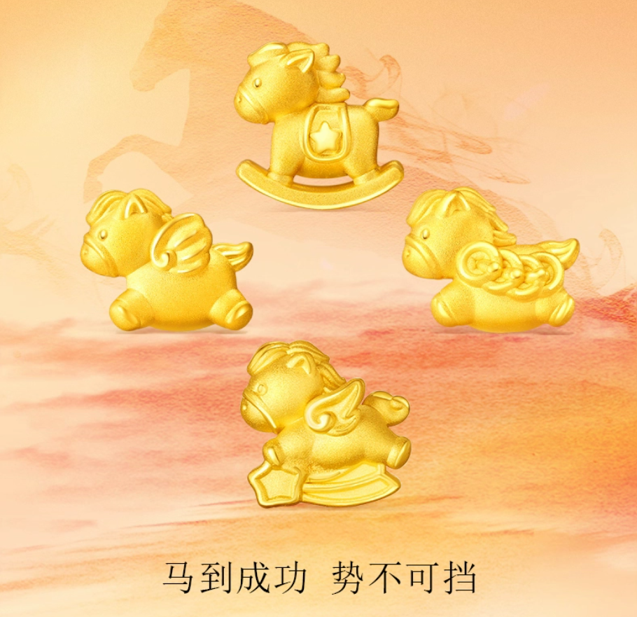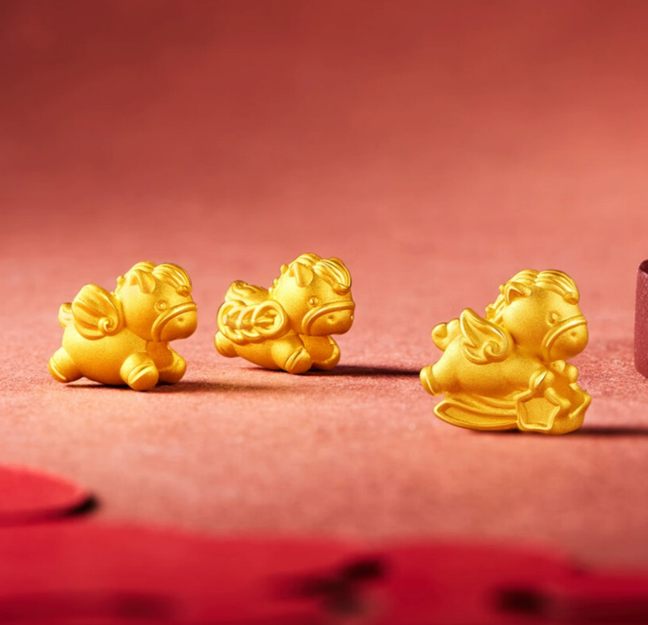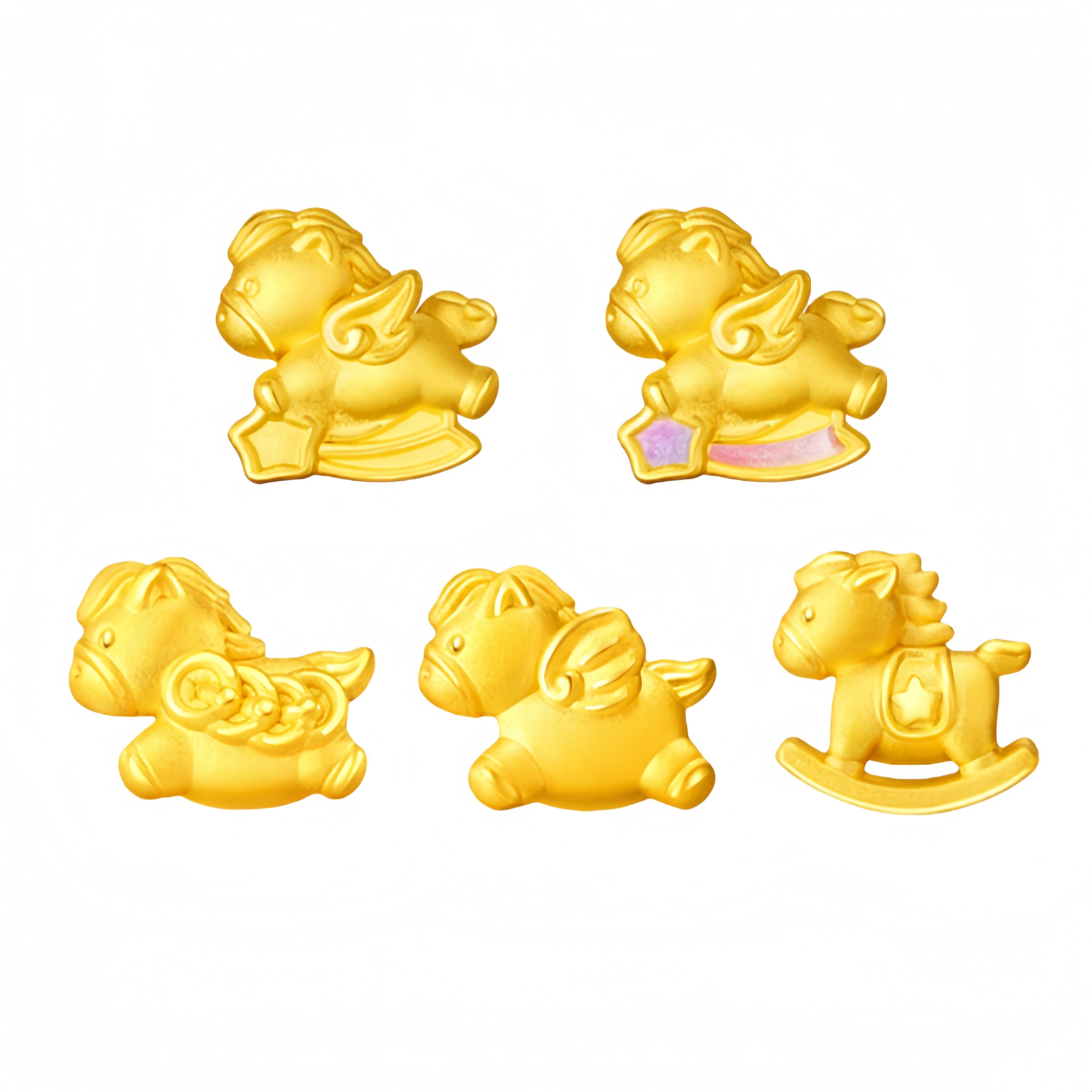 999 Pure Gold Zodiac Horse Fortune Bead Cute Little Horse Bracelet for the Year of the Horse Flying Horse Baby Gift