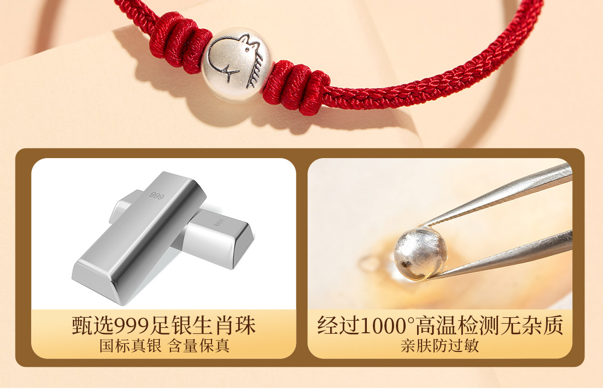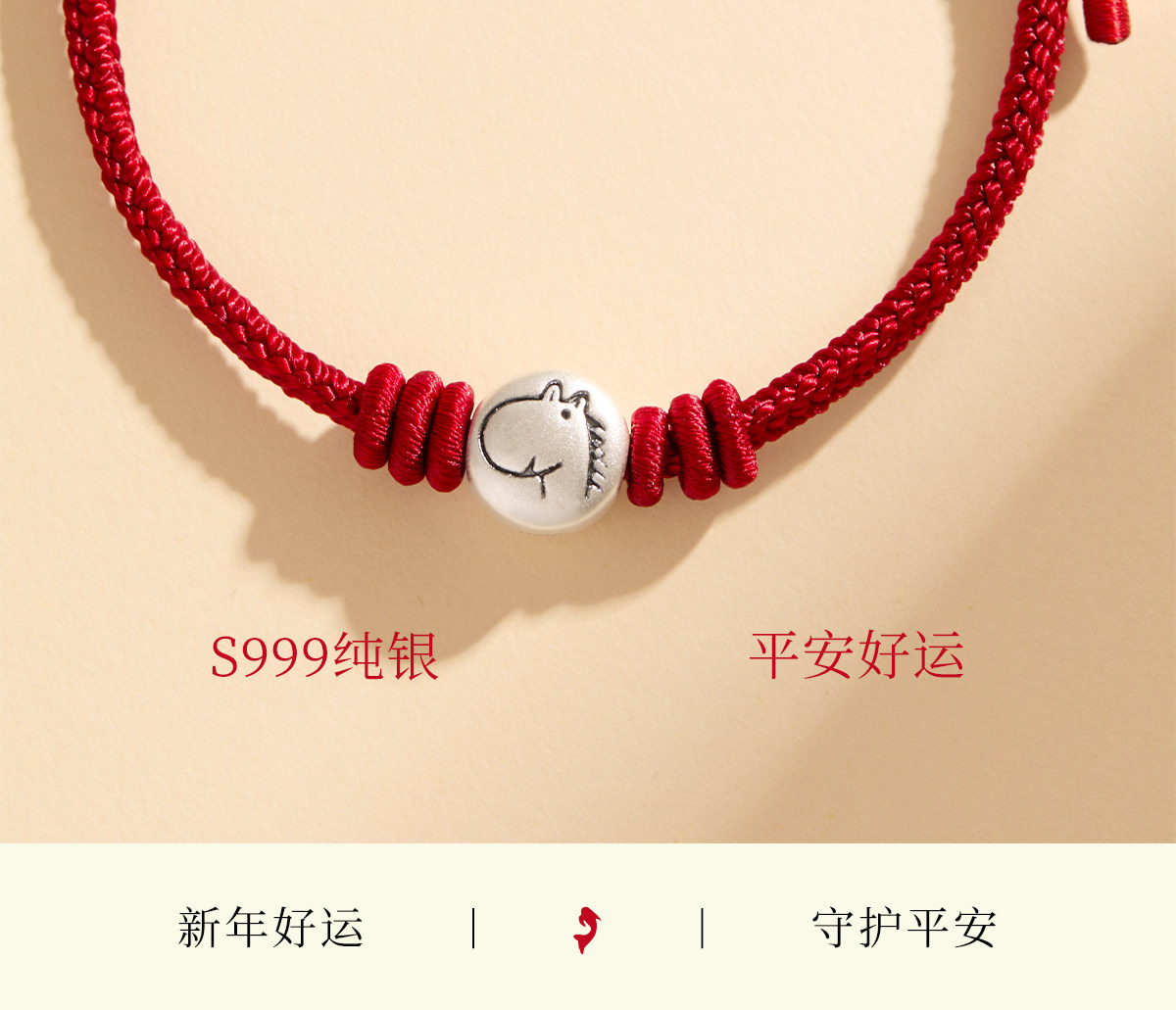 999 Pure Silver Zodiac Fortune Beads Red String Bracelet for Women and Men Born in the Year of the Horse, Amulet Woven Red Bracelet for Children