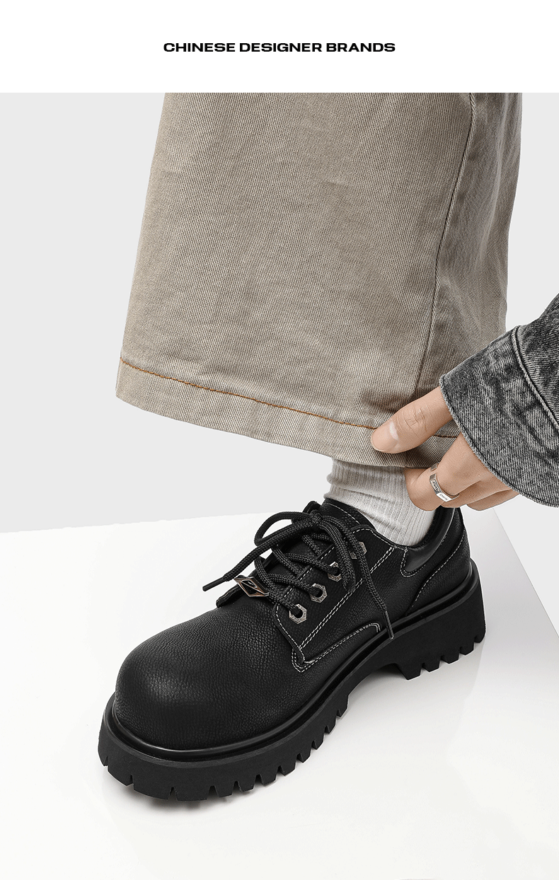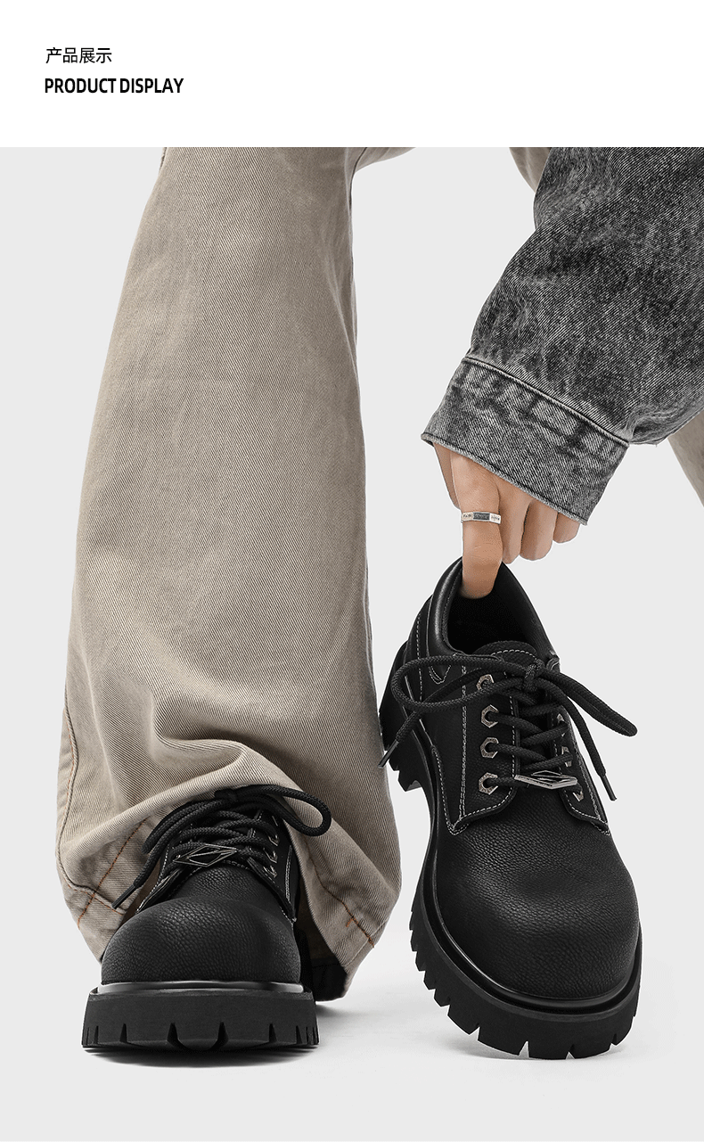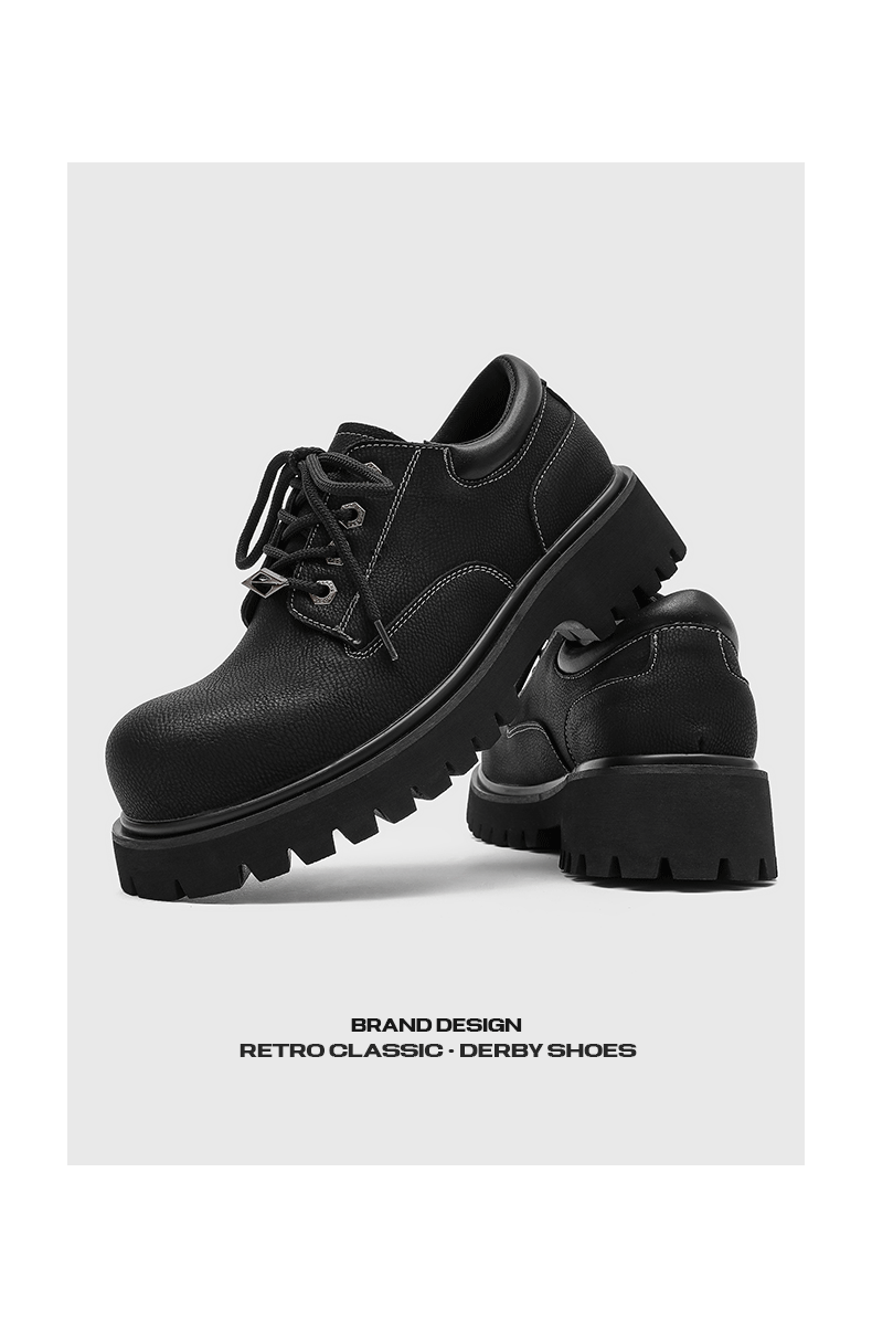 Autumn and Winter Thick-Soled Height-Increasing Derby Shoes for Men, 2025 New British Retro Large-Toe Low-Top Workwear Style Casual Leather Shoes