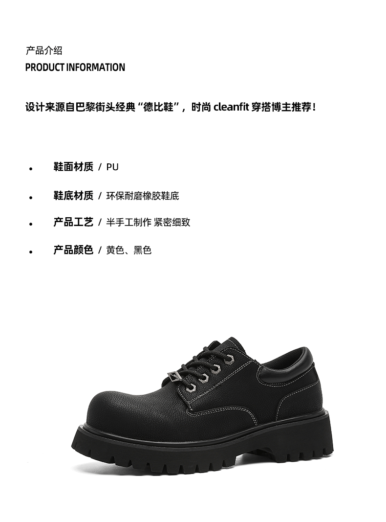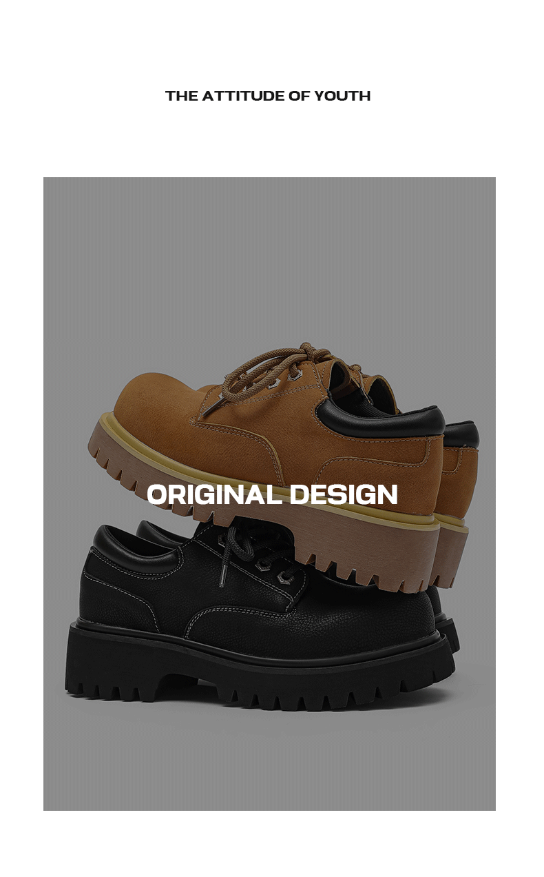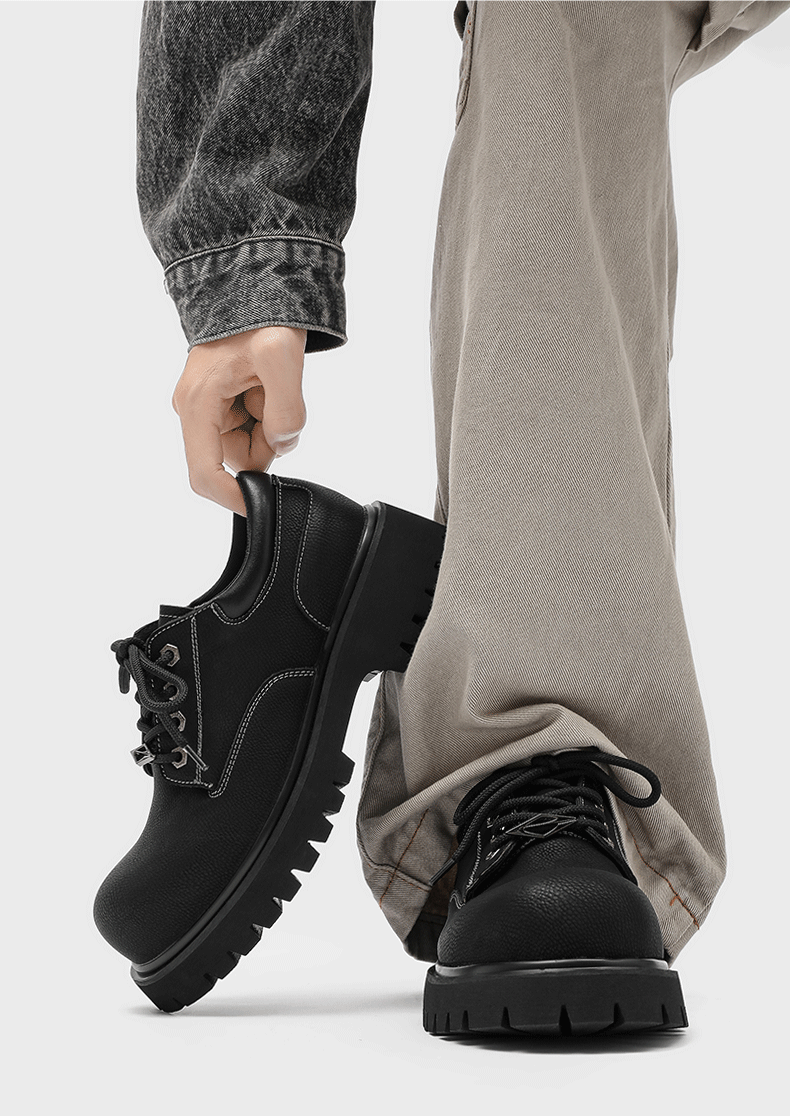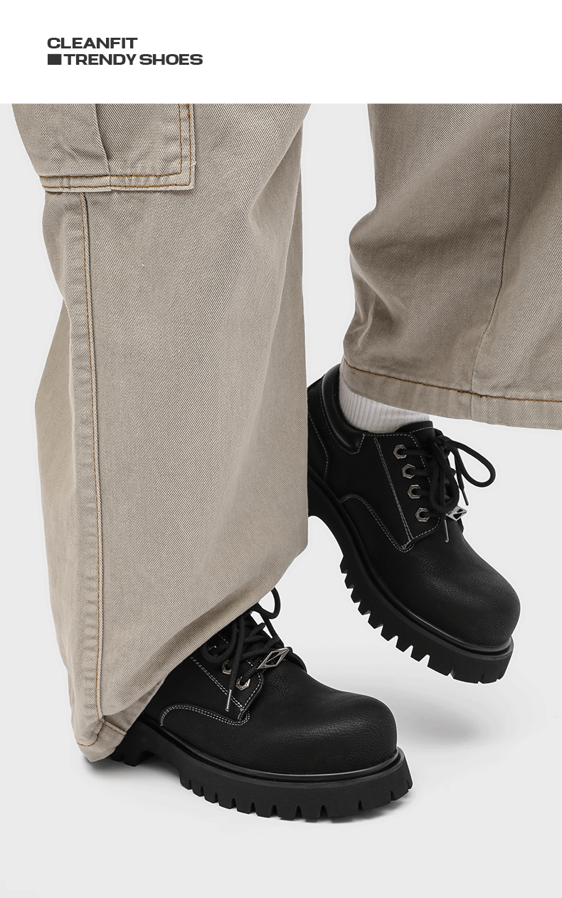 Autumn and Winter Thick-Soled Height-Increasing Derby Shoes for Men, 2025 New British Retro Large-Toe Low-Top Workwear Style Casual Leather Shoes