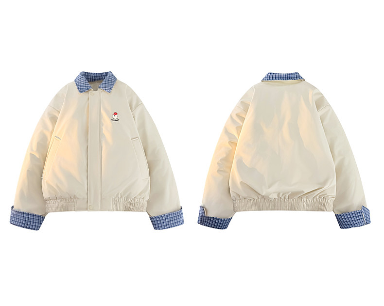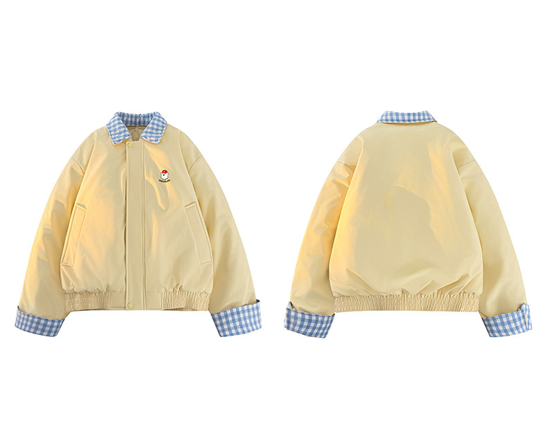 It:Chocoolate Fake Two-Piece Cotton Jacket for Women, Winter Plaid Patchwork Short Cotton Coat, Thickened Warm Outerwear