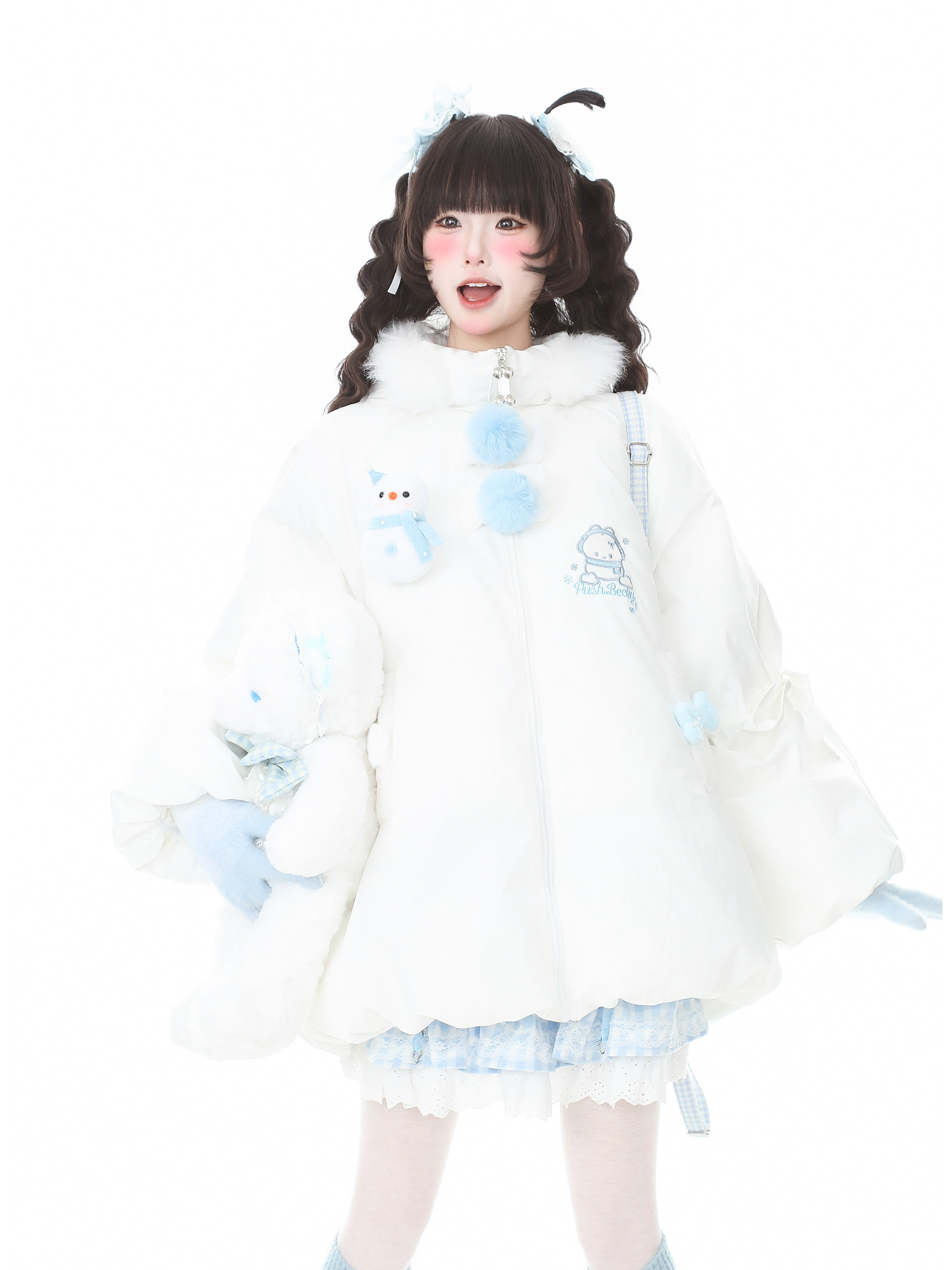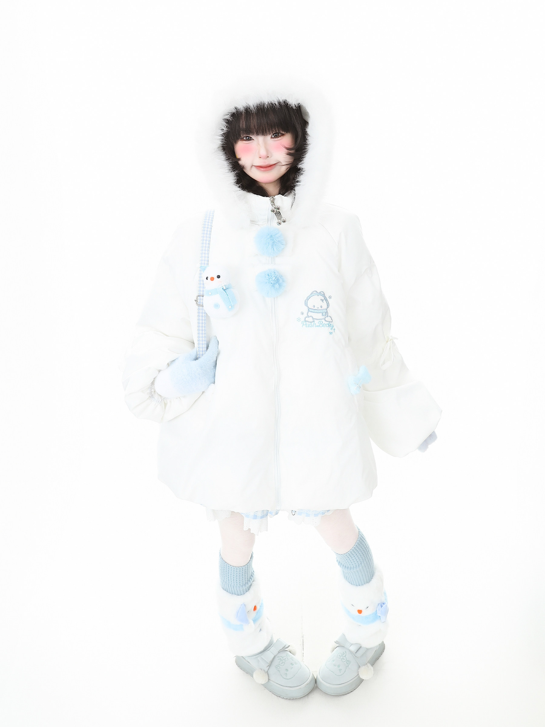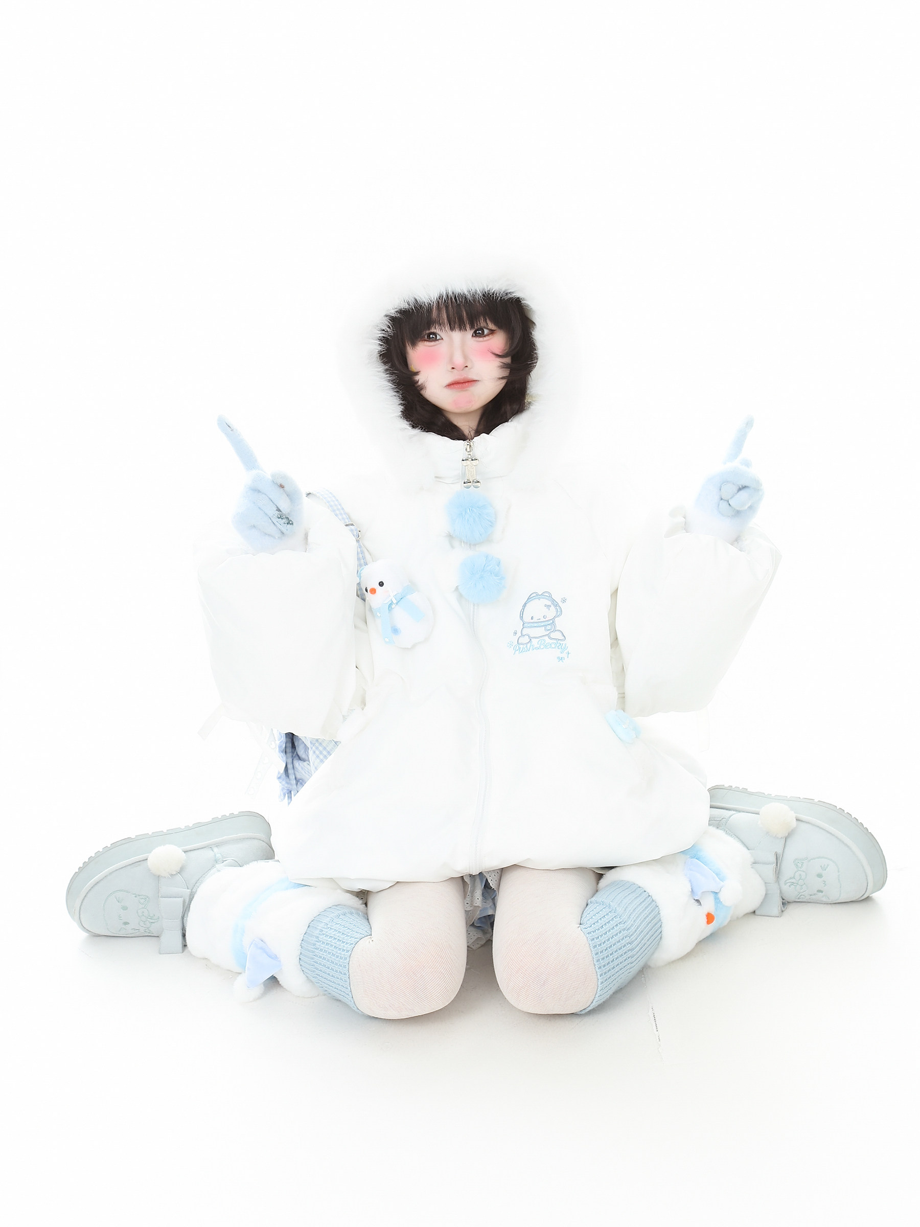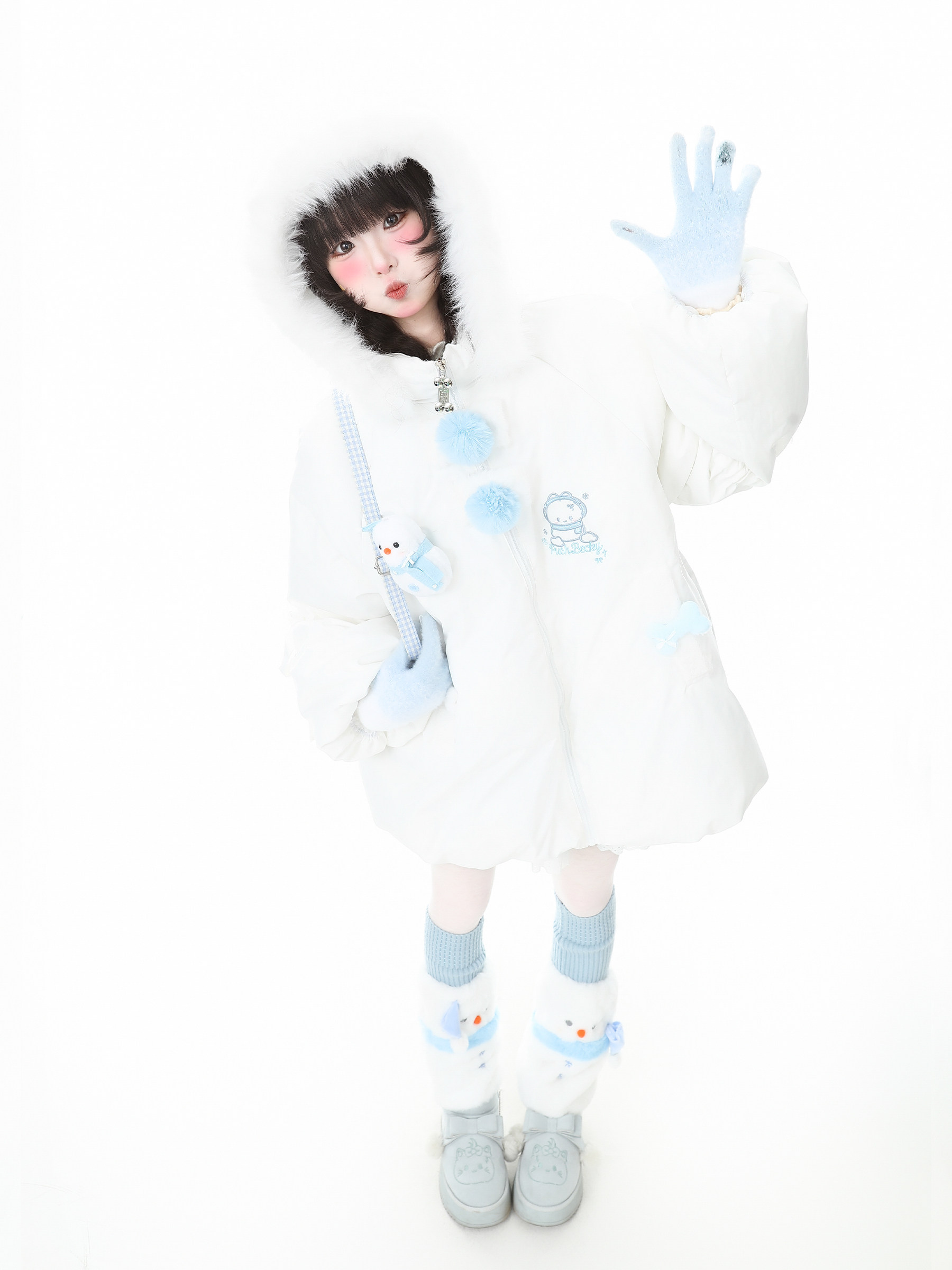 Languid Park Fur Collar Snowman down Cotton Jacket Women's Winter Thickened Warm Cotton Coat