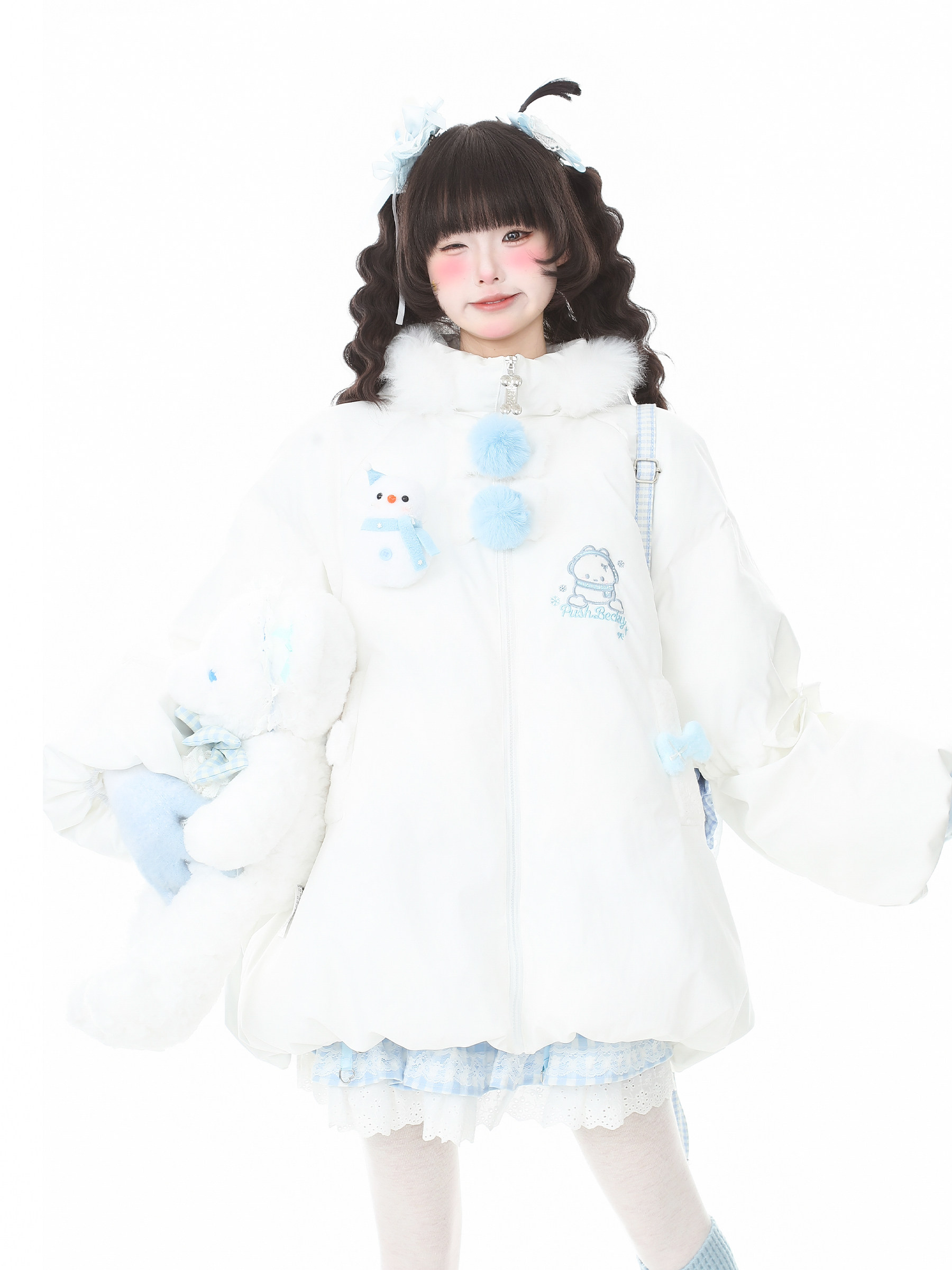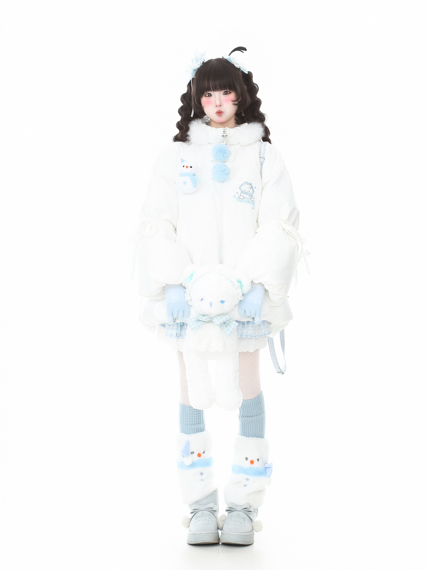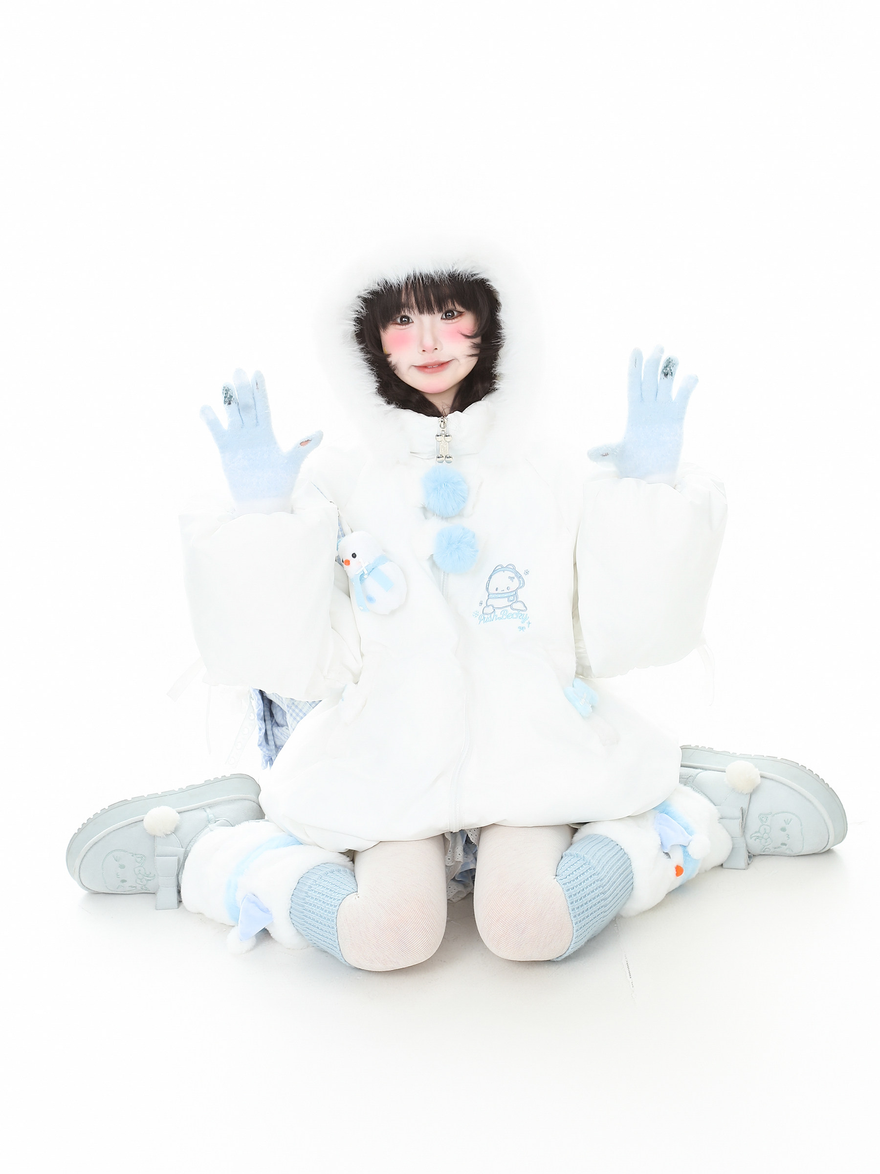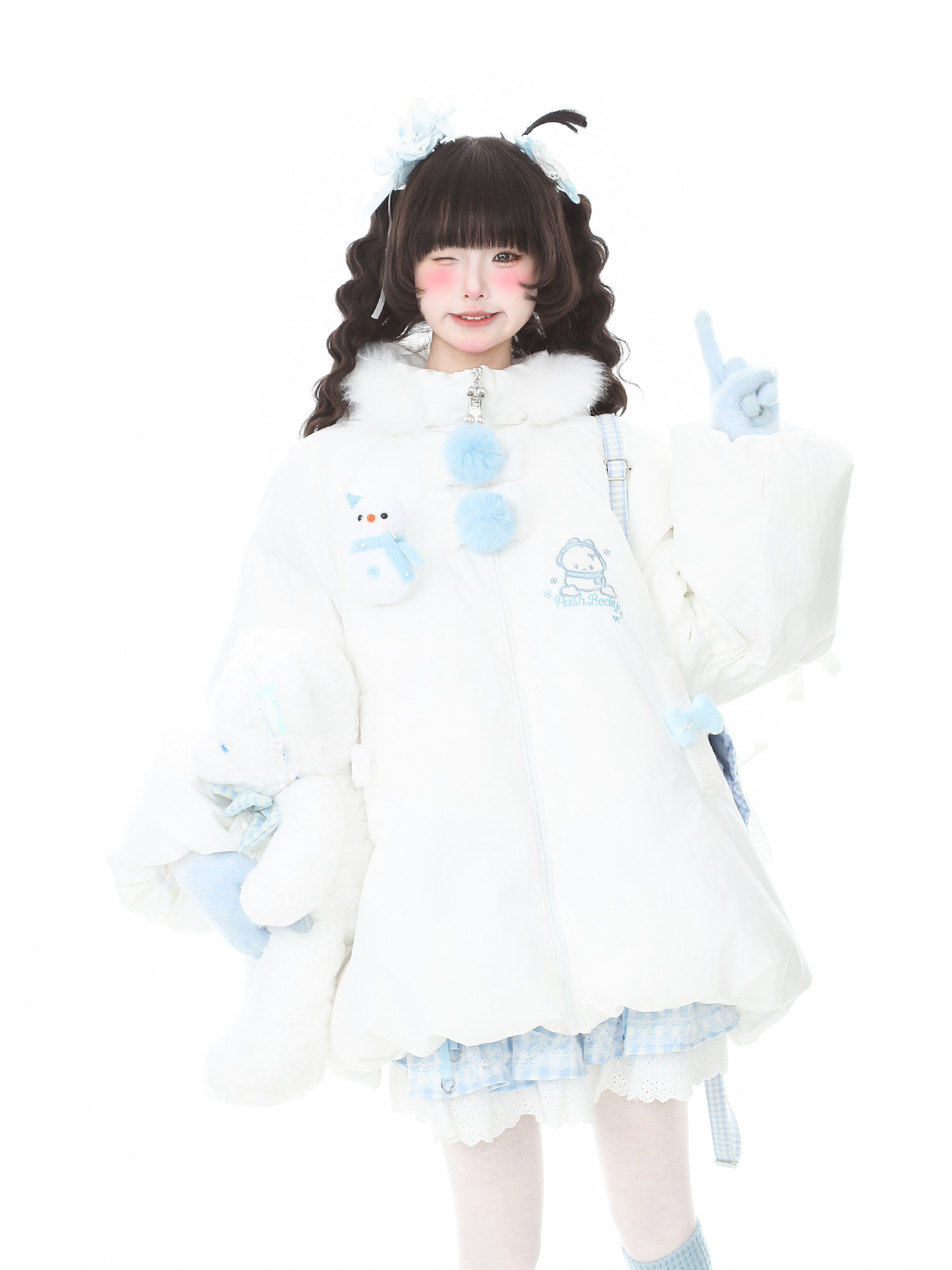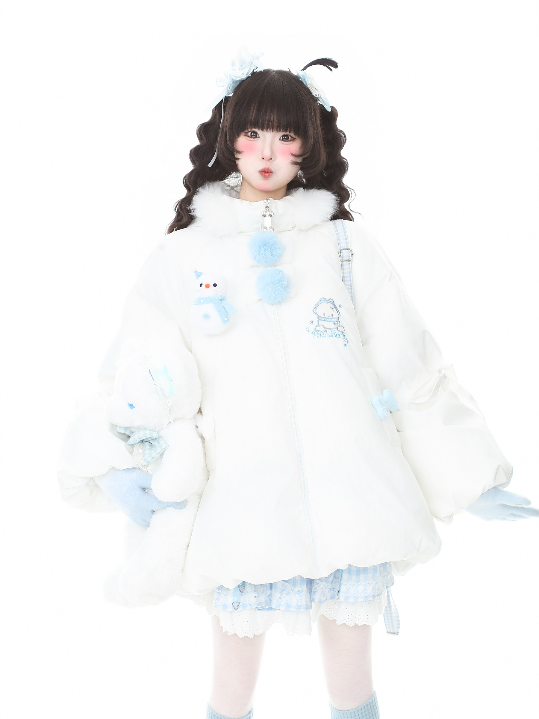 Languid Park Fur Collar Snowman down Cotton Jacket Women's Winter Thickened Warm Cotton Coat