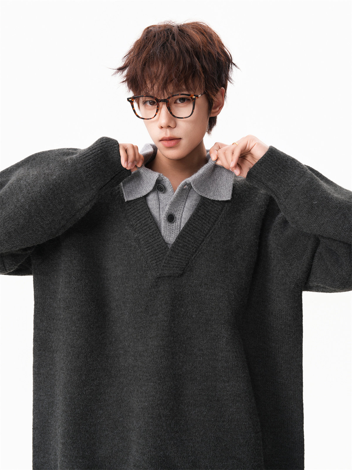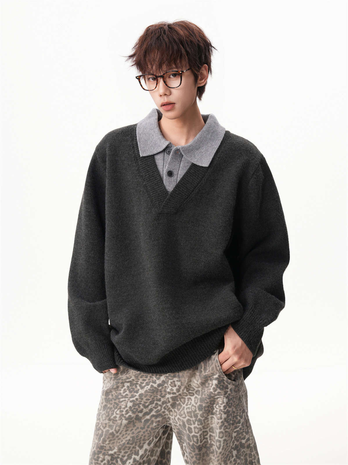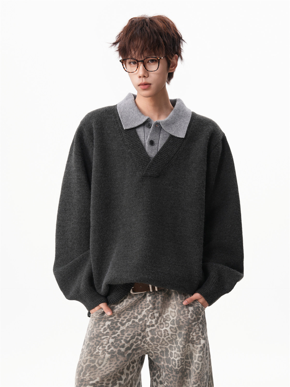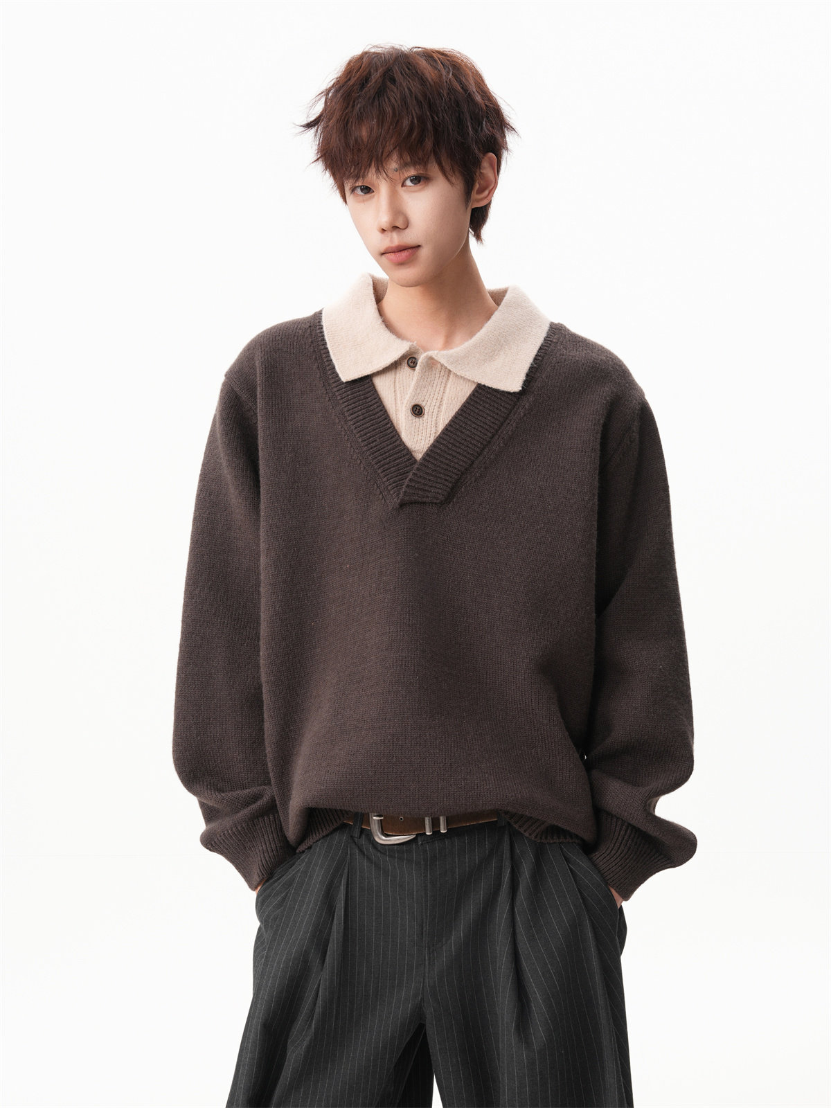 Old Money Style Fake Two-Piece Sweater for Men, Winter Trendy Brand Thick Warm Collared Knitwear, Heavyweight Couple's Shirt Jacket
