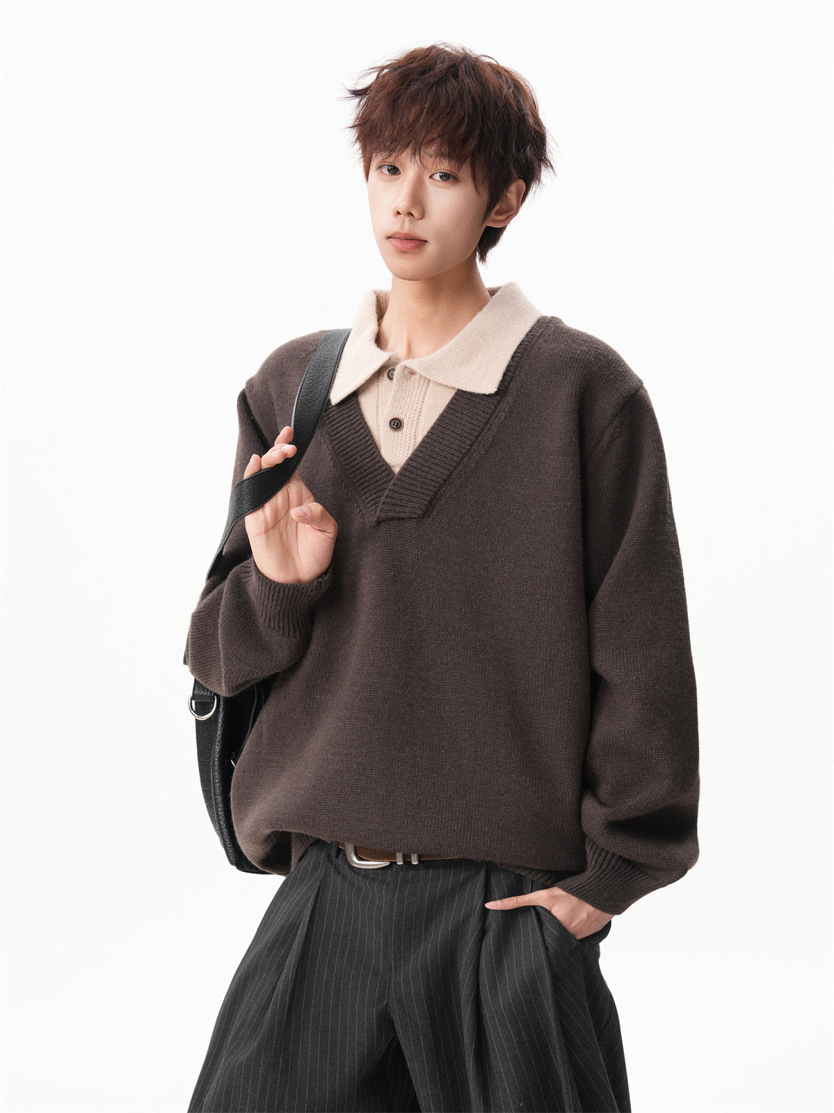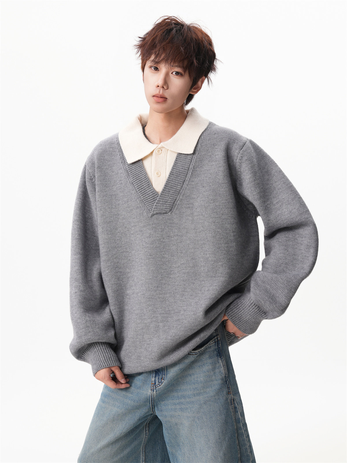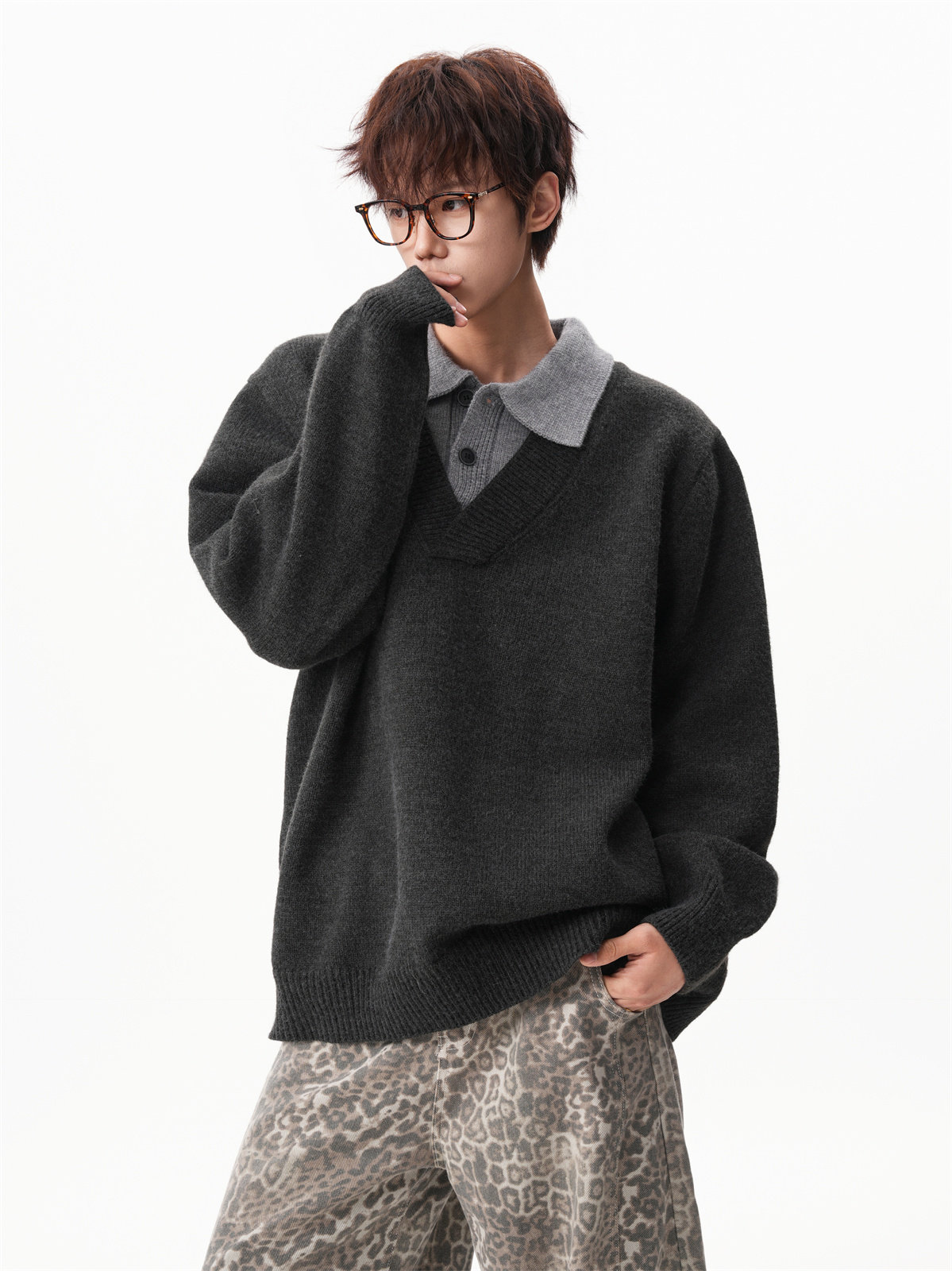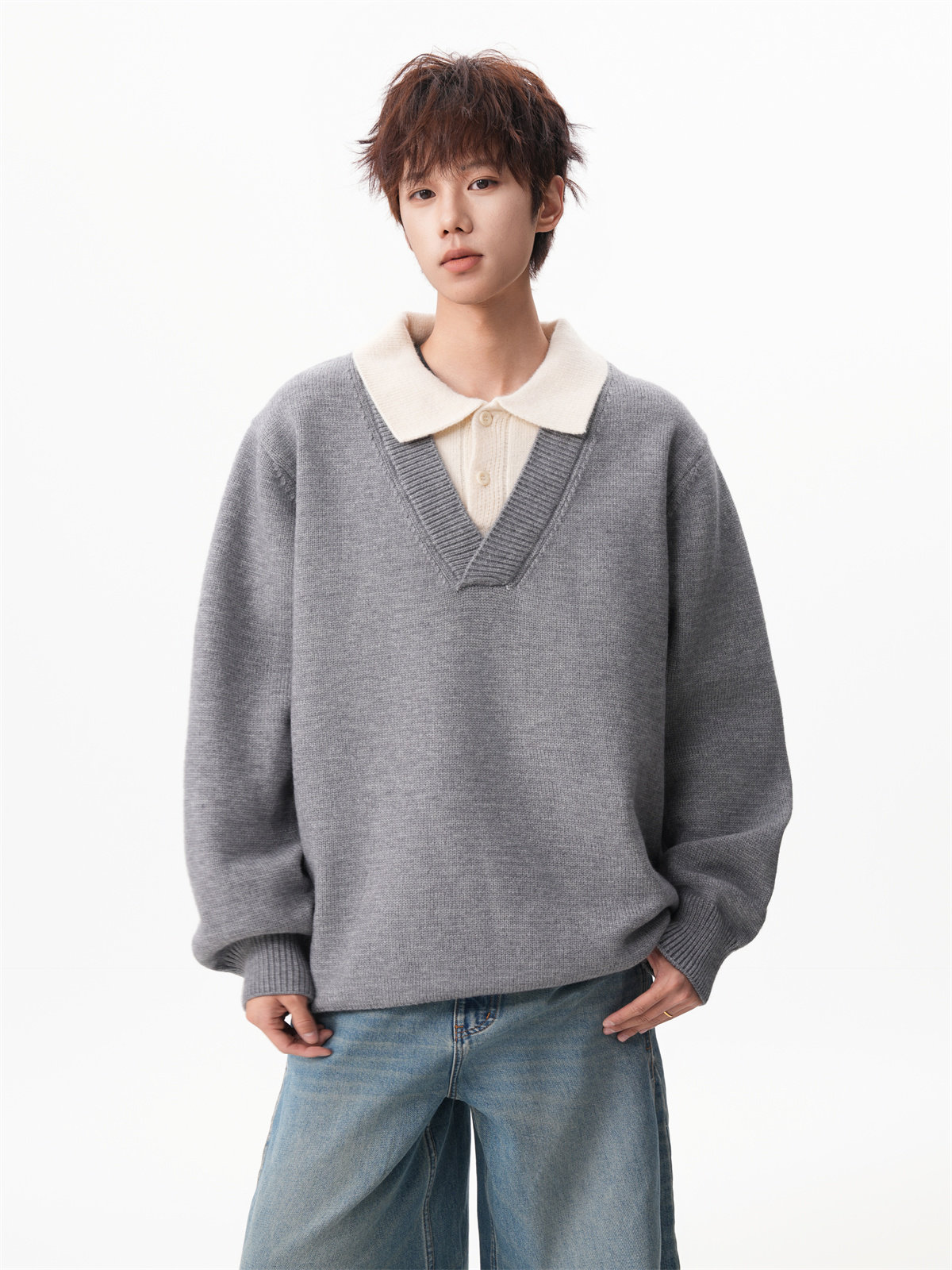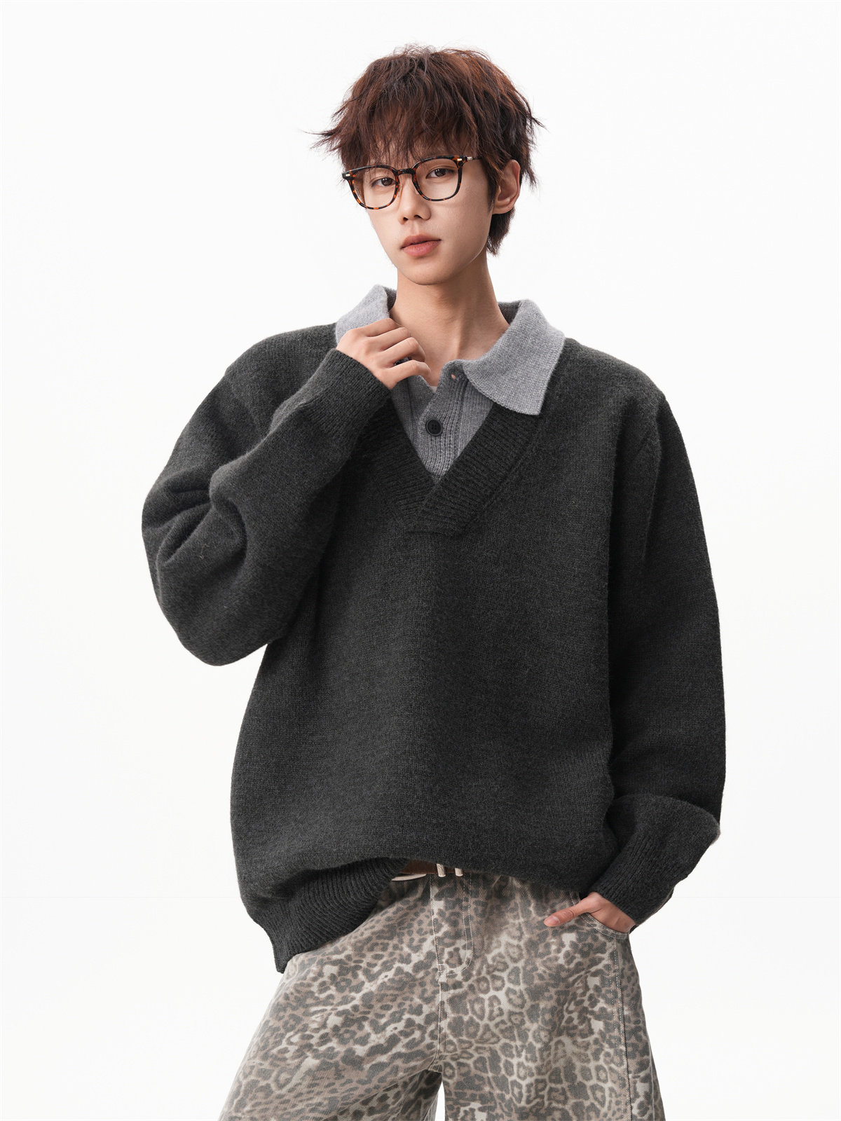 Old Money Style Fake Two-Piece Sweater for Men, Winter Trendy Brand Thick Warm Collared Knitwear, Heavyweight Couple's Shirt Jacket