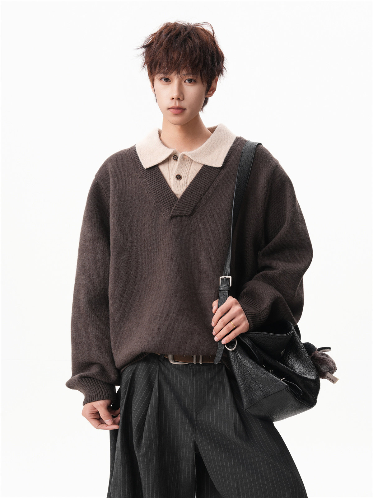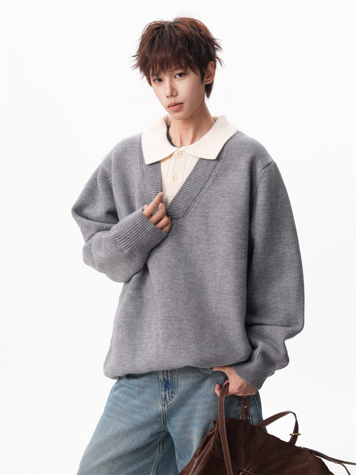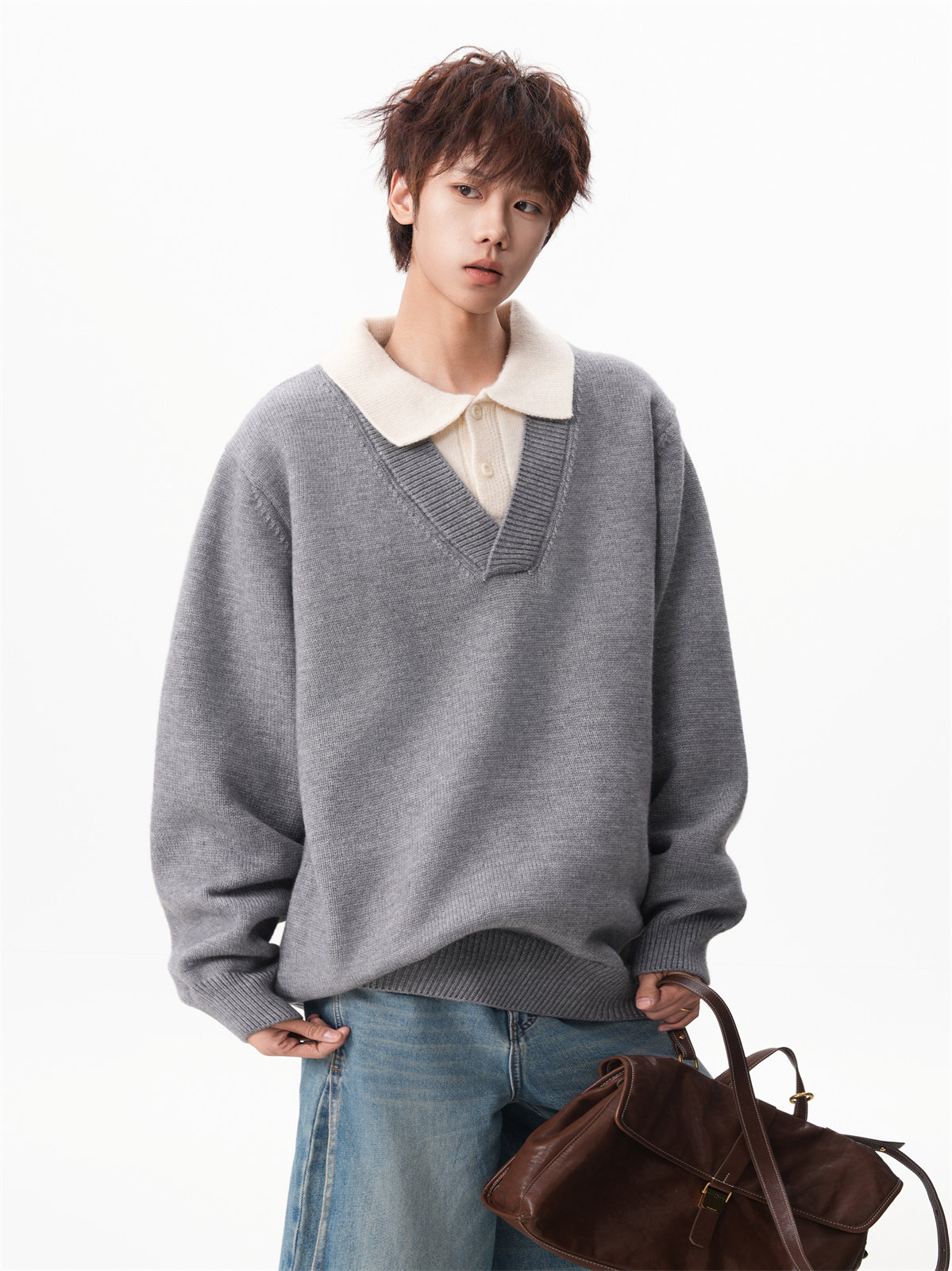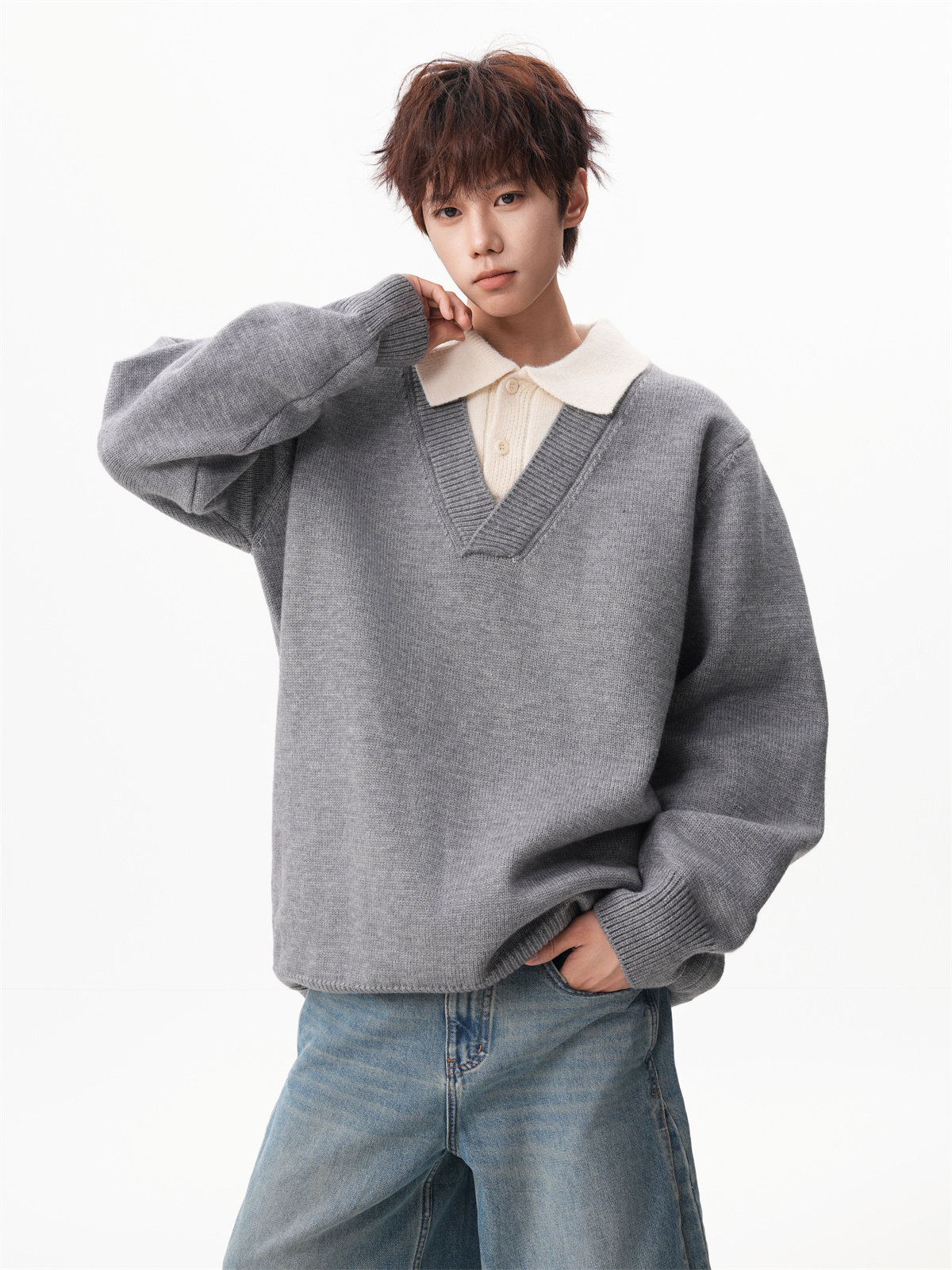 Old Money Style Fake Two-Piece Sweater for Men, Winter Trendy Brand Thick Warm Collared Knitwear, Heavyweight Couple's Shirt Jacket