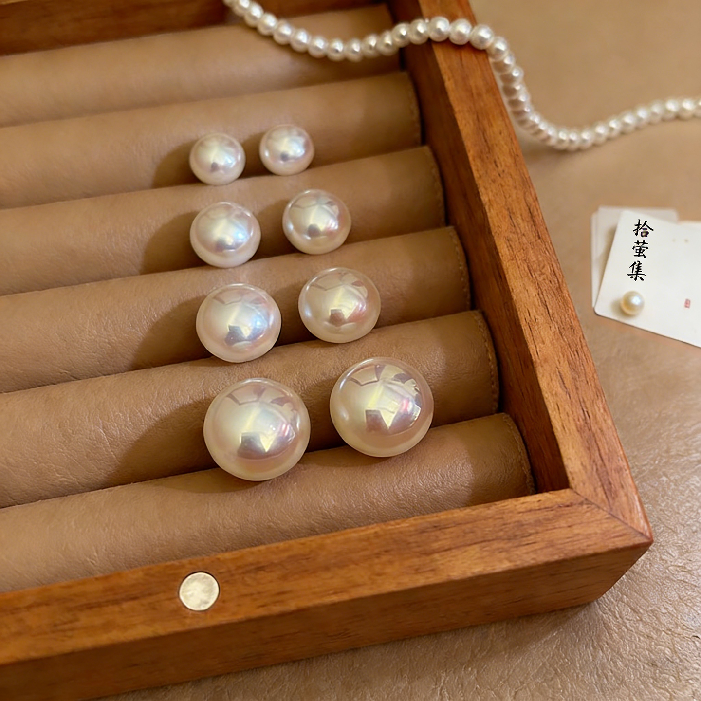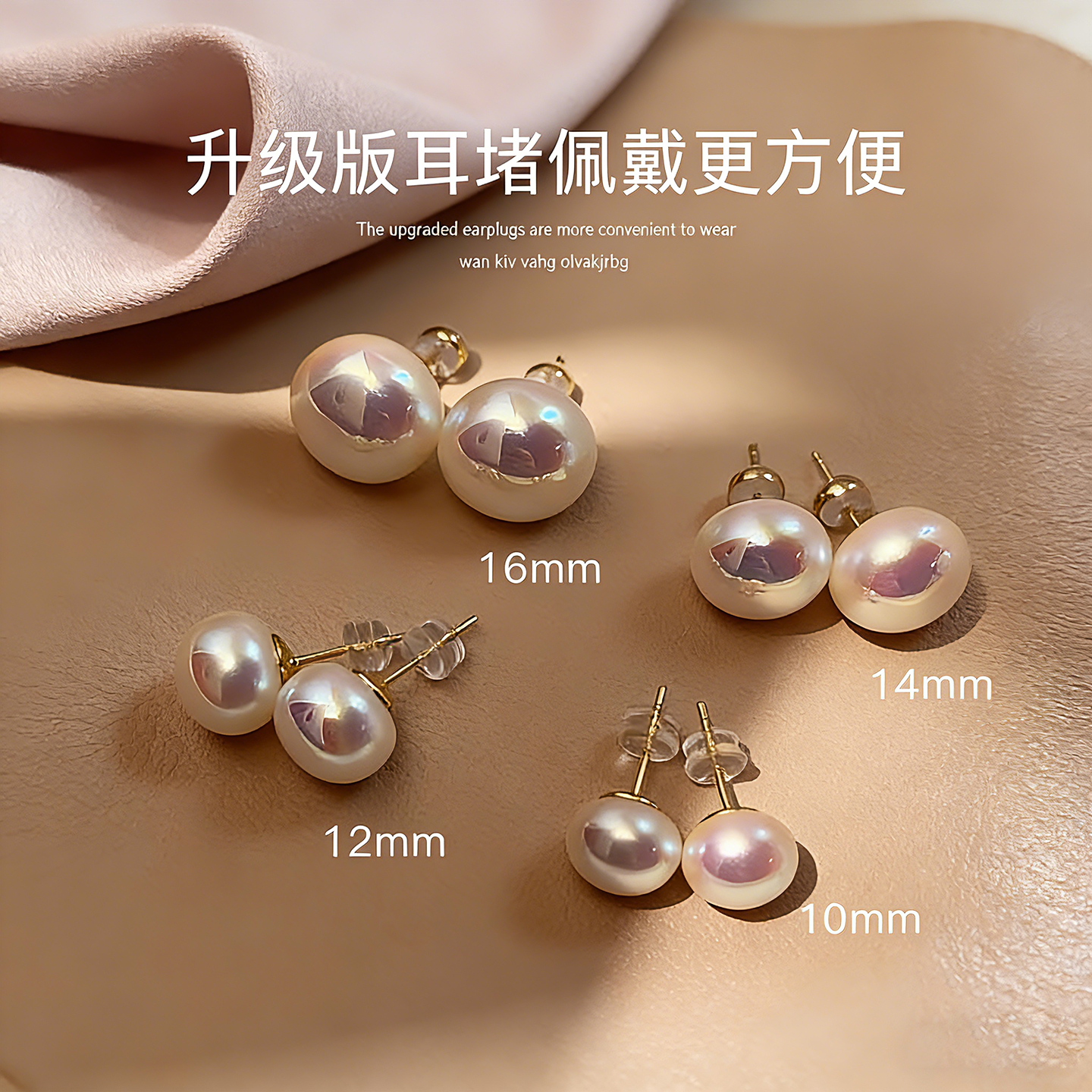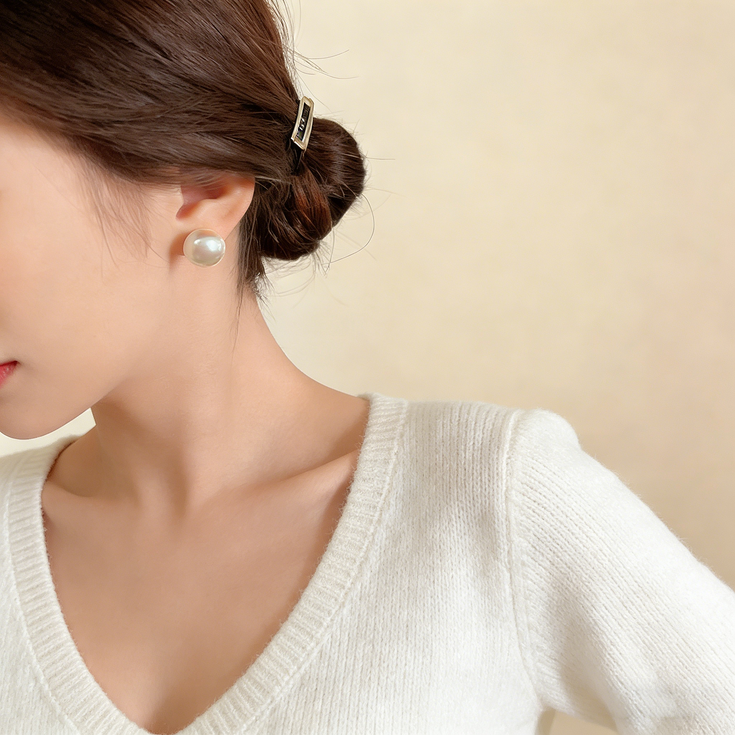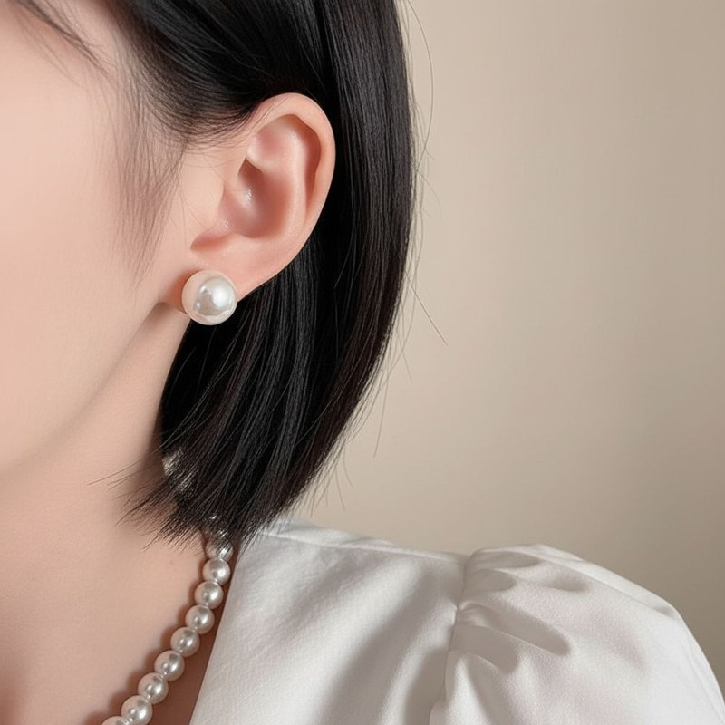 Shijia Pearl Earrings for Women, French Style Pearl Earrings, Large Bun Pearl Elegant Earrings, New Popular High-End Earrings