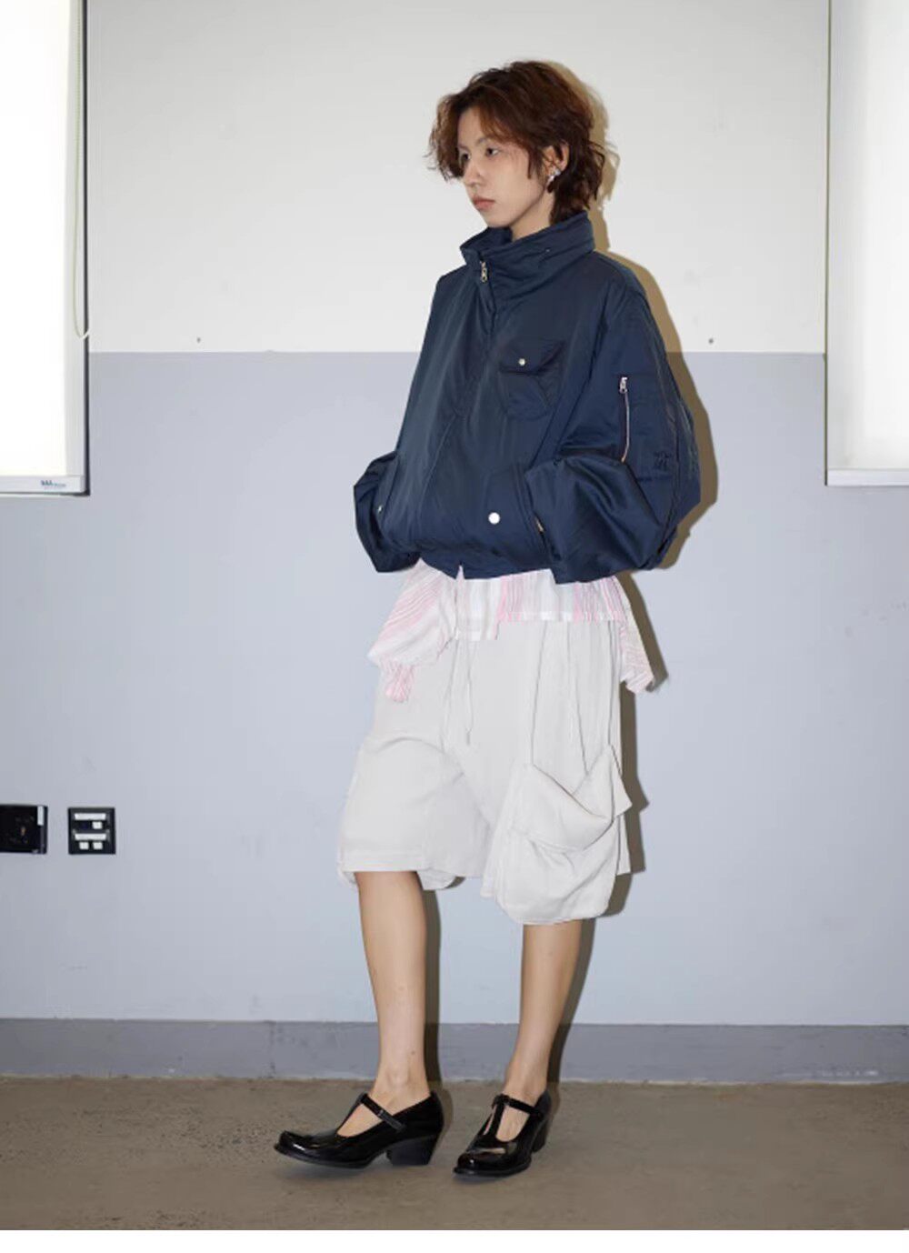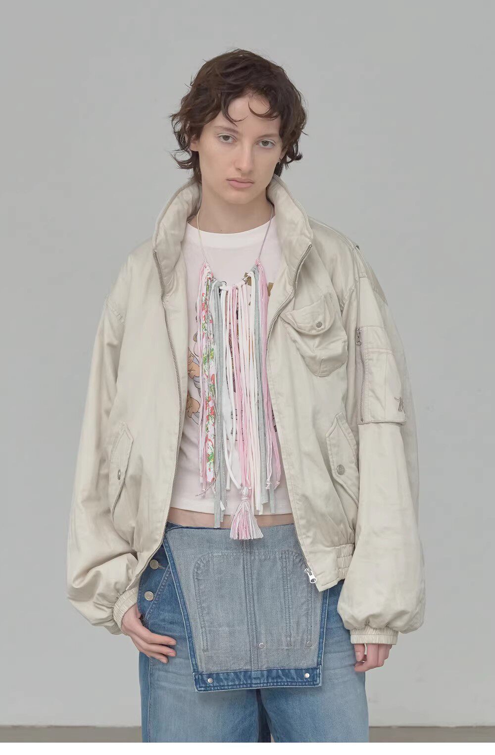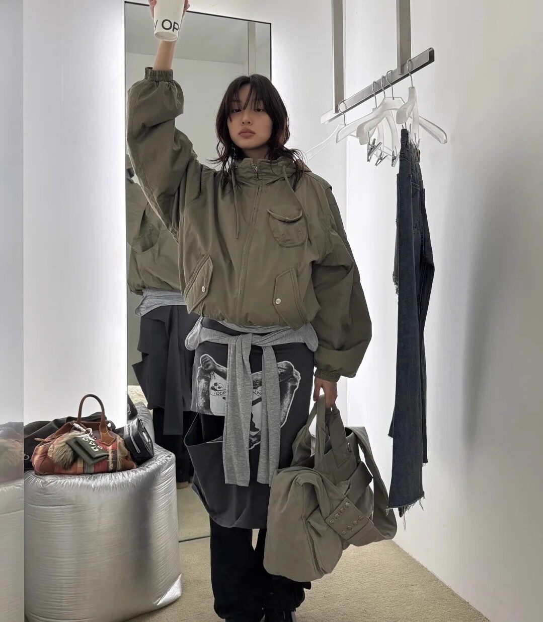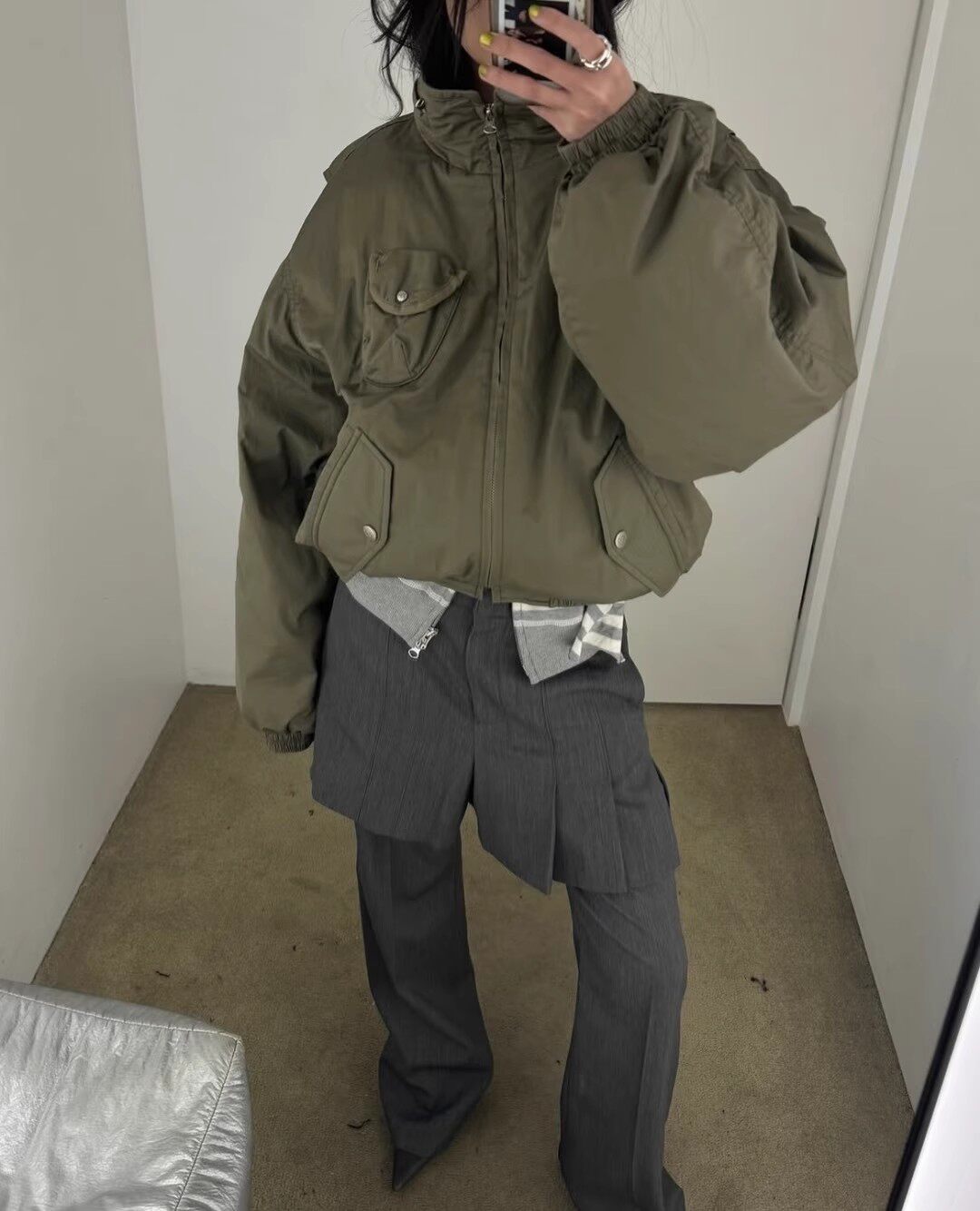 Xthemcaps Korean Designer Op*N *Y Classic Multi-Pocket Retro Flight Crew Cotton Jacket