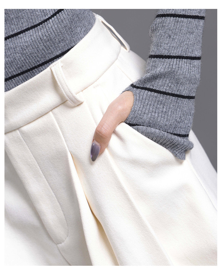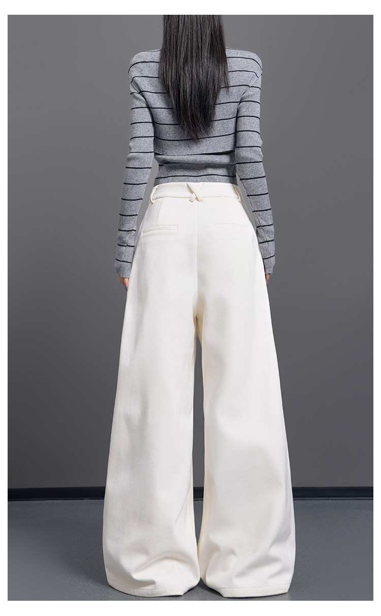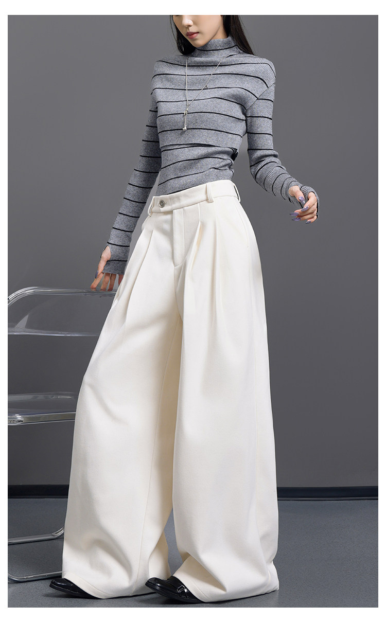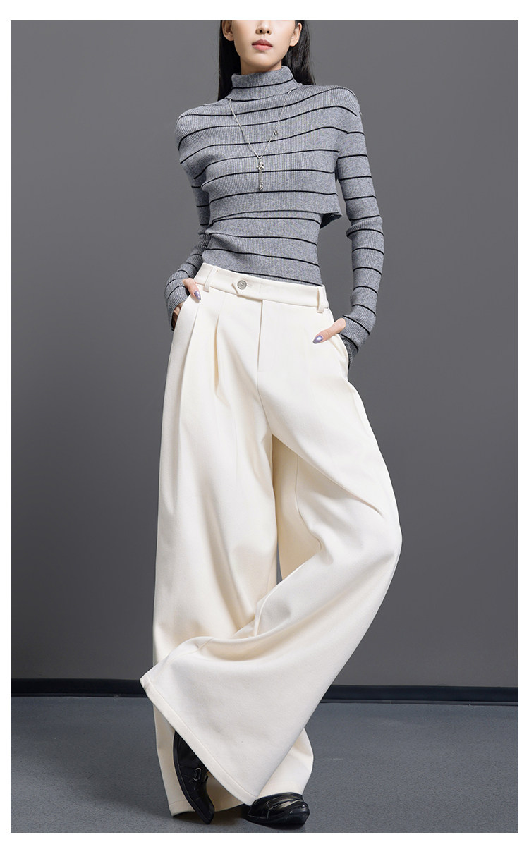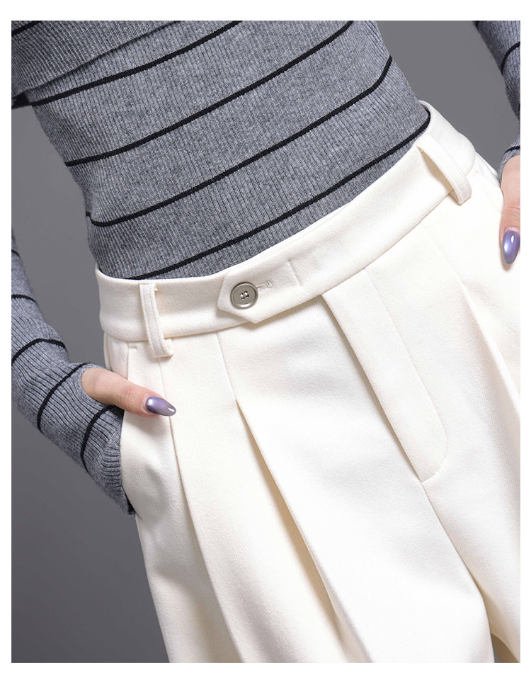 Ken Studio New Autumn and Winter Thickened Beige Wool Suit Pants for Women, Pleated Loose Versatile Wide-Leg Pants