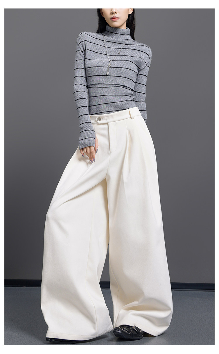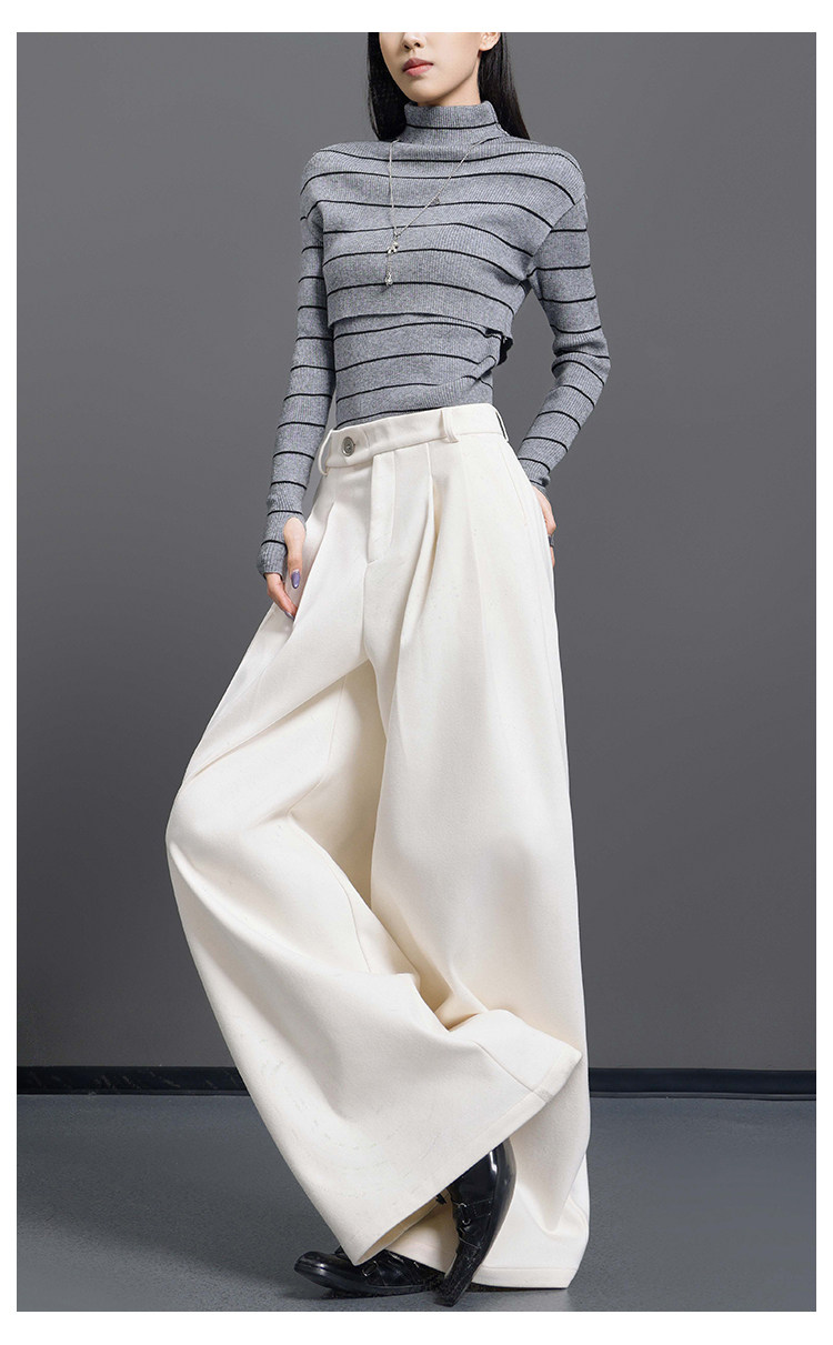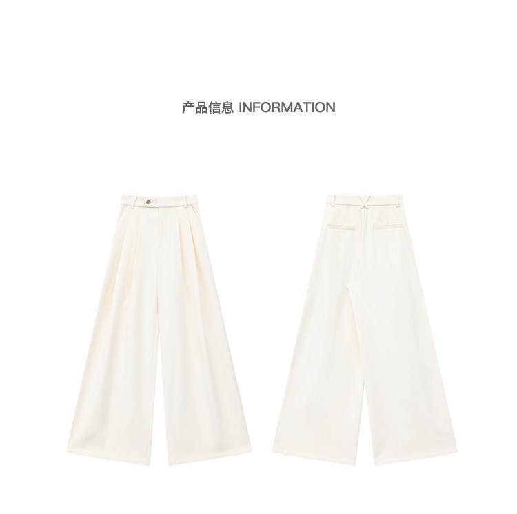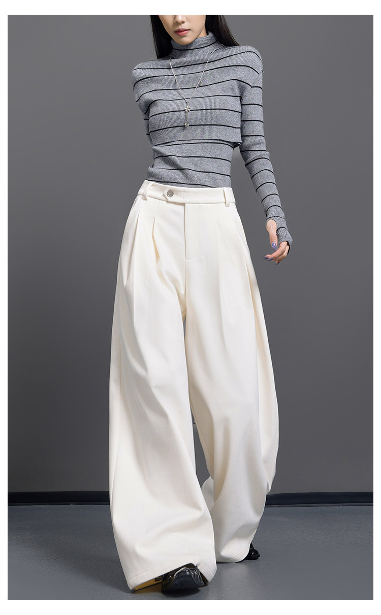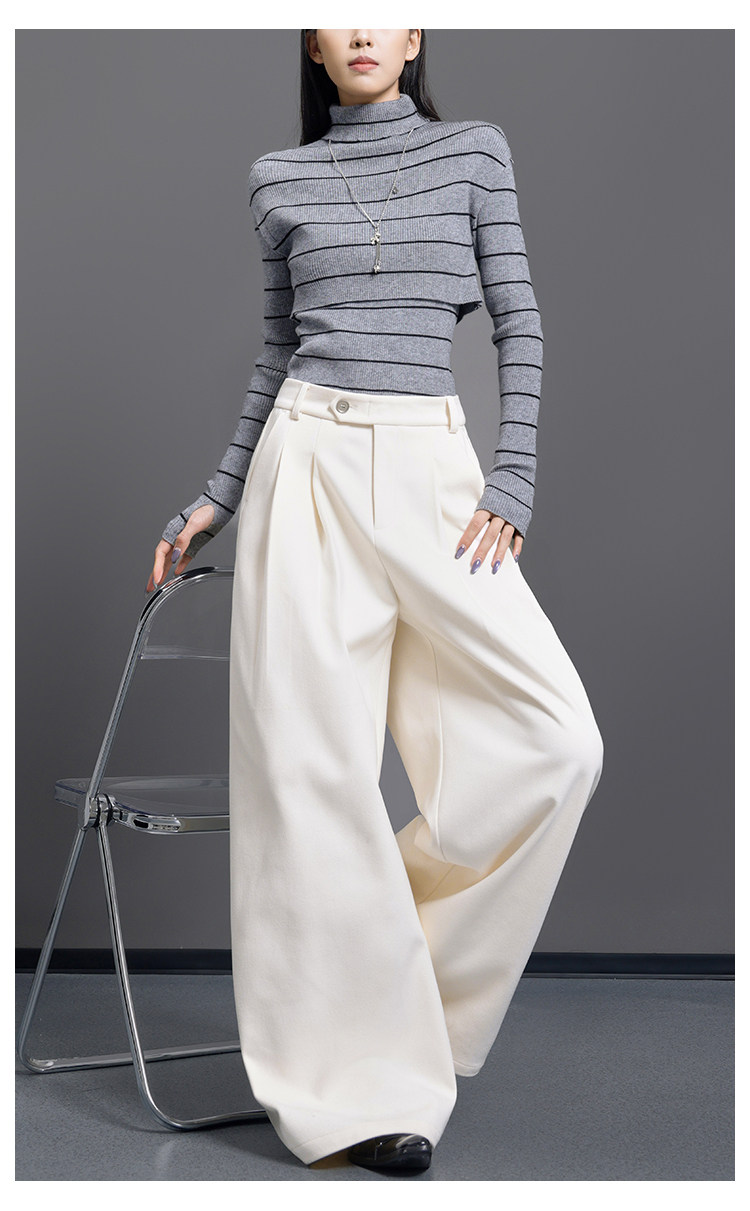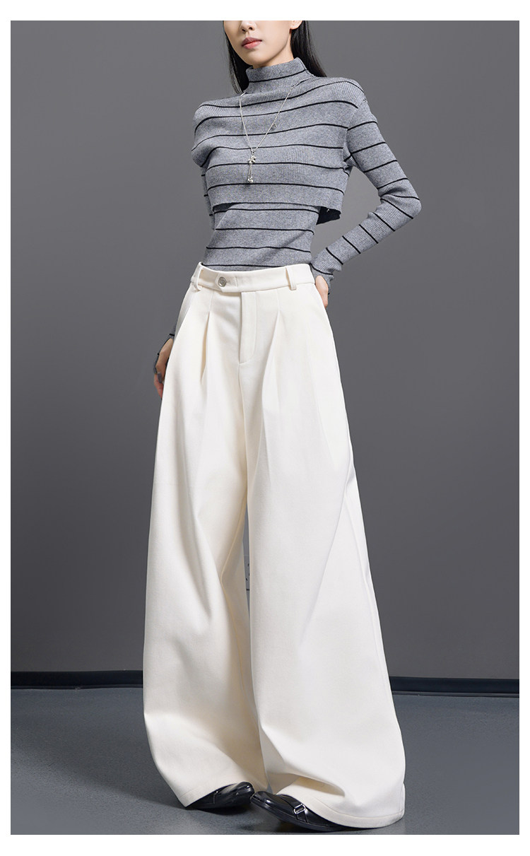 Ken Studio New Autumn and Winter Thickened Beige Wool Suit Pants for Women, Pleated Loose Versatile Wide-Leg Pants