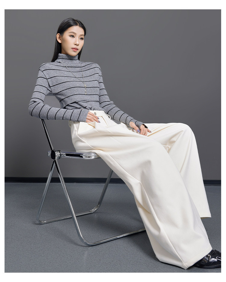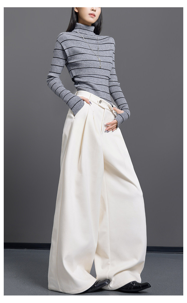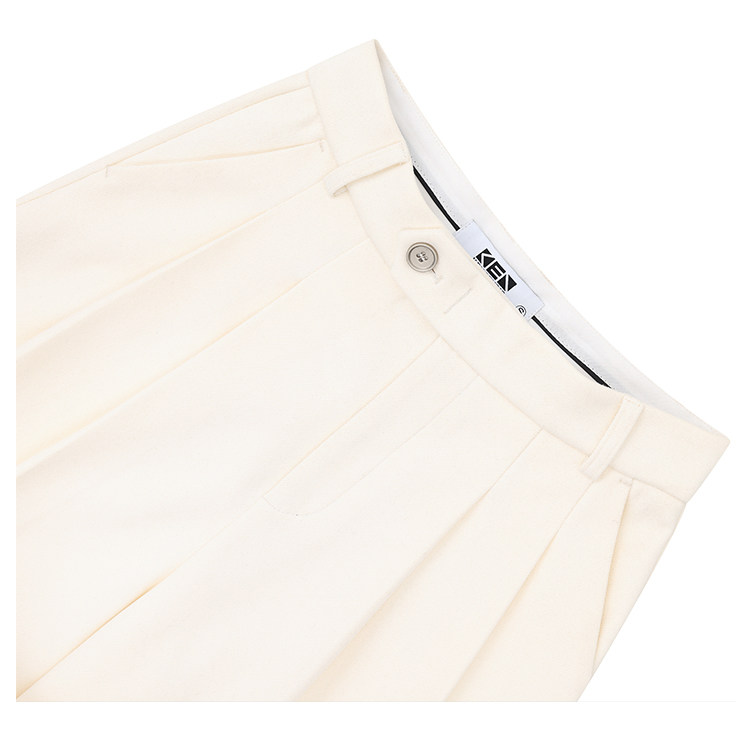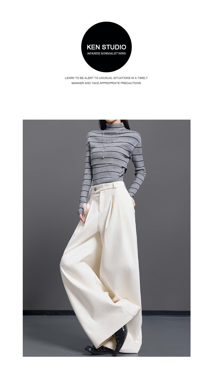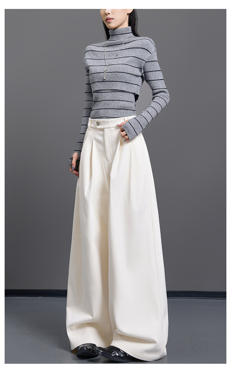 Ken Studio New Autumn and Winter Thickened Beige Wool Suit Pants for Women, Pleated Loose Versatile Wide-Leg Pants