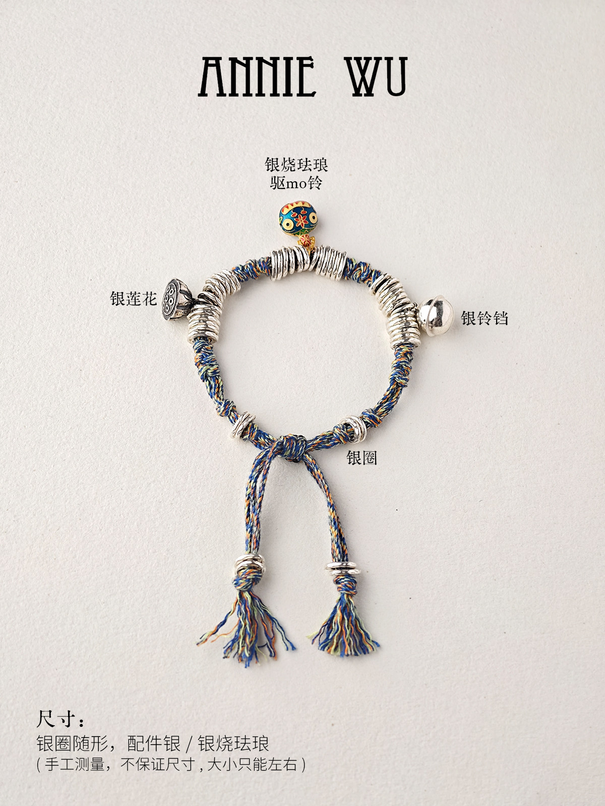 Annie Wu【Miaoyin Tiya】Tibetan-Style Mo-Repelling Bell 925 Silver Coiled Rope Bracelet Chinese-Style Cultural Jewelry