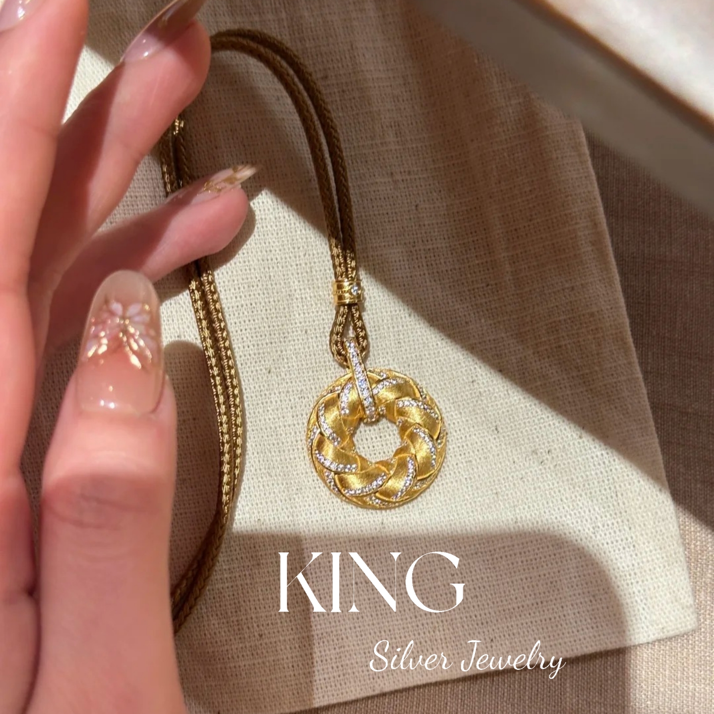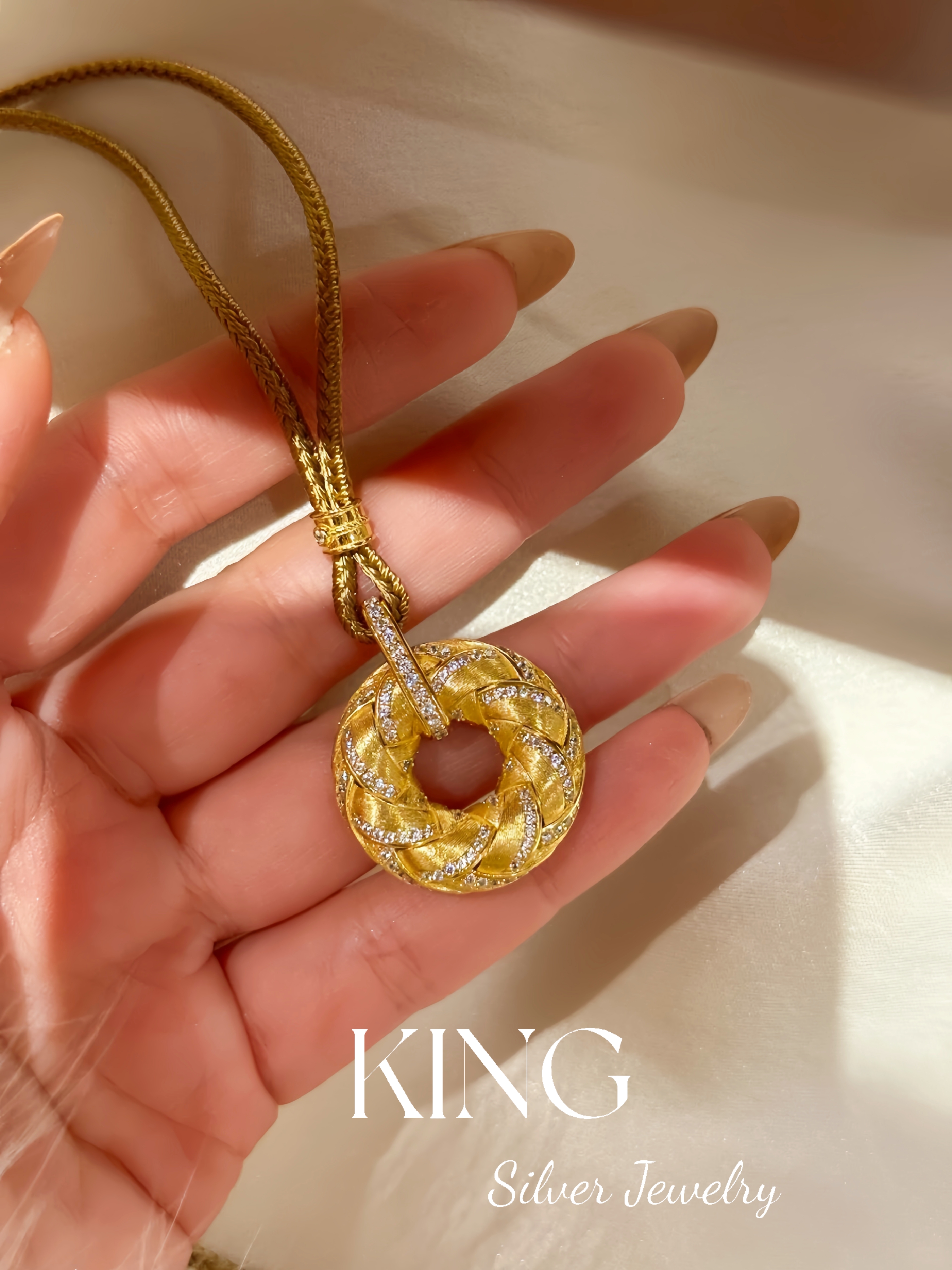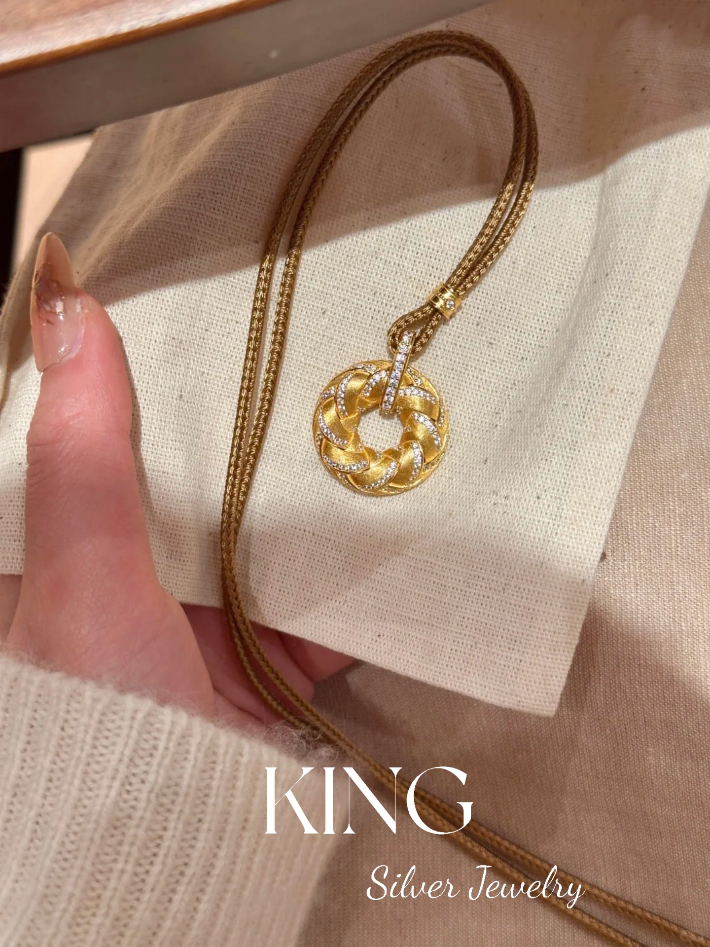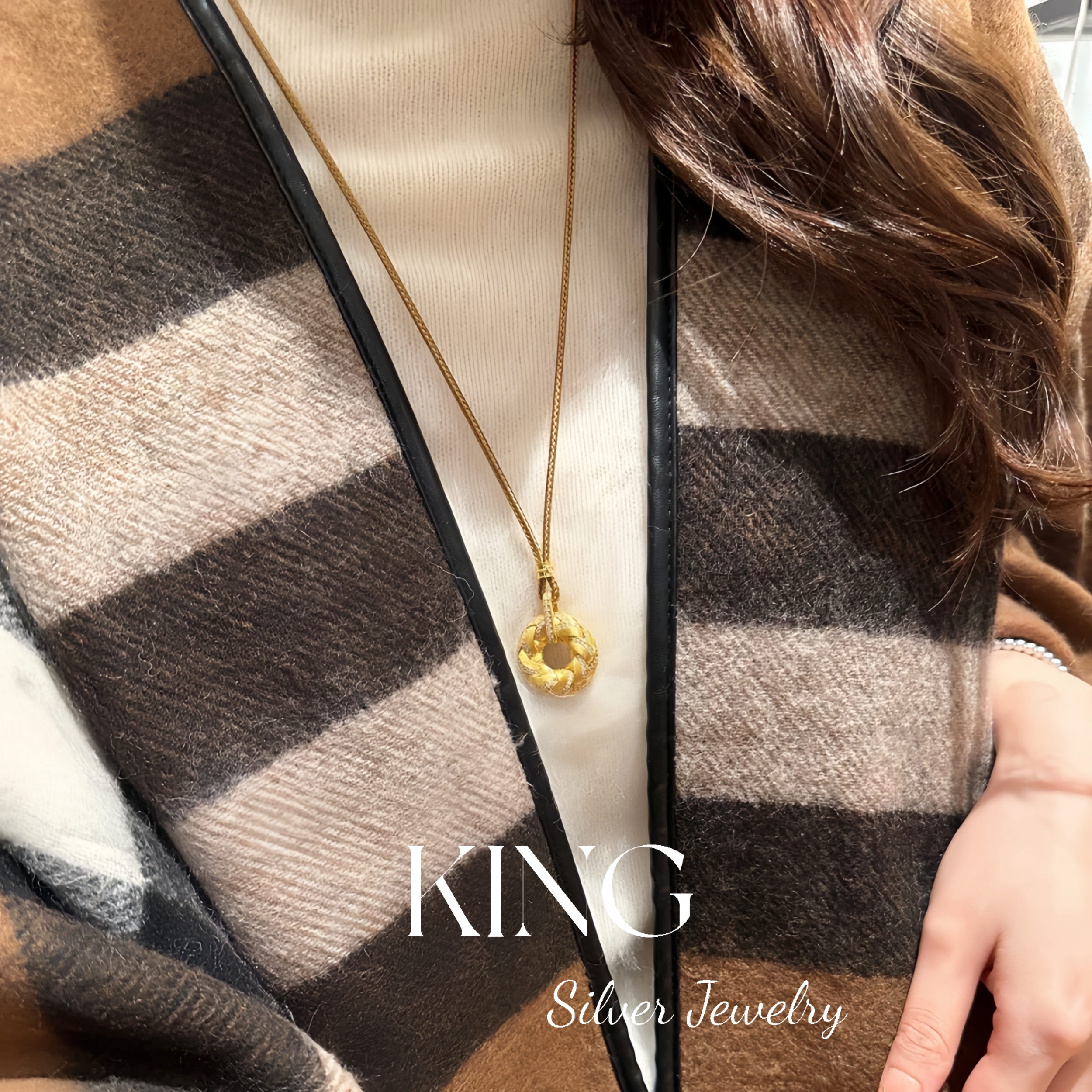 Gilt Woven Gold Buckle | King Silver Jewelry Brushed Vintage New Chinese Style Heavy Craftsmanship Pure Silver Brown Rope Necklace Bracelet