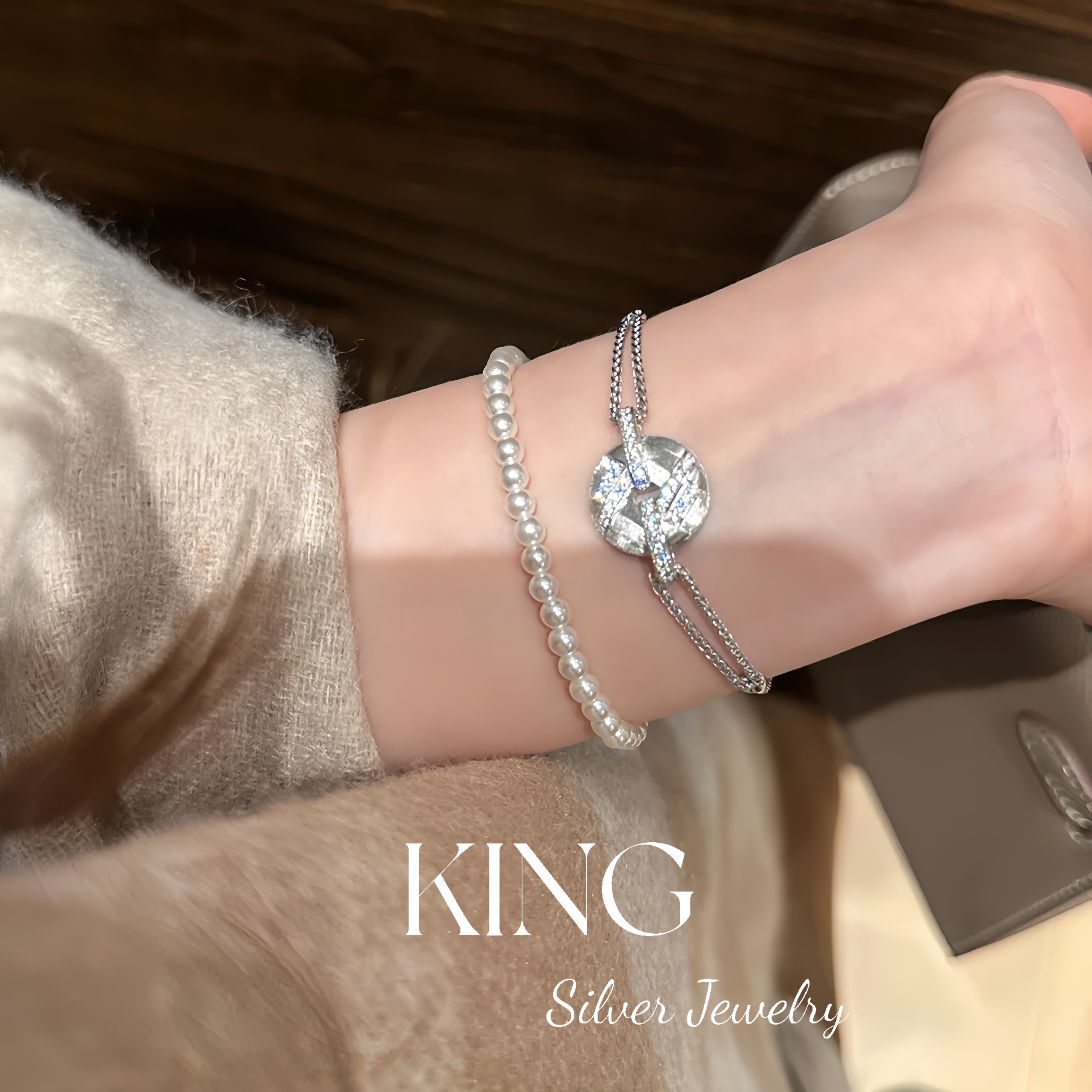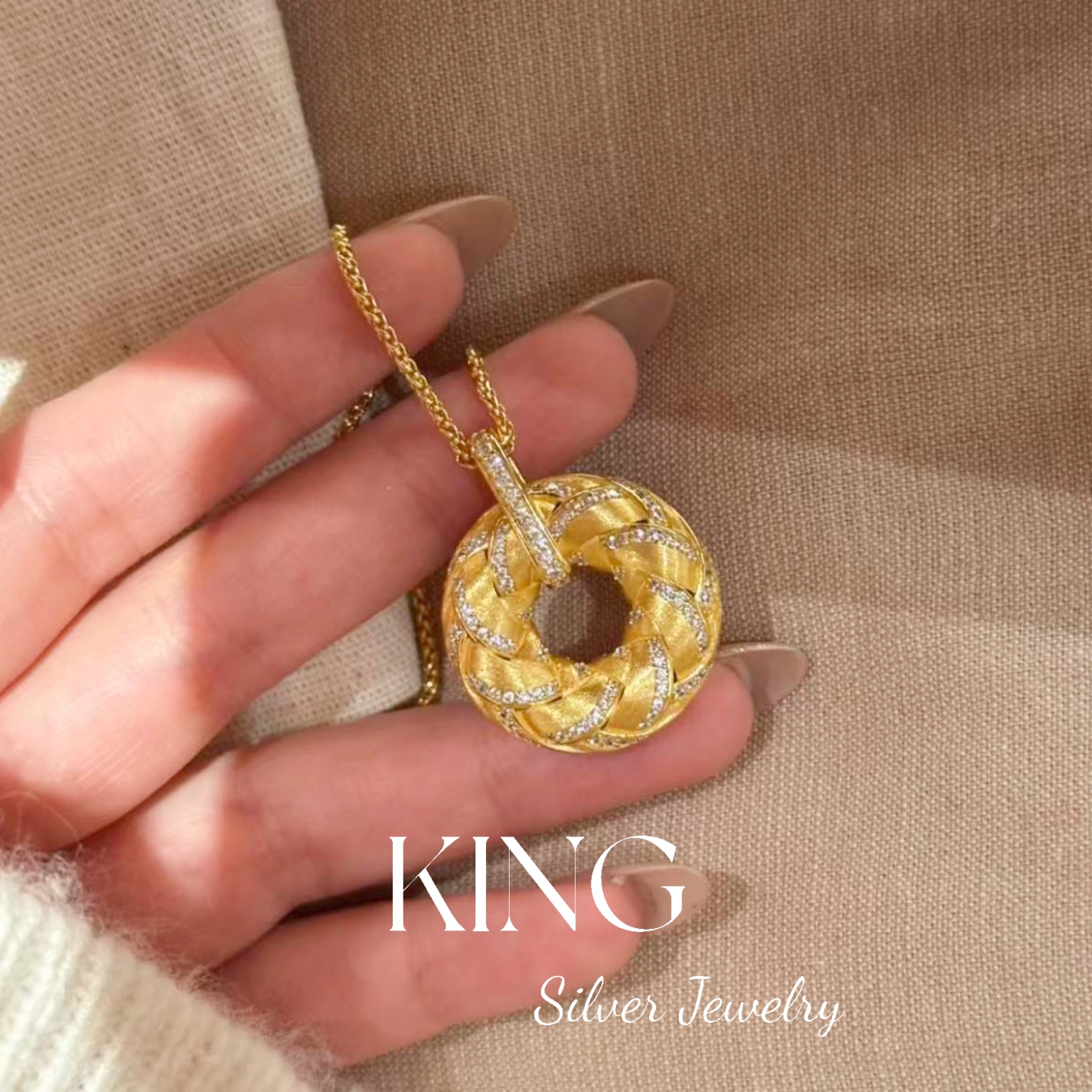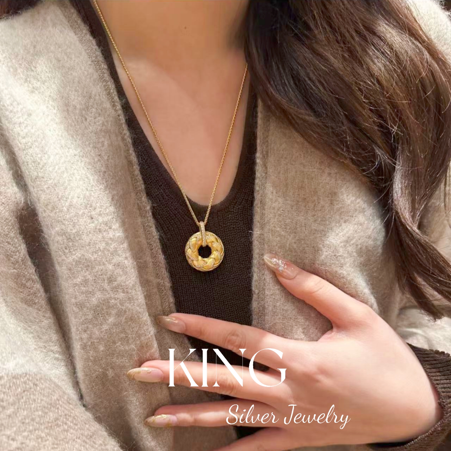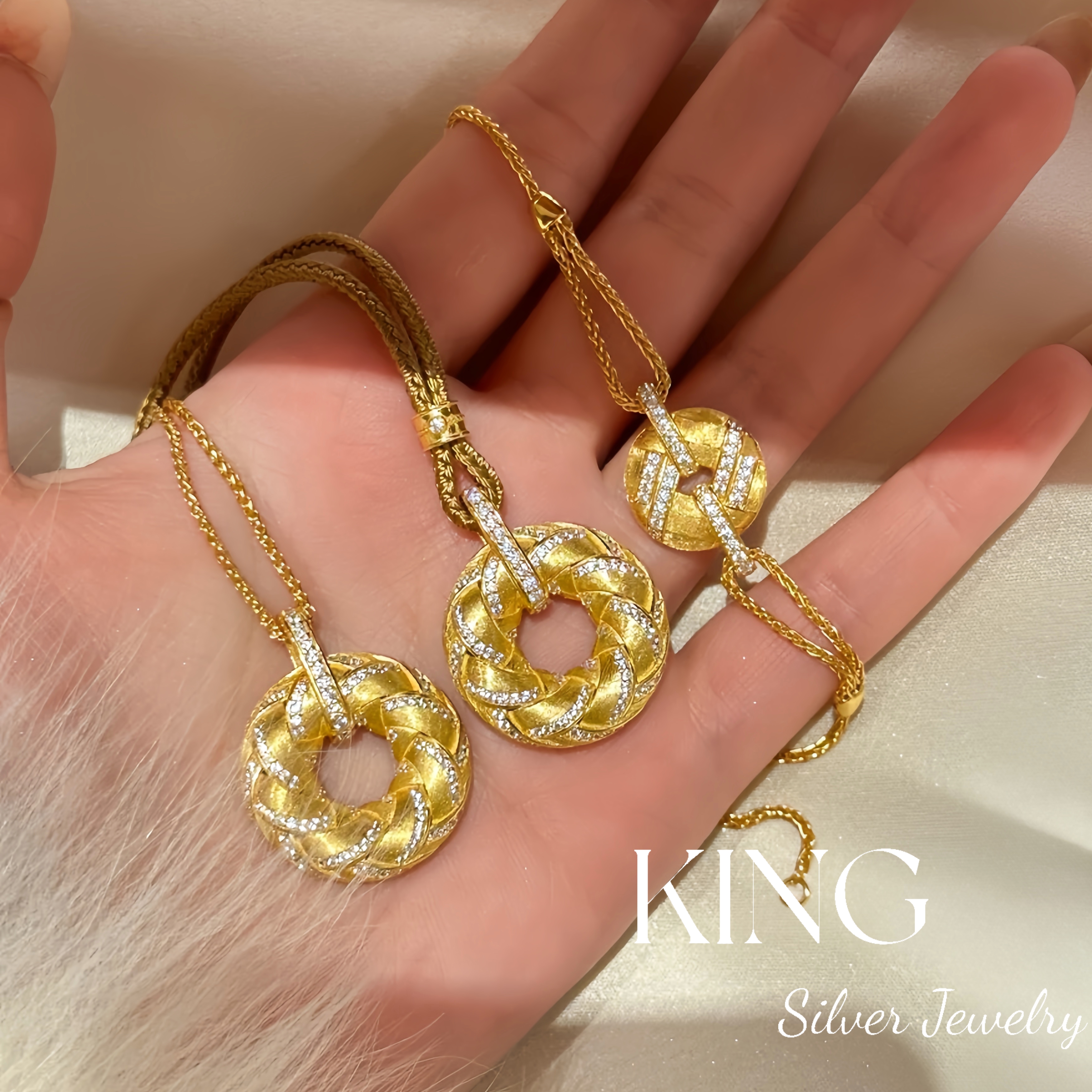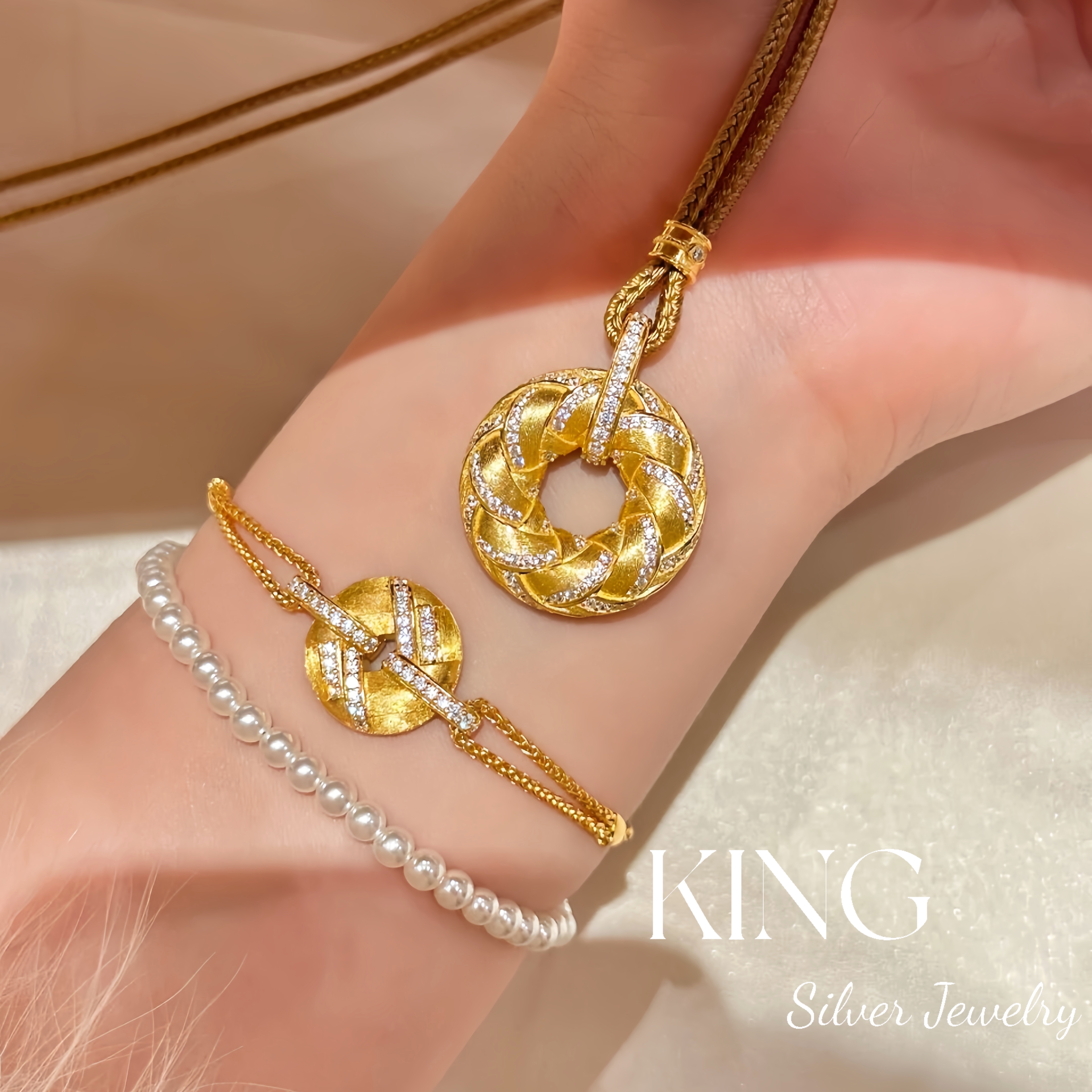 Gilt Woven Gold Buckle | King Silver Jewelry Brushed Vintage New Chinese Style Heavy Craftsmanship Pure Silver Brown Rope Necklace Bracelet