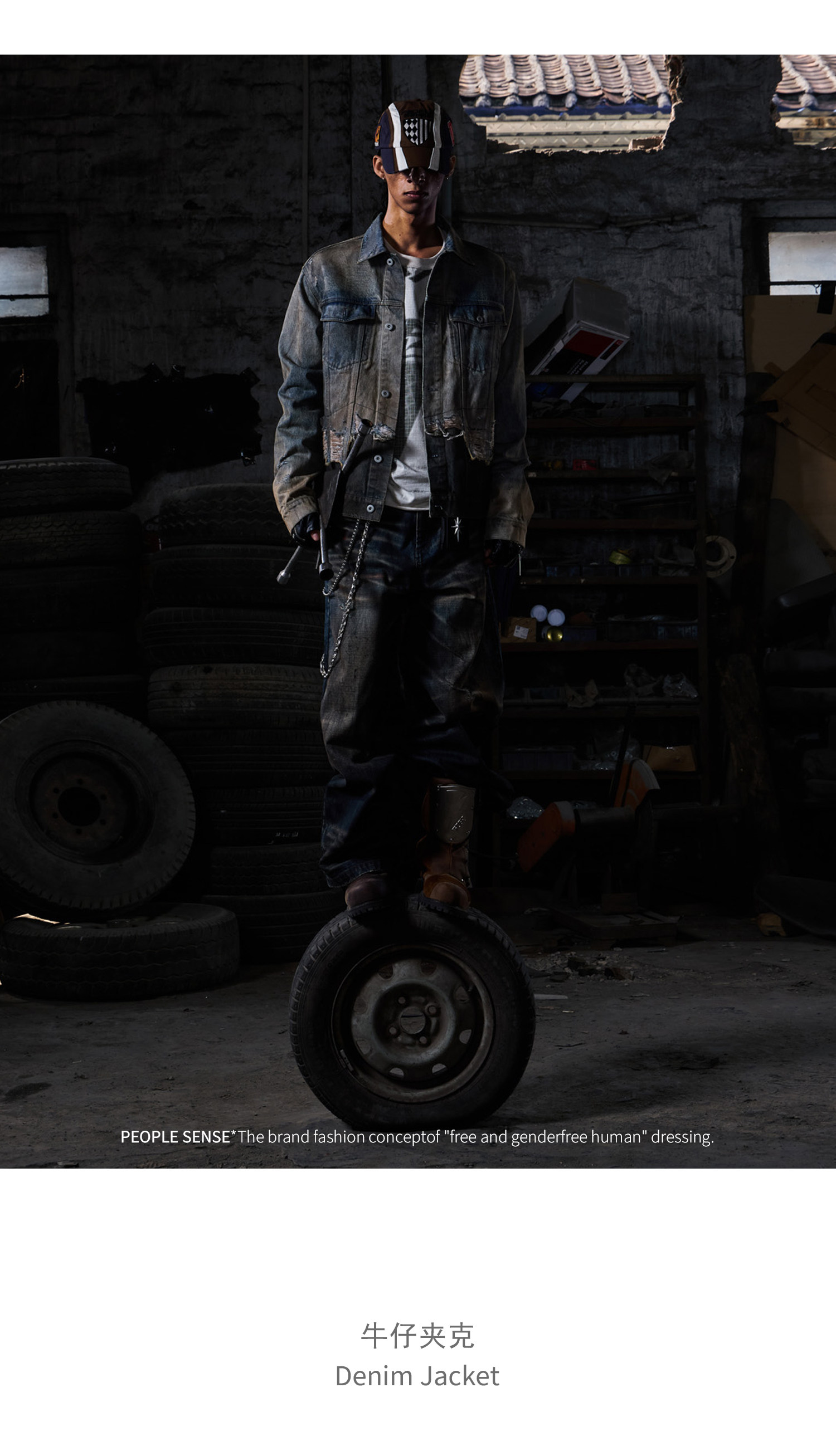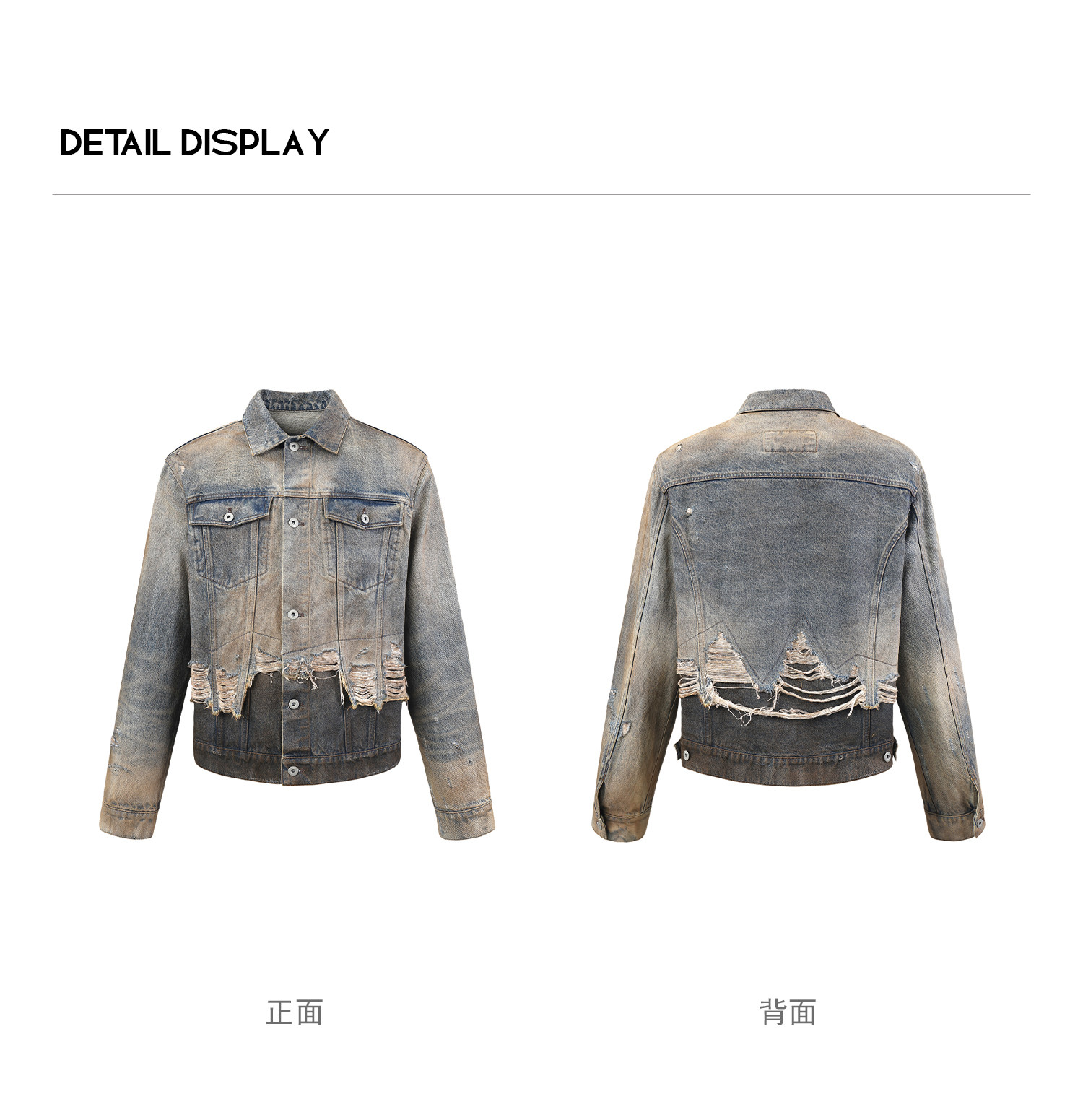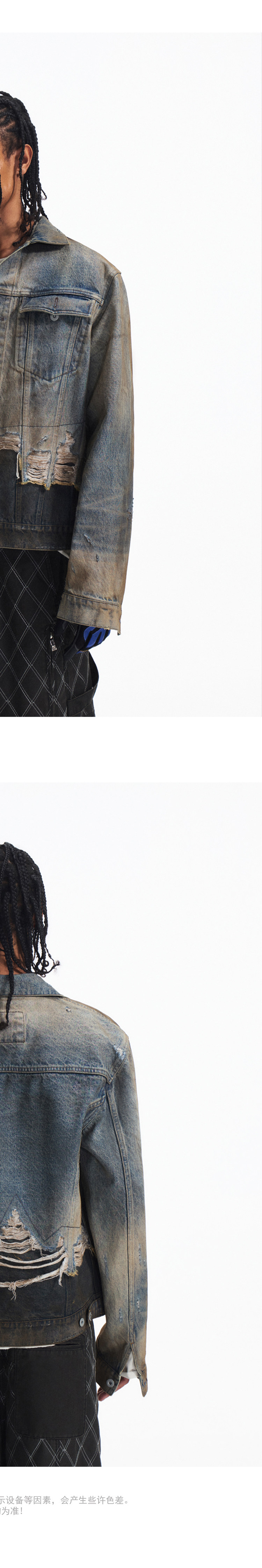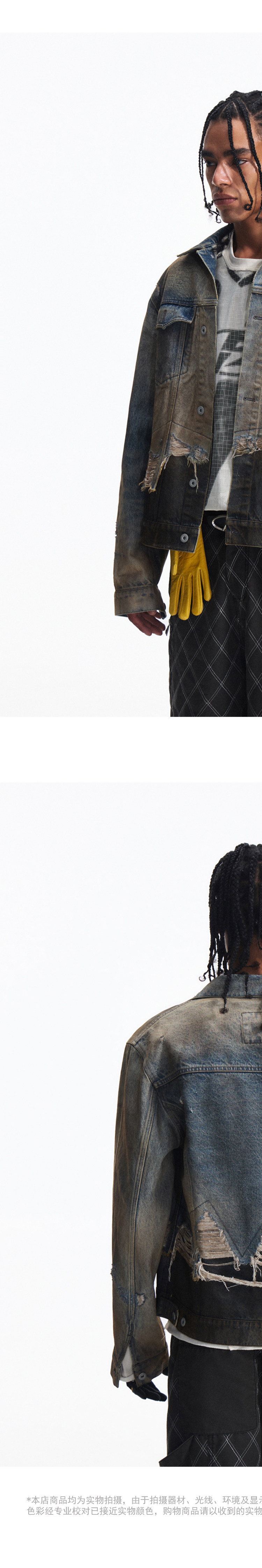 Peoplesense Distressed Patchwork Denim Jacket Vintage Fringe Dirty Wash Coat Men's Spring and Autumn Short Top