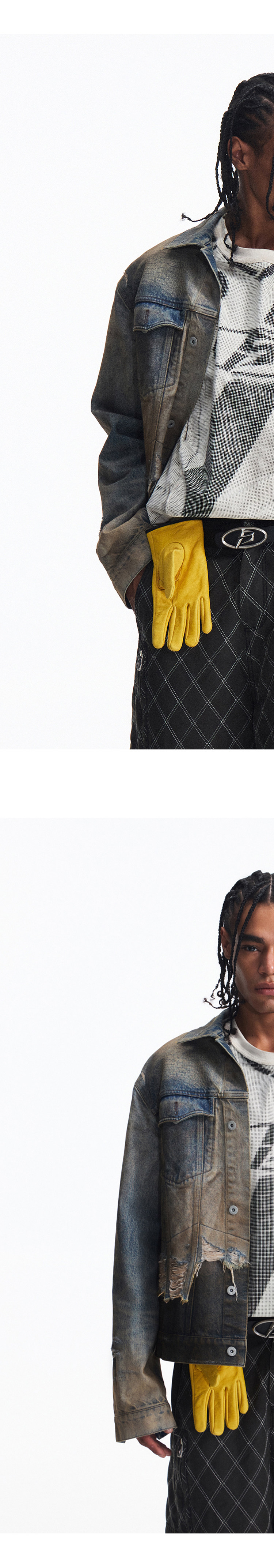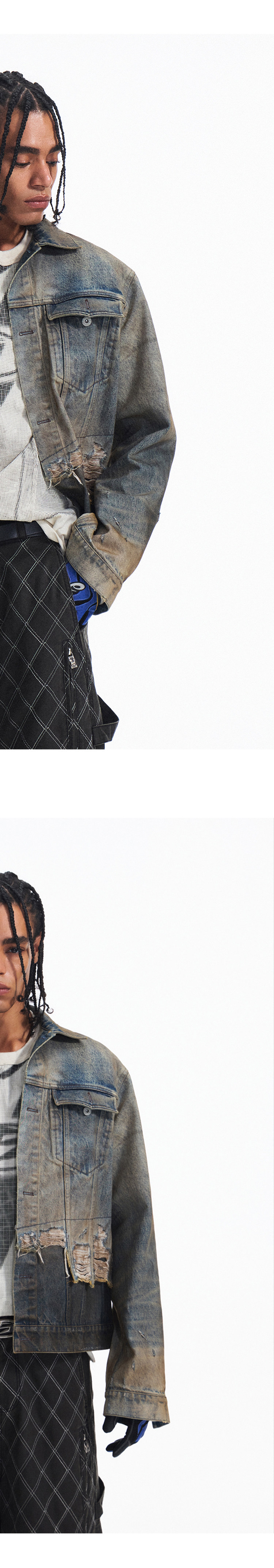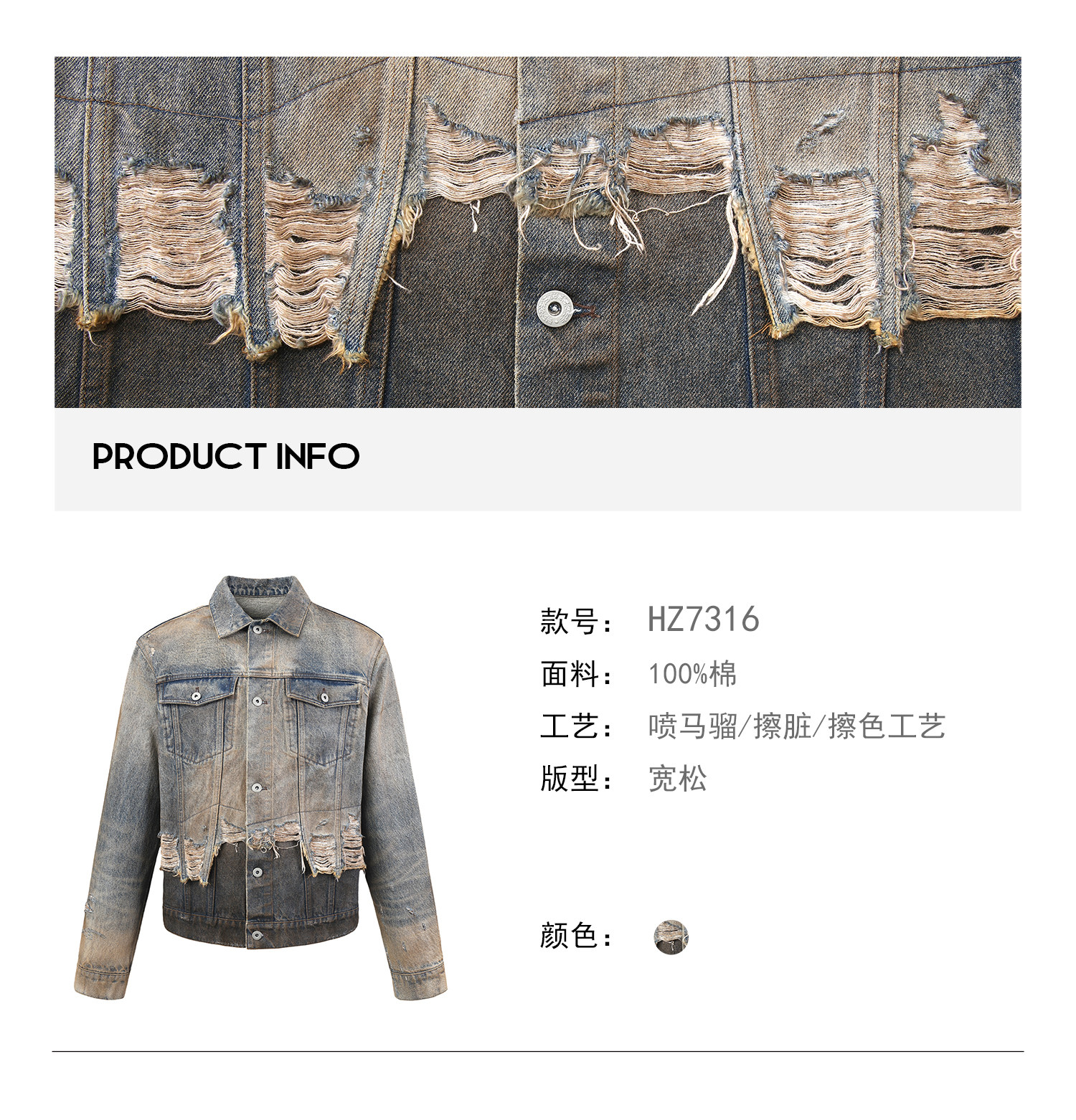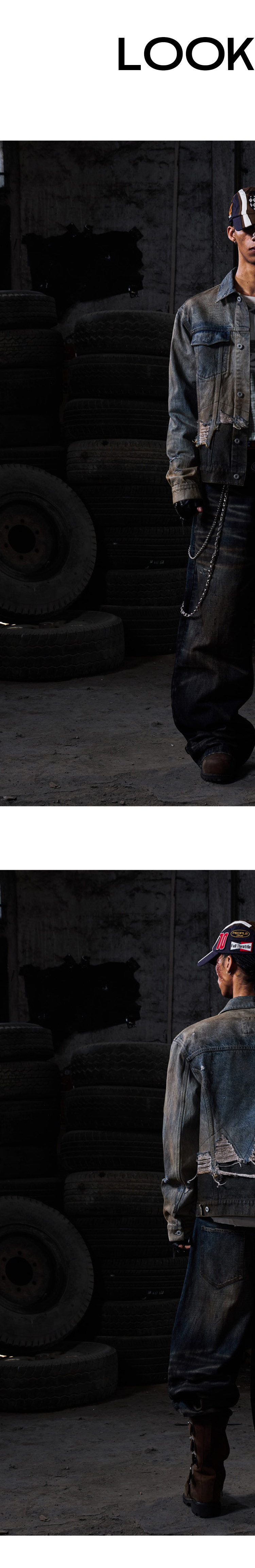Peoplesense Distressed Patchwork Denim Jacket Vintage Fringe Dirty Wash Coat Men's Spring and Autumn Short Top