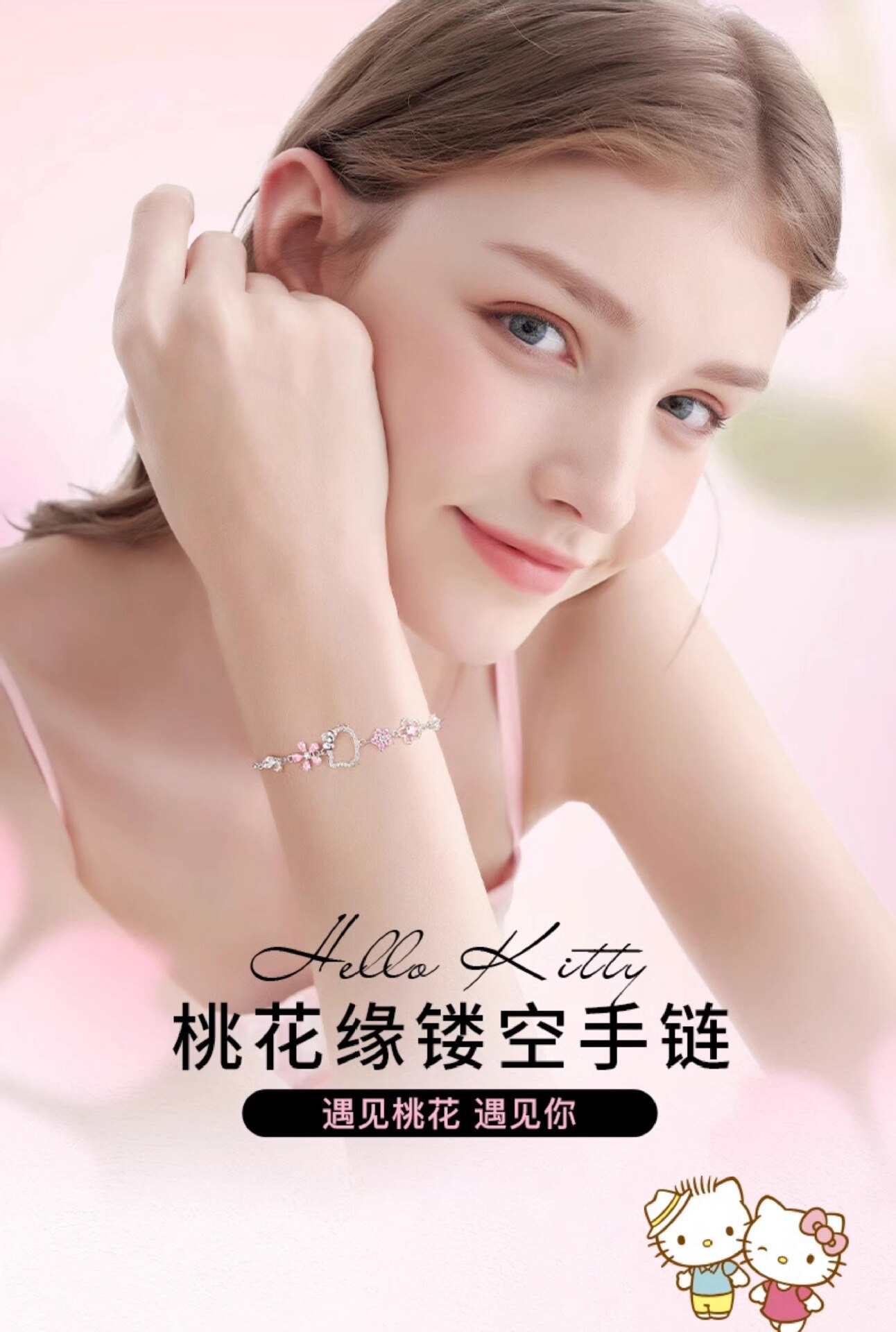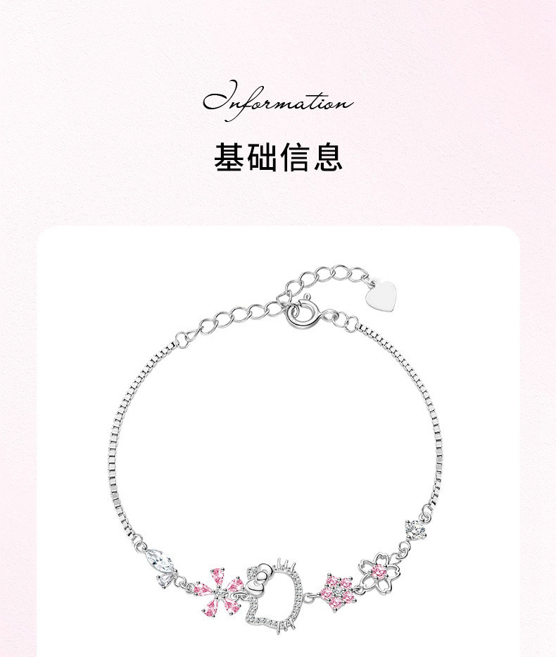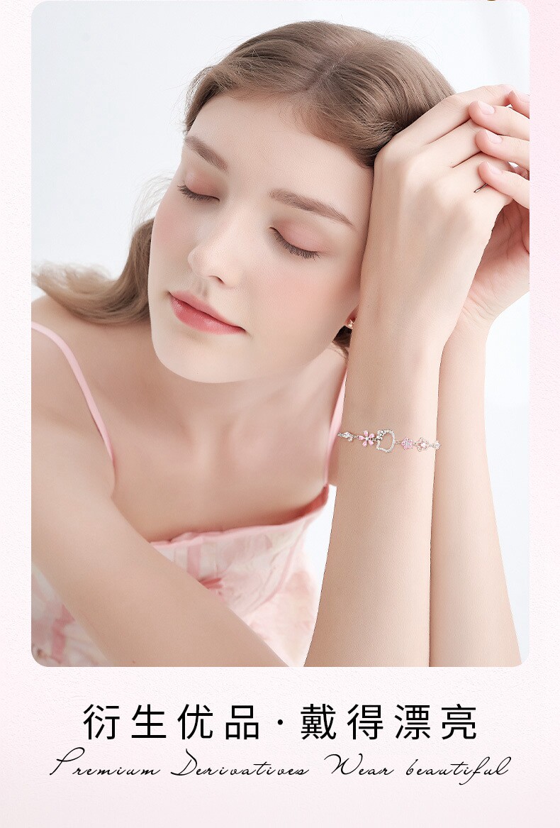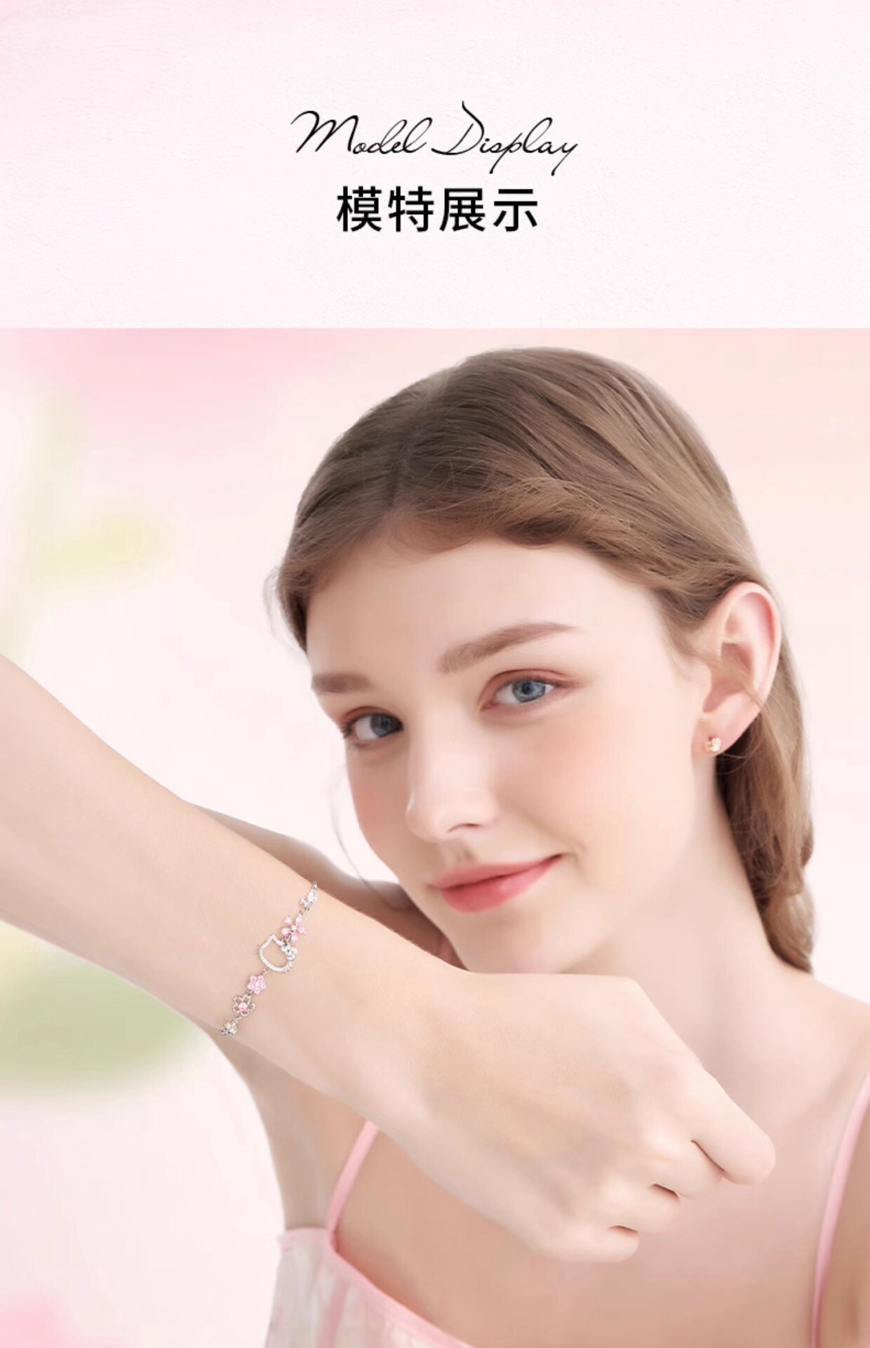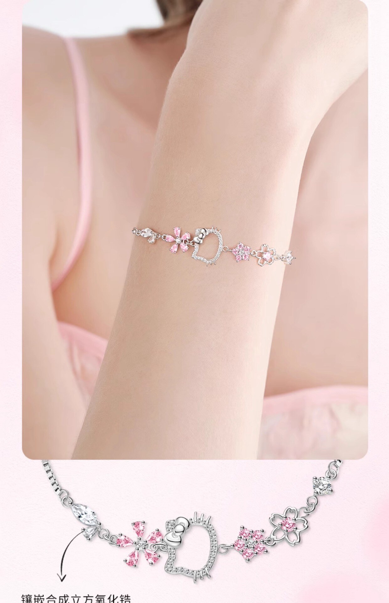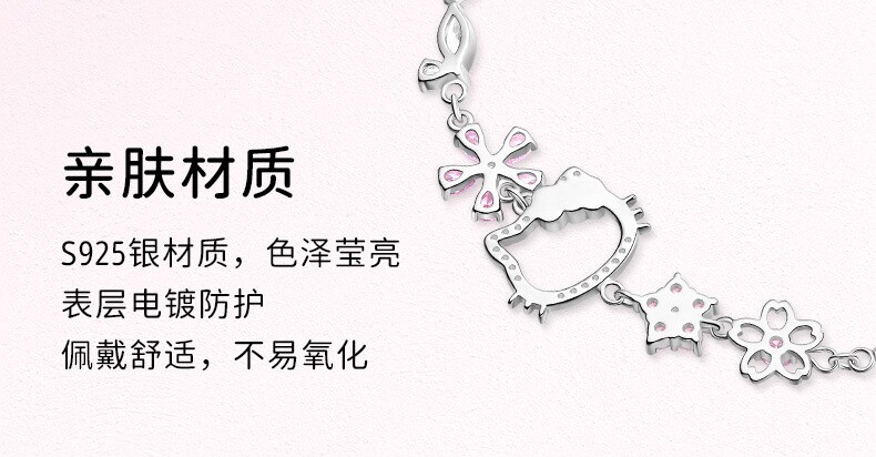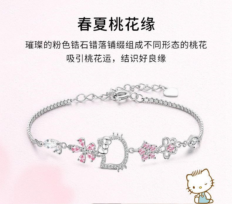 Hellokitty Four-Leaf Clover Sterling Silver Bracelet, Light Luxury and High-End Feel, Sterling Silver Jewelry for Girls, Birthday Gift for Girlfriend