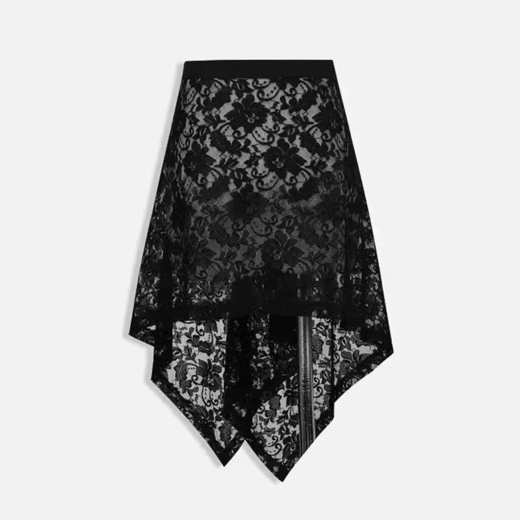Fashionable Retro Design Slimming Lace Skirt with a Hem Curtain, New Irregular Short Skirt Apron for Winter 2025