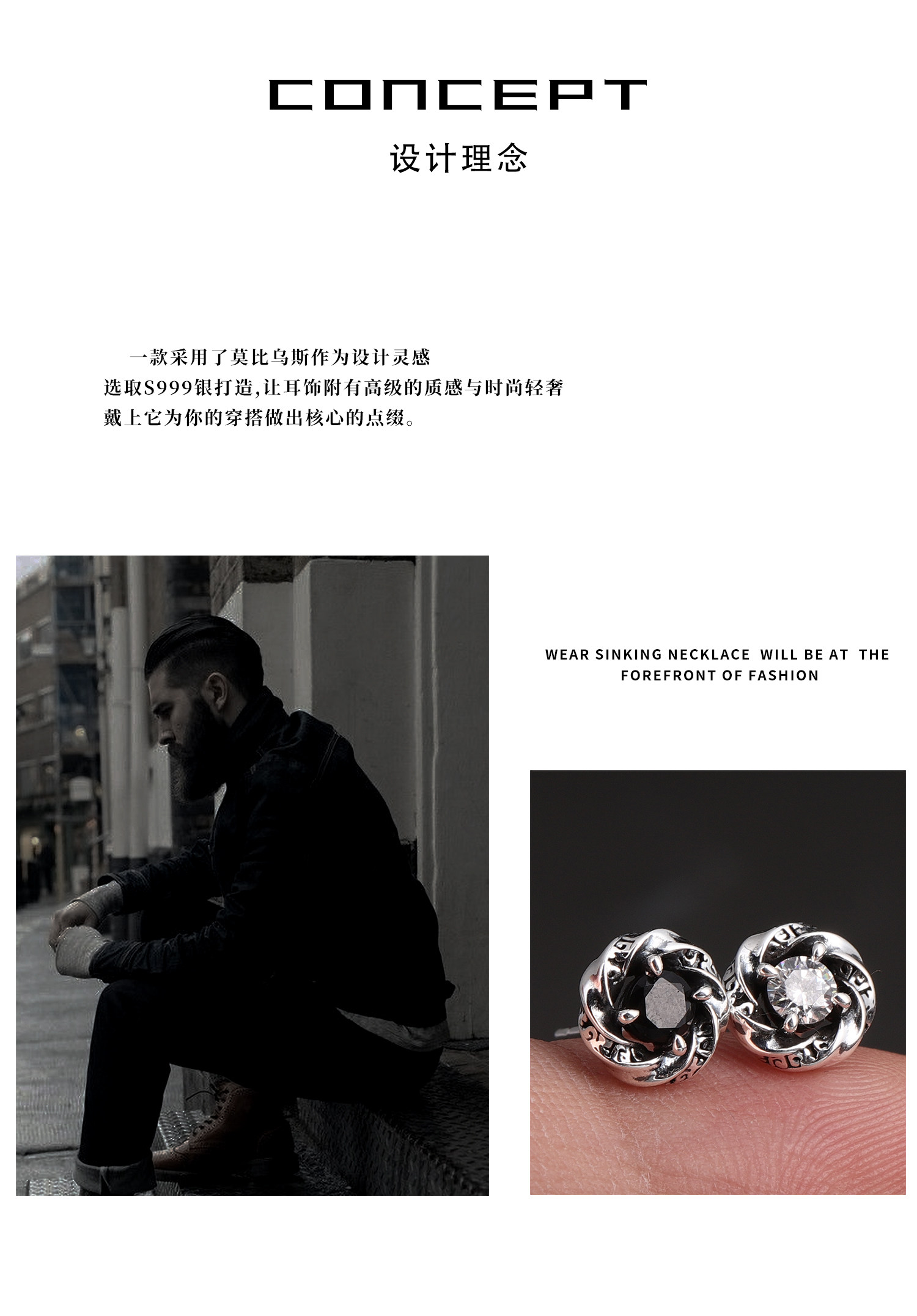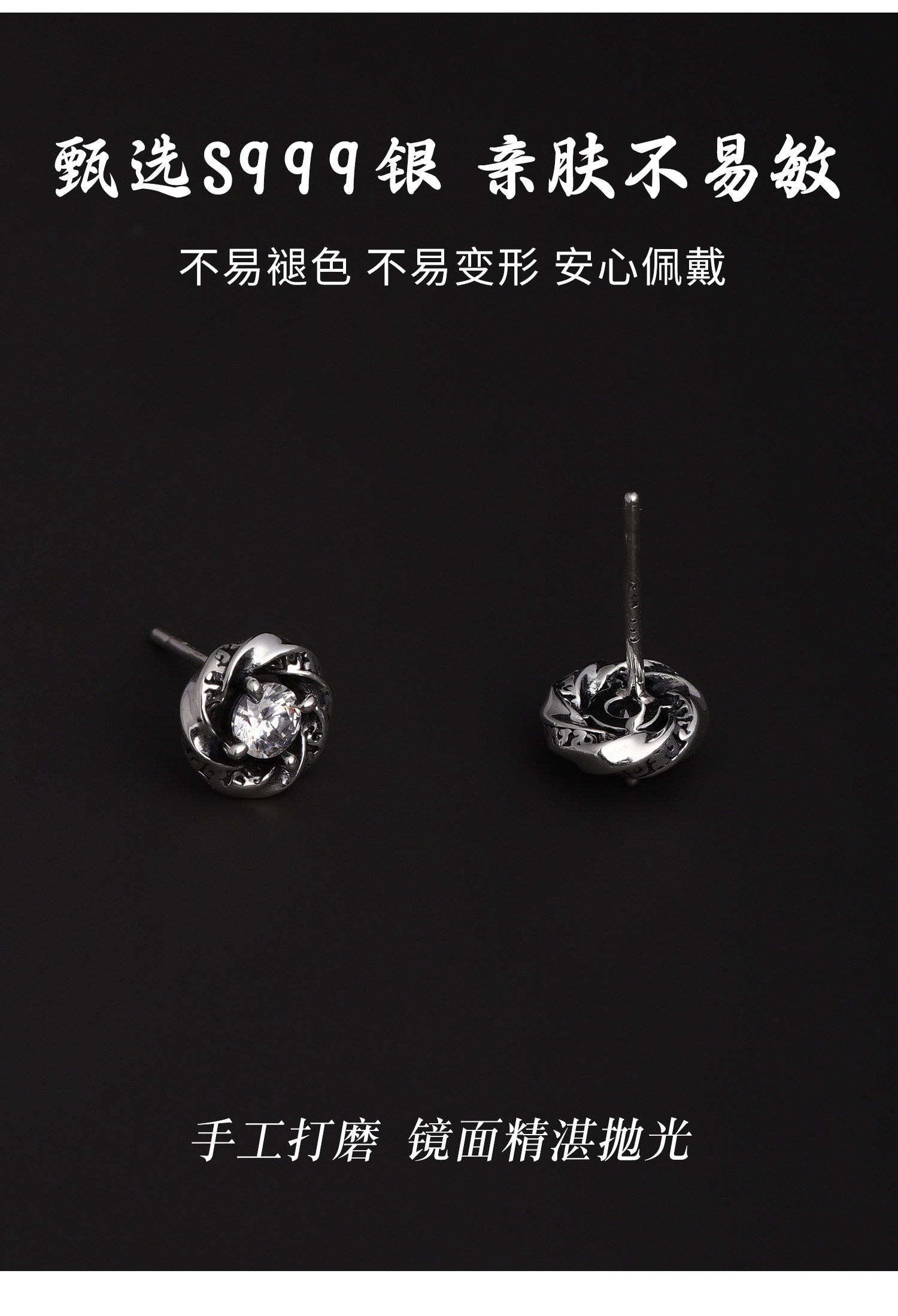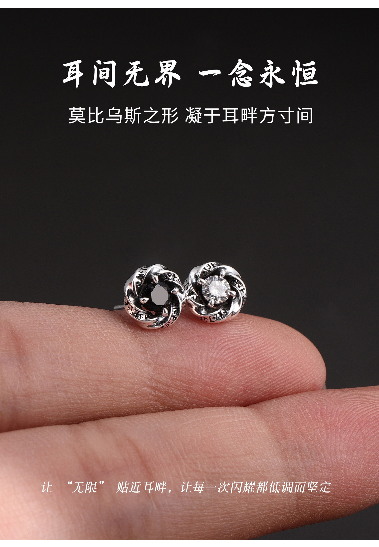 999 Pure Silver Mobius Earrings for Men, Trendy, High-End, Elegant Earrings, Versatile, Small and Exquisite Earrings for Women