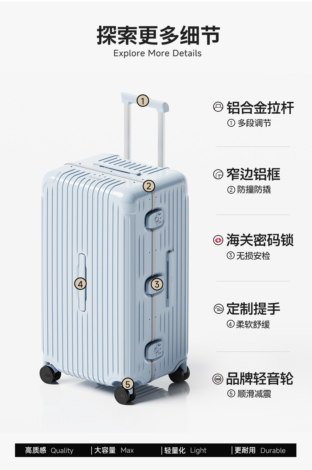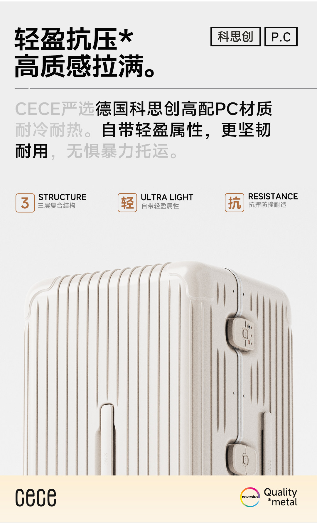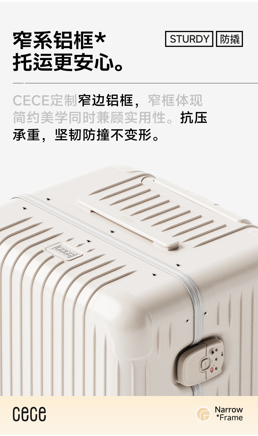 [Normal Delivery during the Spring Festival] Cece2026 New Aluminum Frame Suitcase for Women, Large Capacity, Thickened Trolley Travel Suitcase