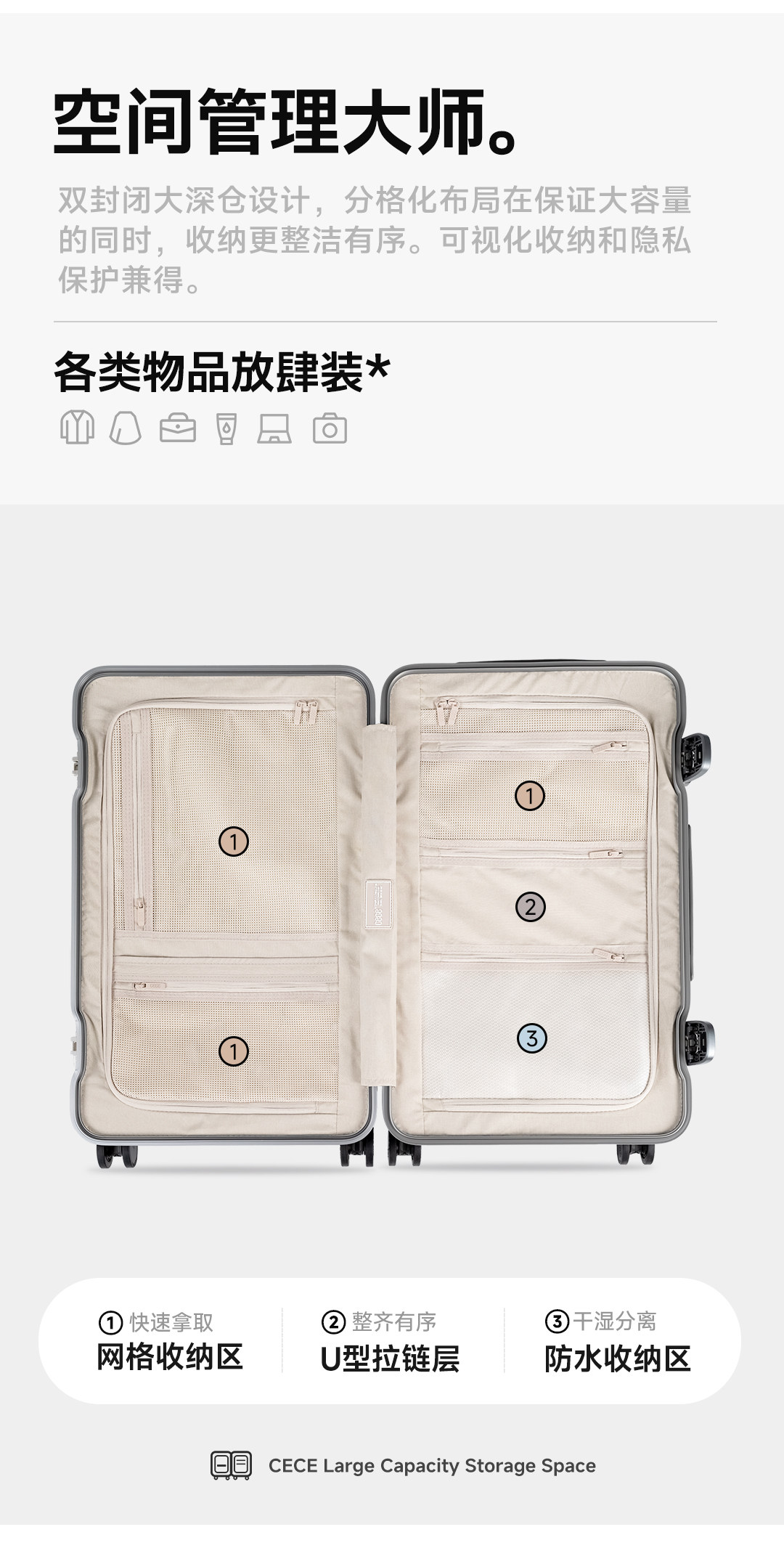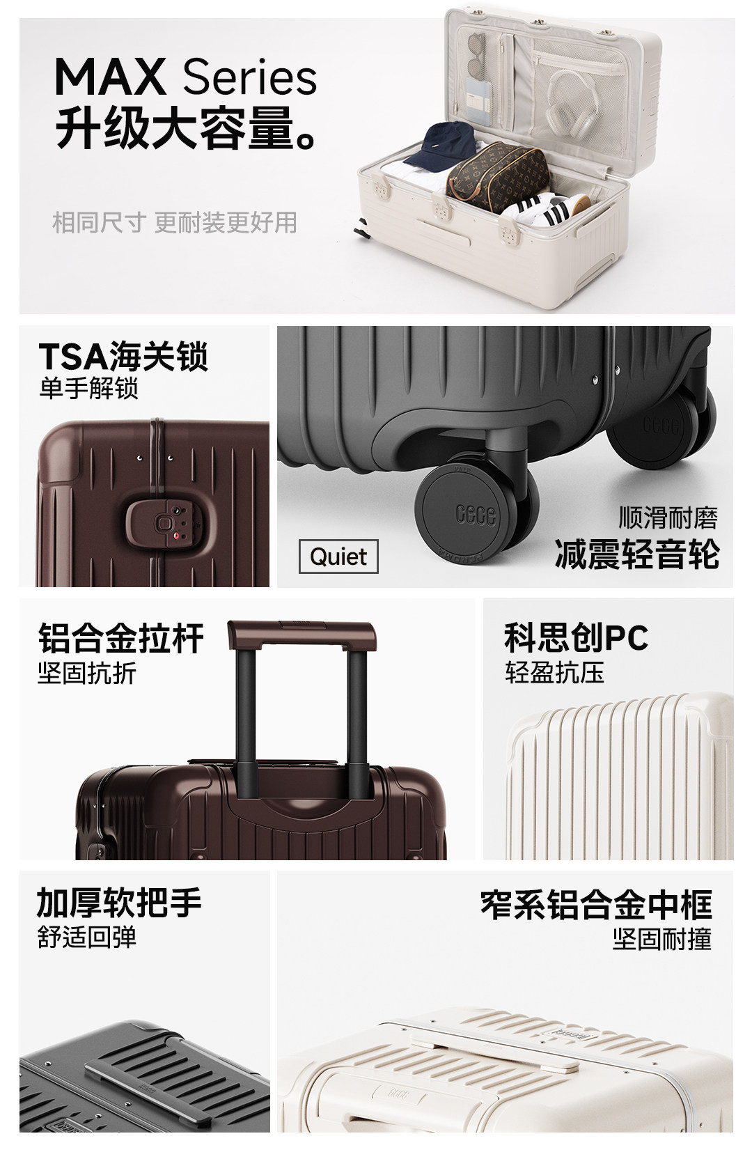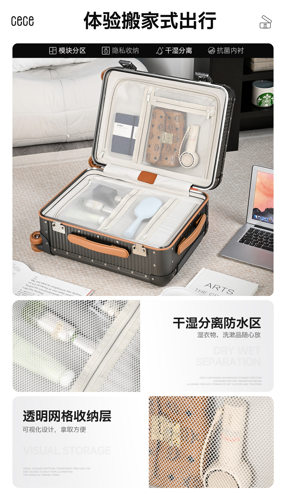 [Normal Delivery during the Spring Festival] Cece2026 New Aluminum Frame Suitcase for Women, Large Capacity, Thickened Trolley Travel Suitcase