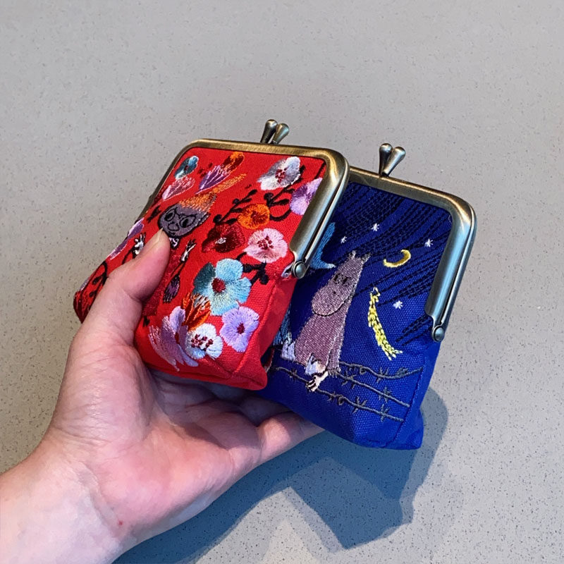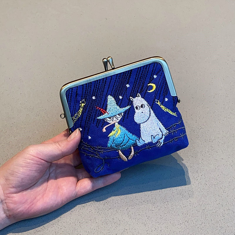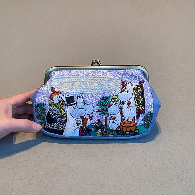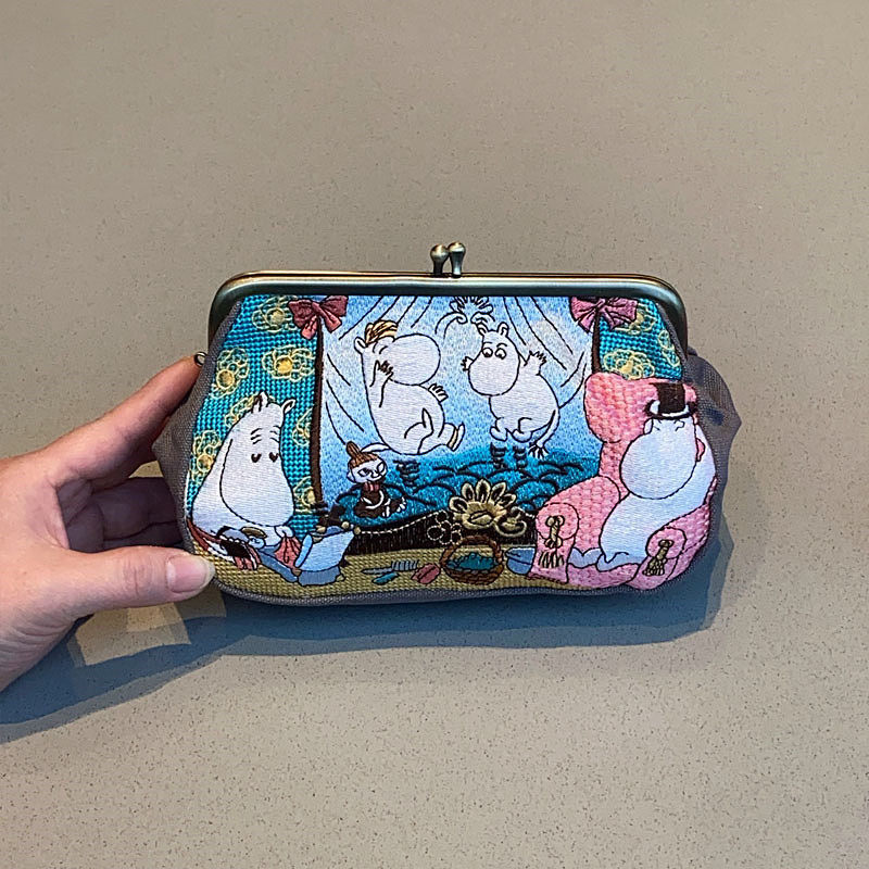 Japanese-Style Cartoon Moomin Ami Embroidered Clutch Bag Portable Handbag Coin Purse Key Cute Clip Bag Clutch Bag