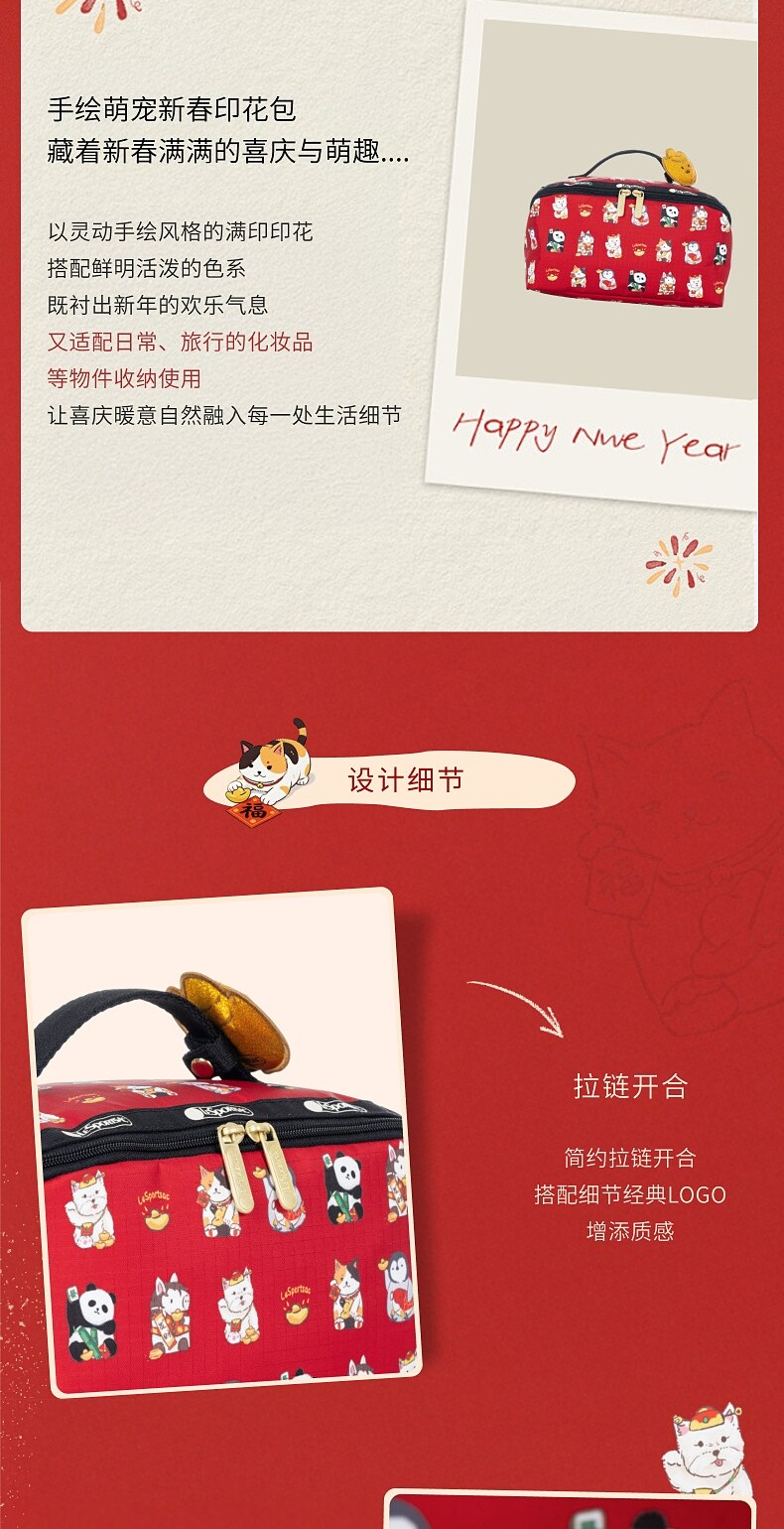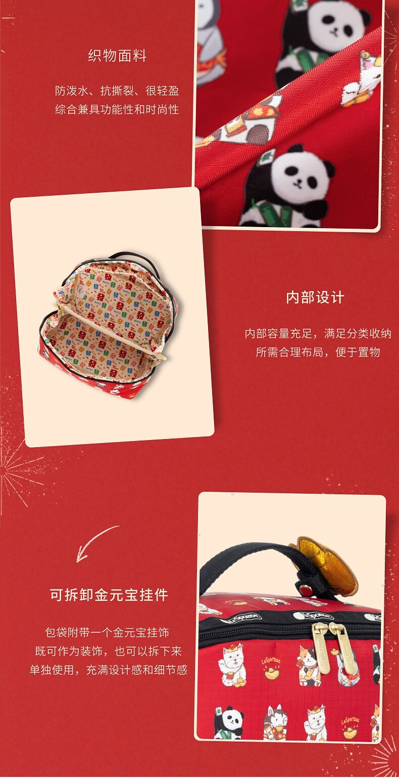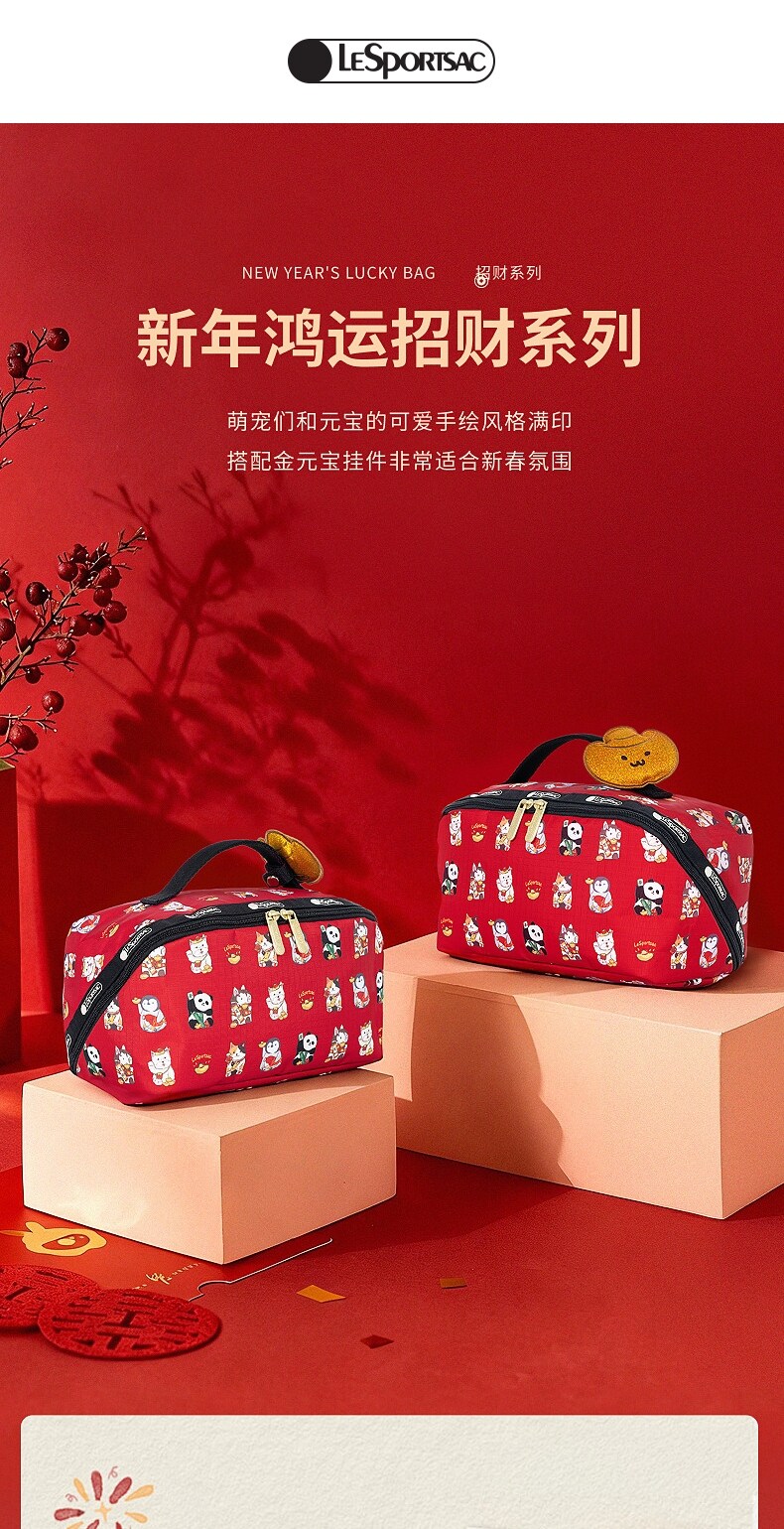 Lesportsac New Year's Good Luck and Wealth Gift Red Bag Gold Ingot Makeup Storage Clutch Bag