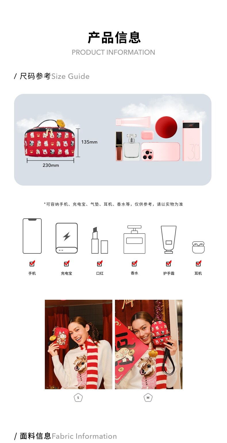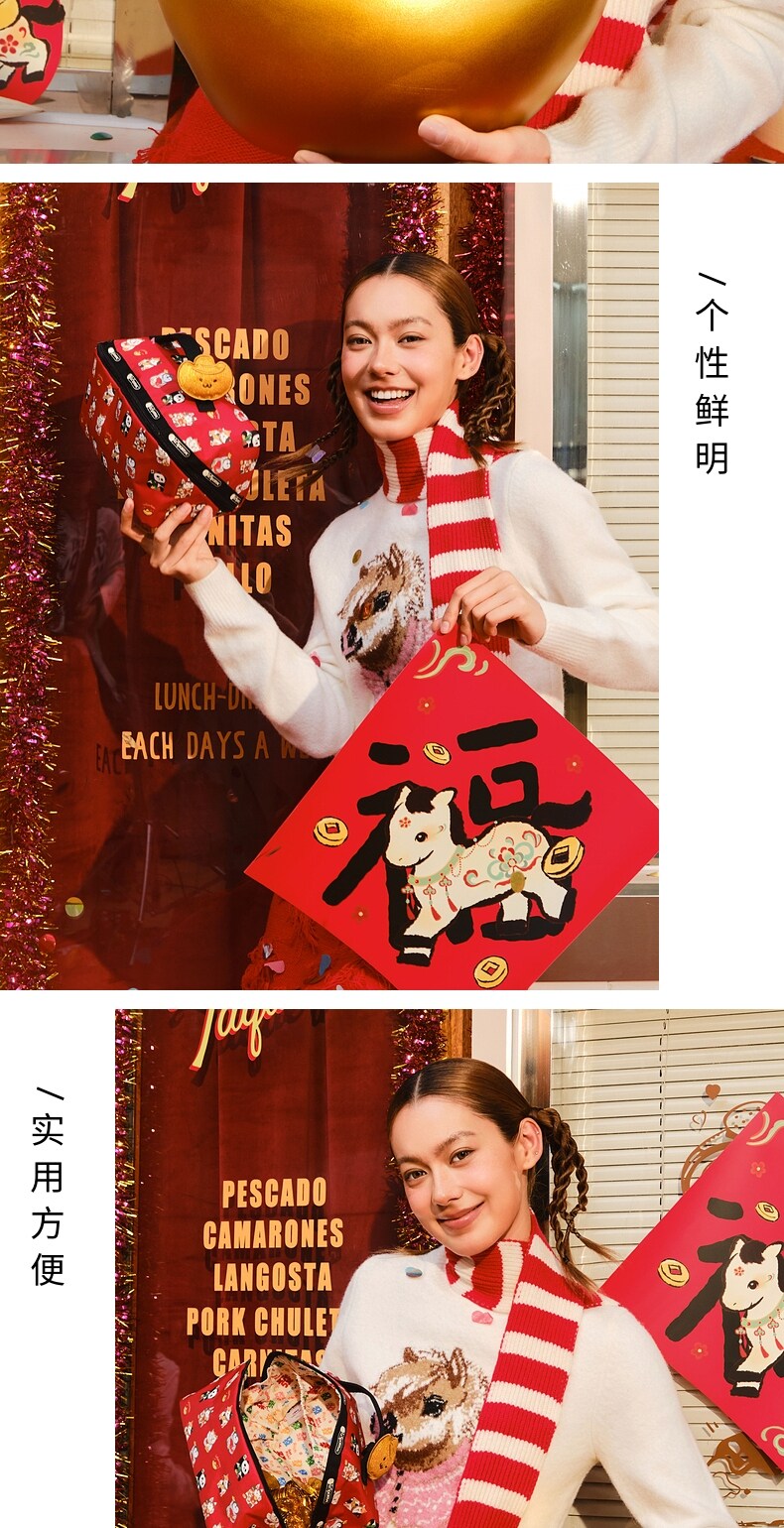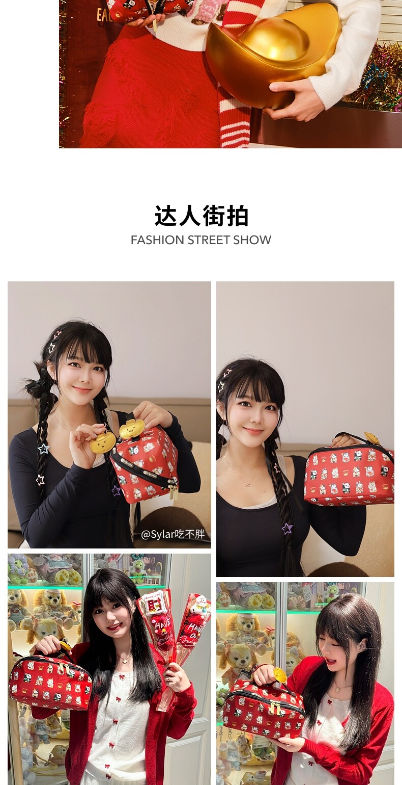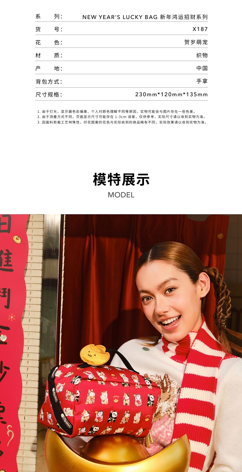 Lesportsac New Year's Good Luck and Wealth Gift Red Bag Gold Ingot Makeup Storage Clutch Bag