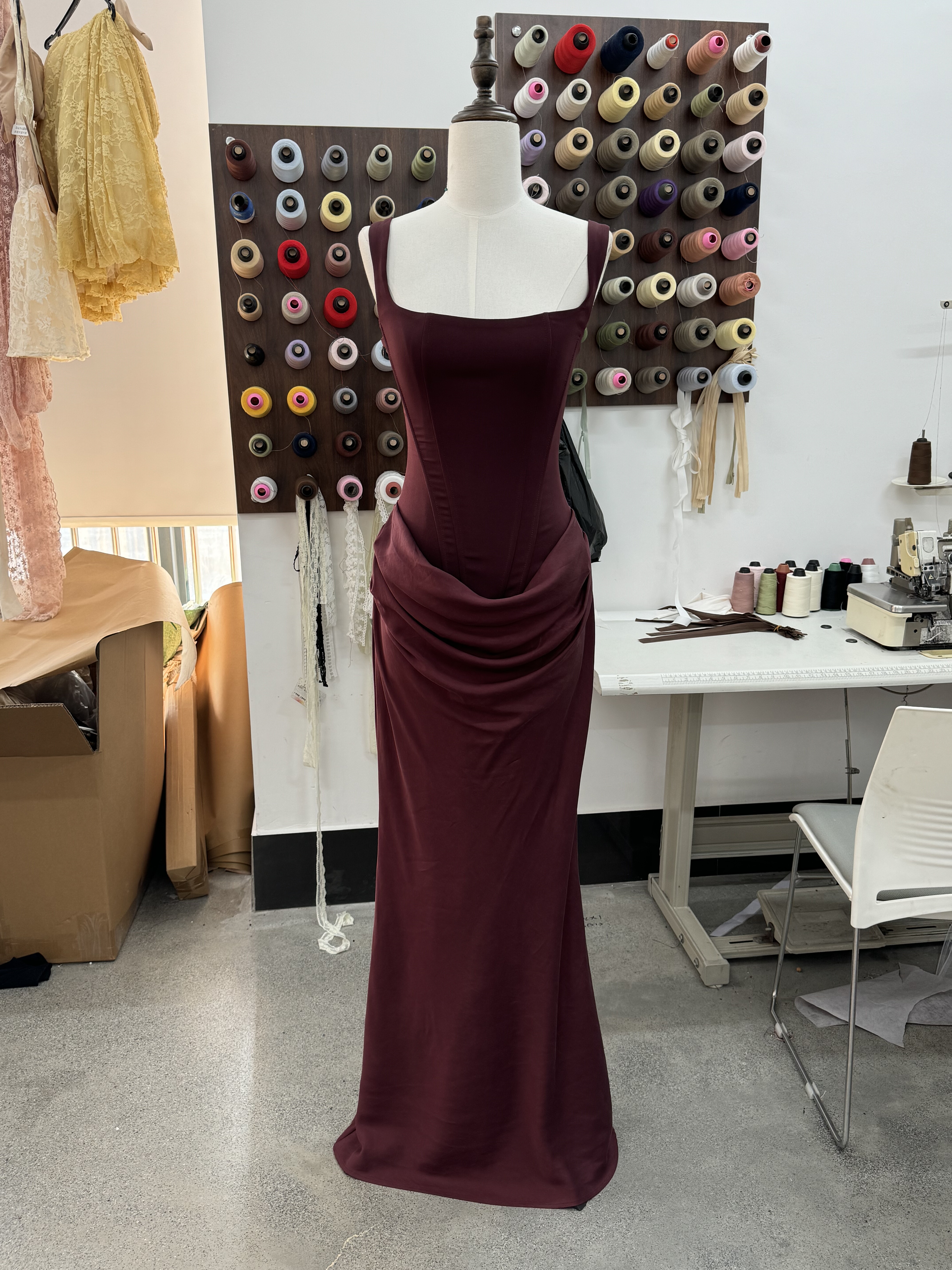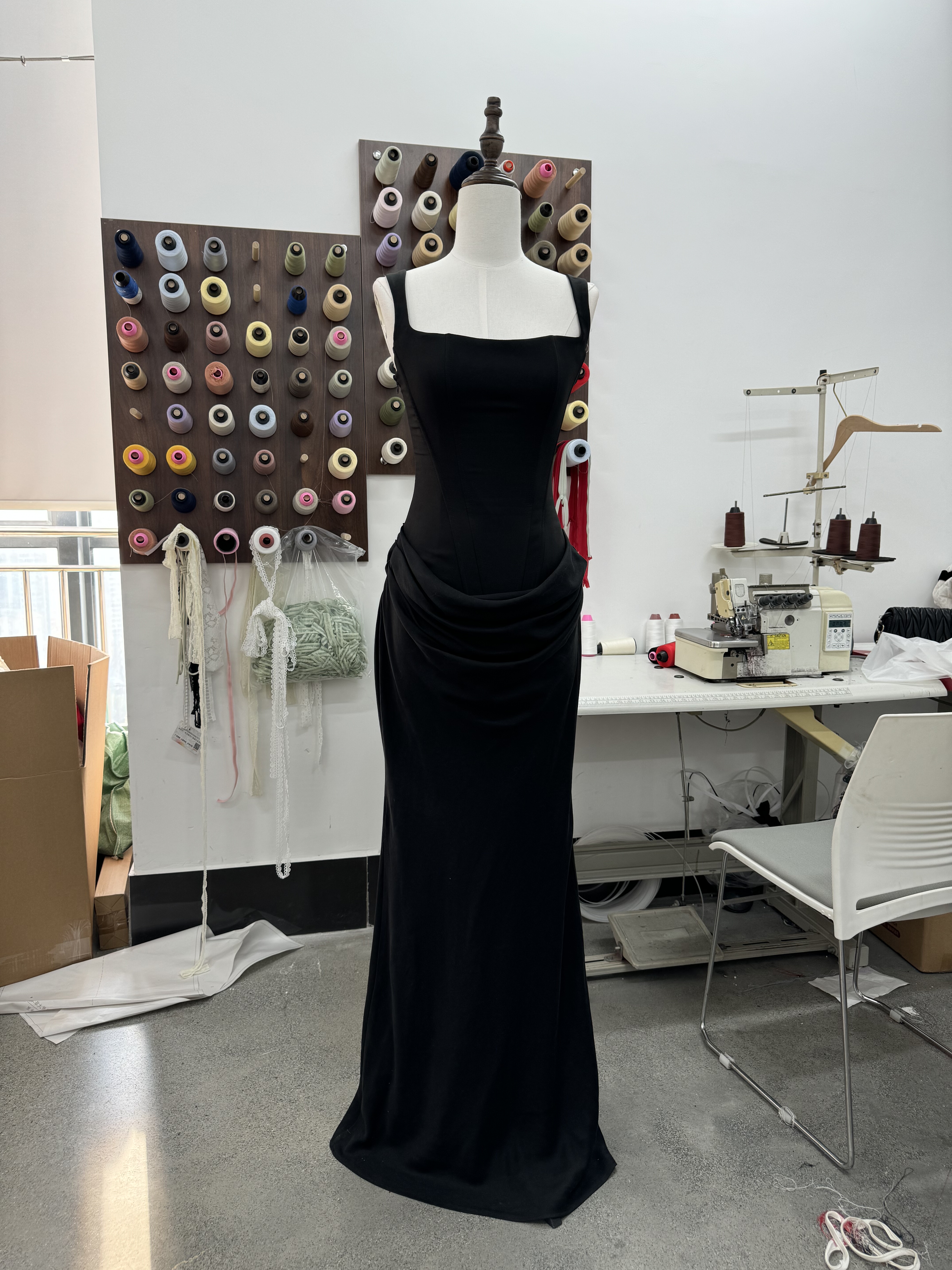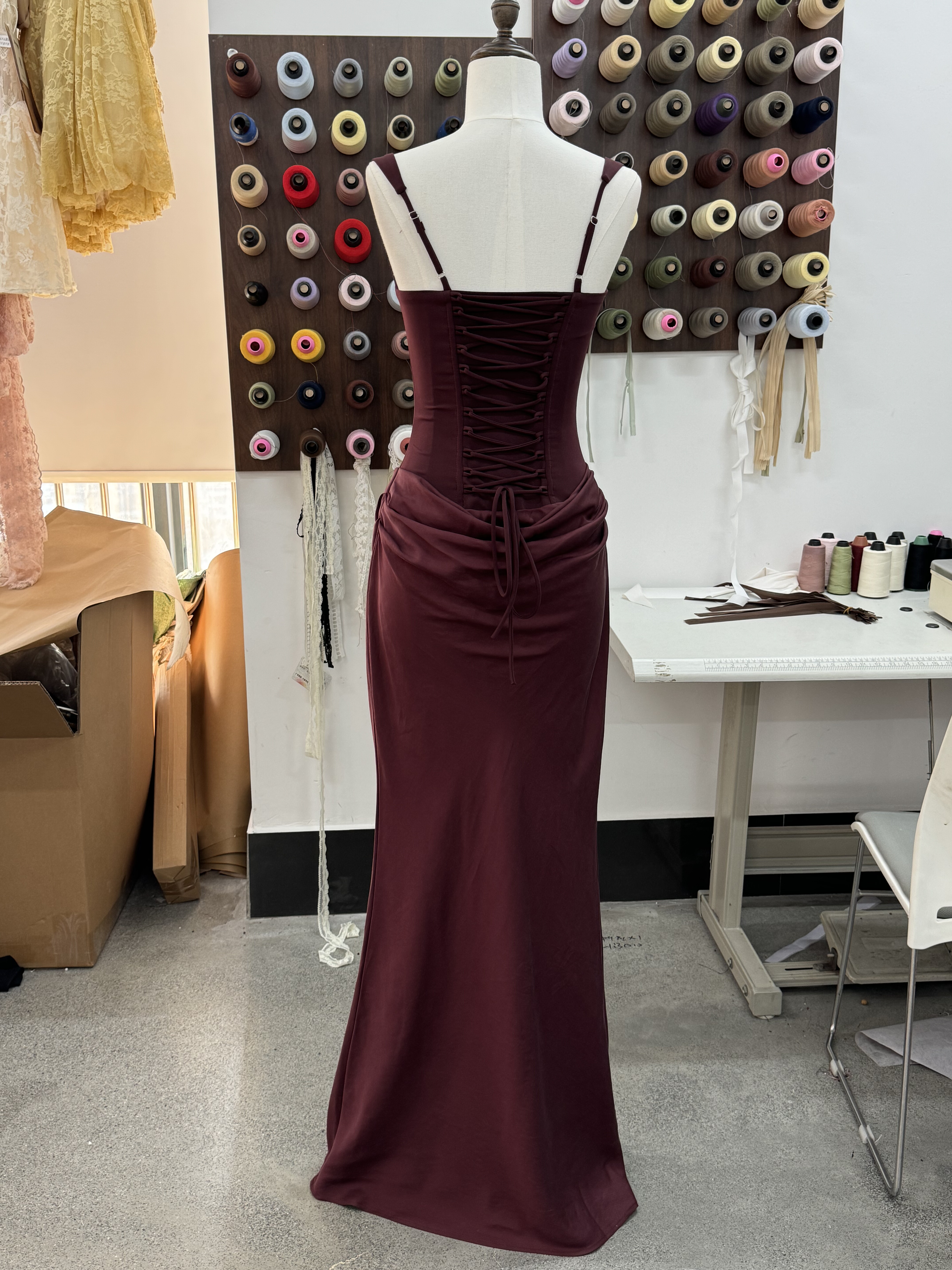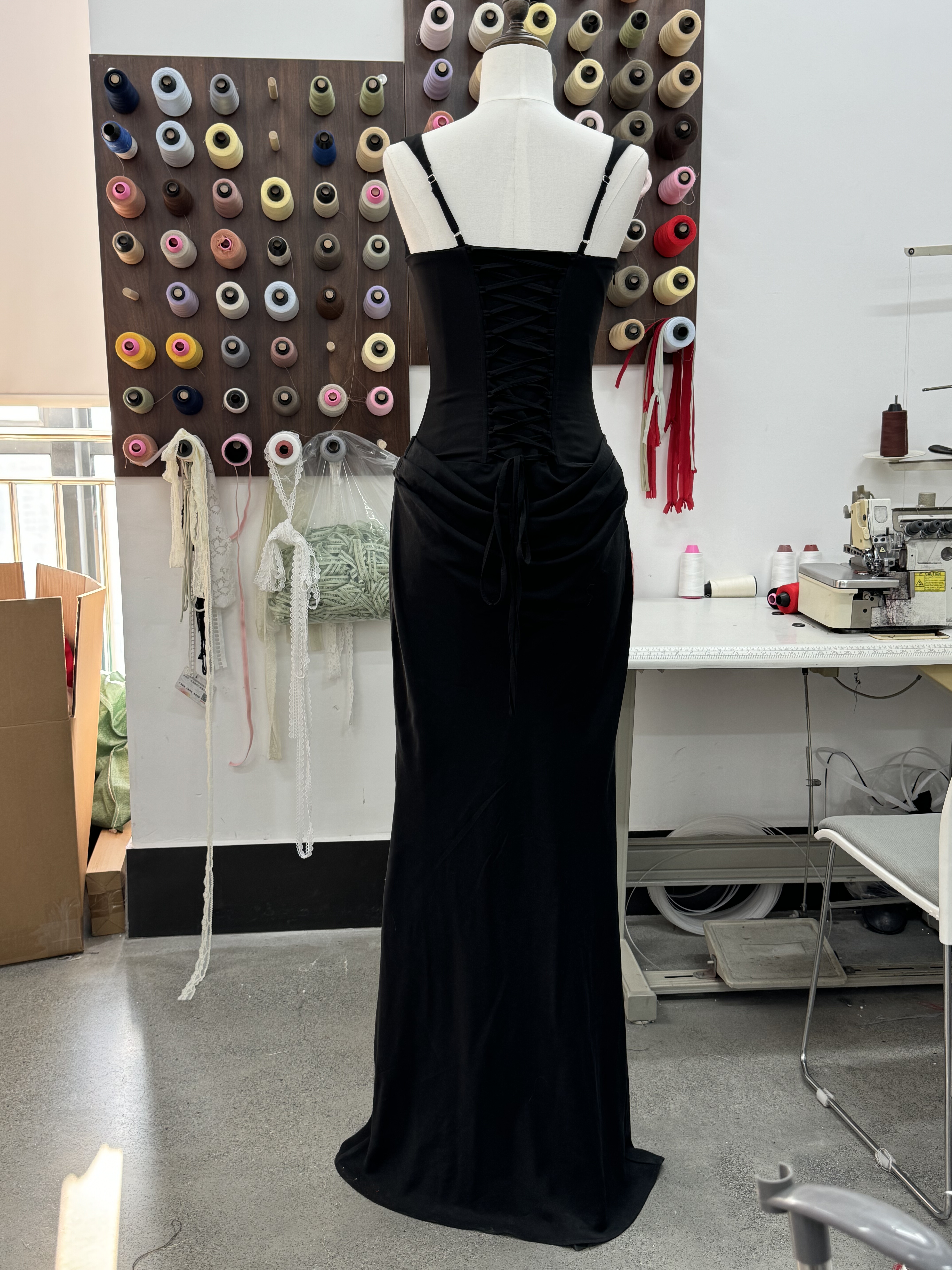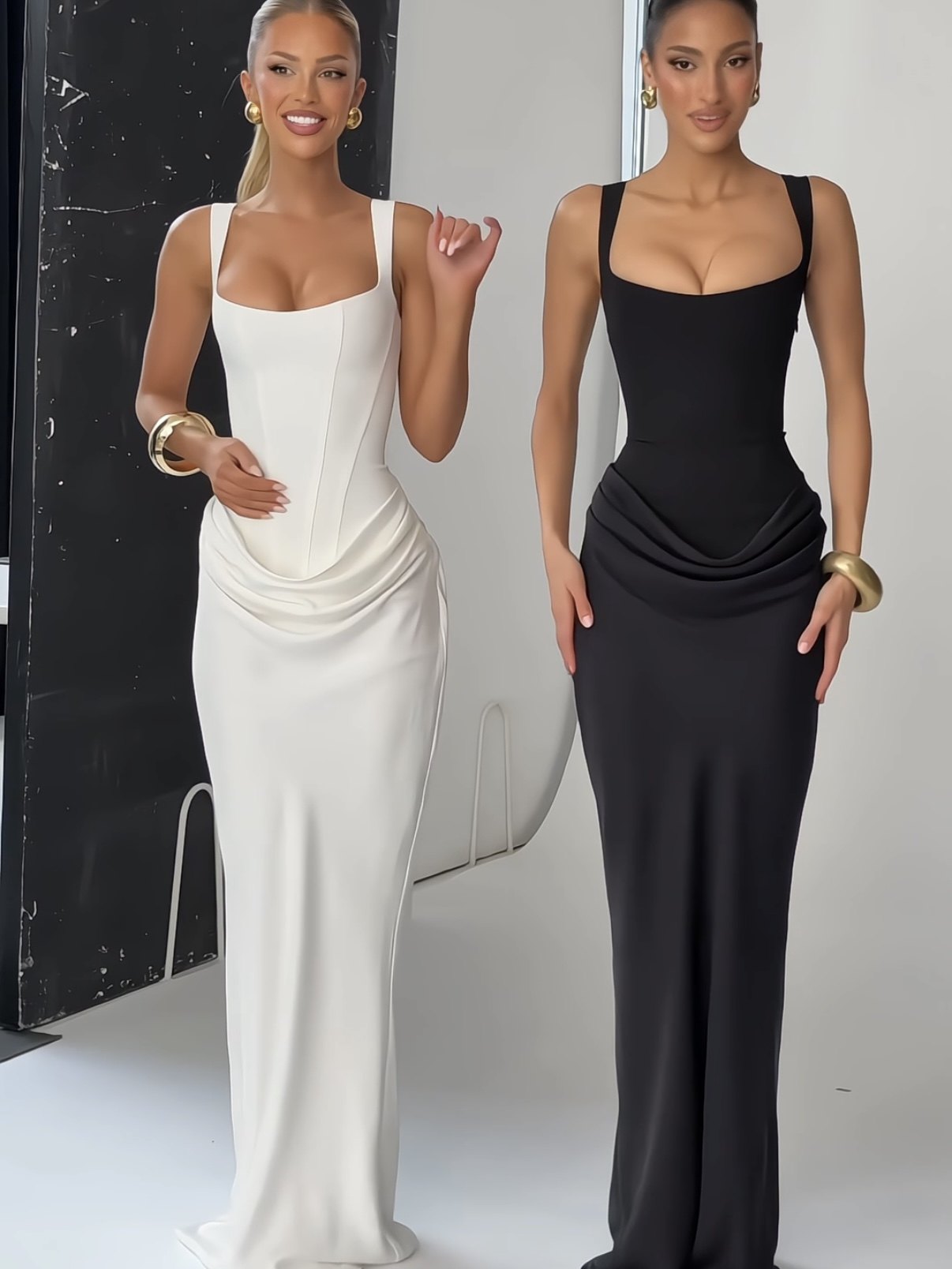 Acuda French-Style Elegant Slim-Fit Spaghetti Strap Dress for Women, Mature and Figure-Flattering, Waist-Cinching, Body-Hugging Long Dress for Banquets and Formal Events