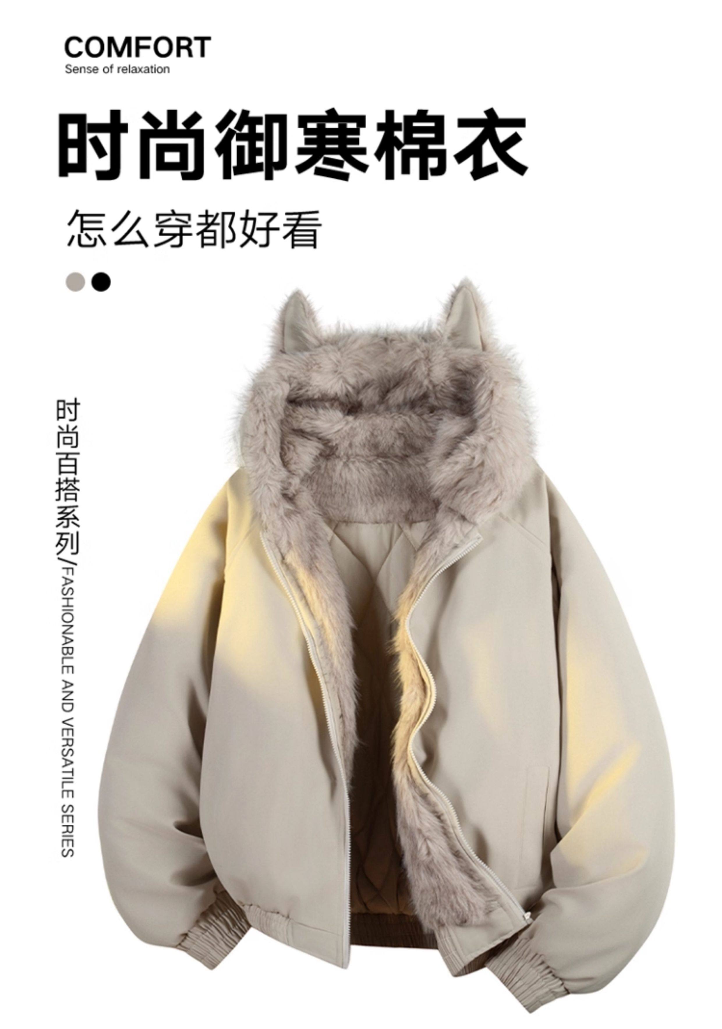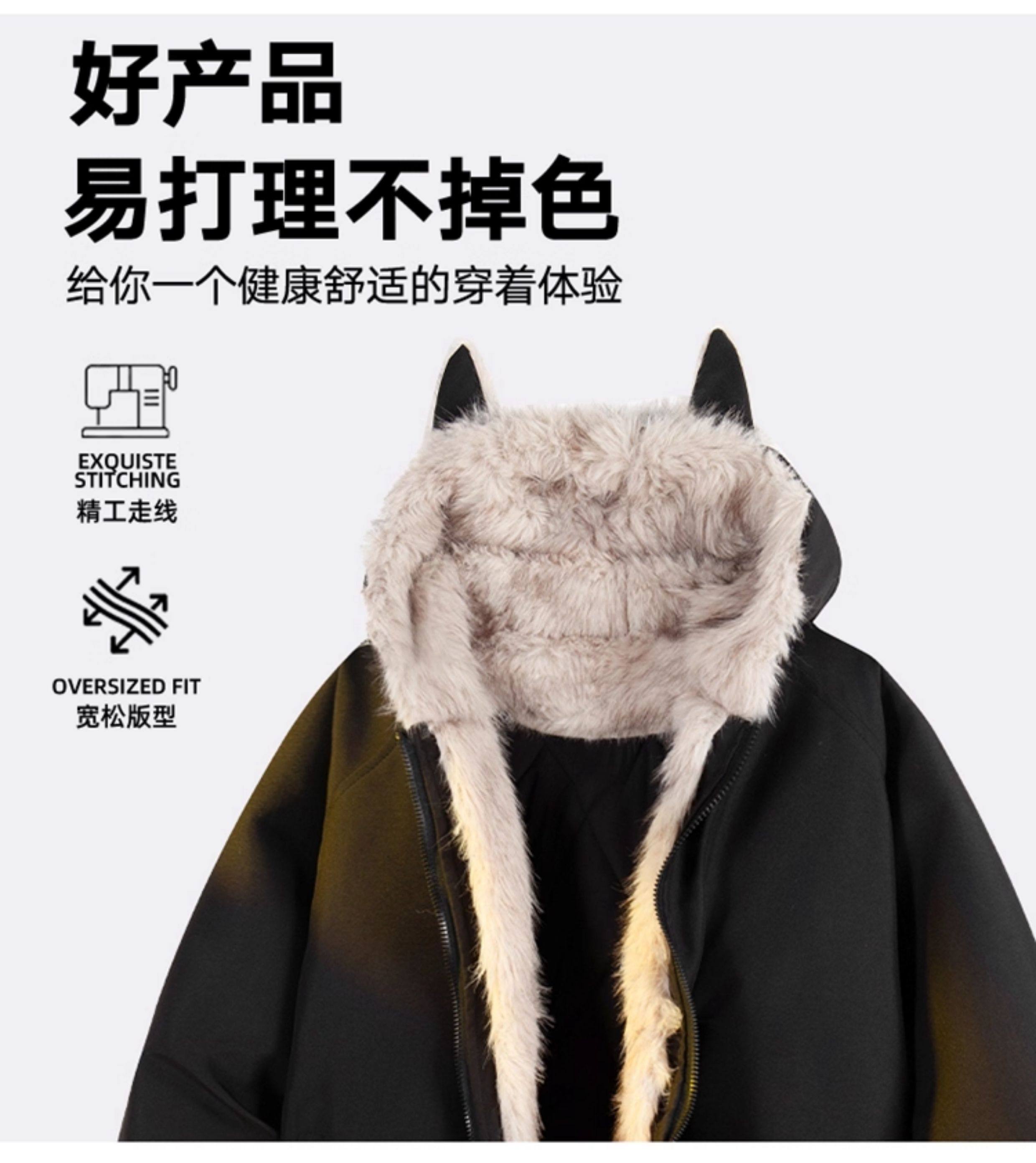 Wassup Issue Cat Ear Mountain Eagle Jacket down Cotton Coat Men's Winter Thickened Warm Couple Cotton Clothing Women's