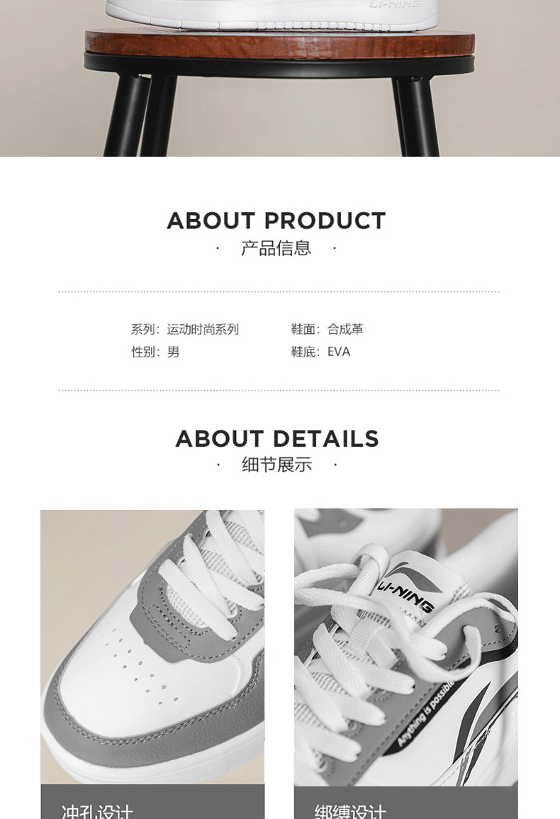 Li Ning Casual Shoes for Men, Autumn and Winter New Low-Top Men's Sneakers, Lightweight Soft-Soled Sports Shoes, Fashionable and Versatile White Shoes