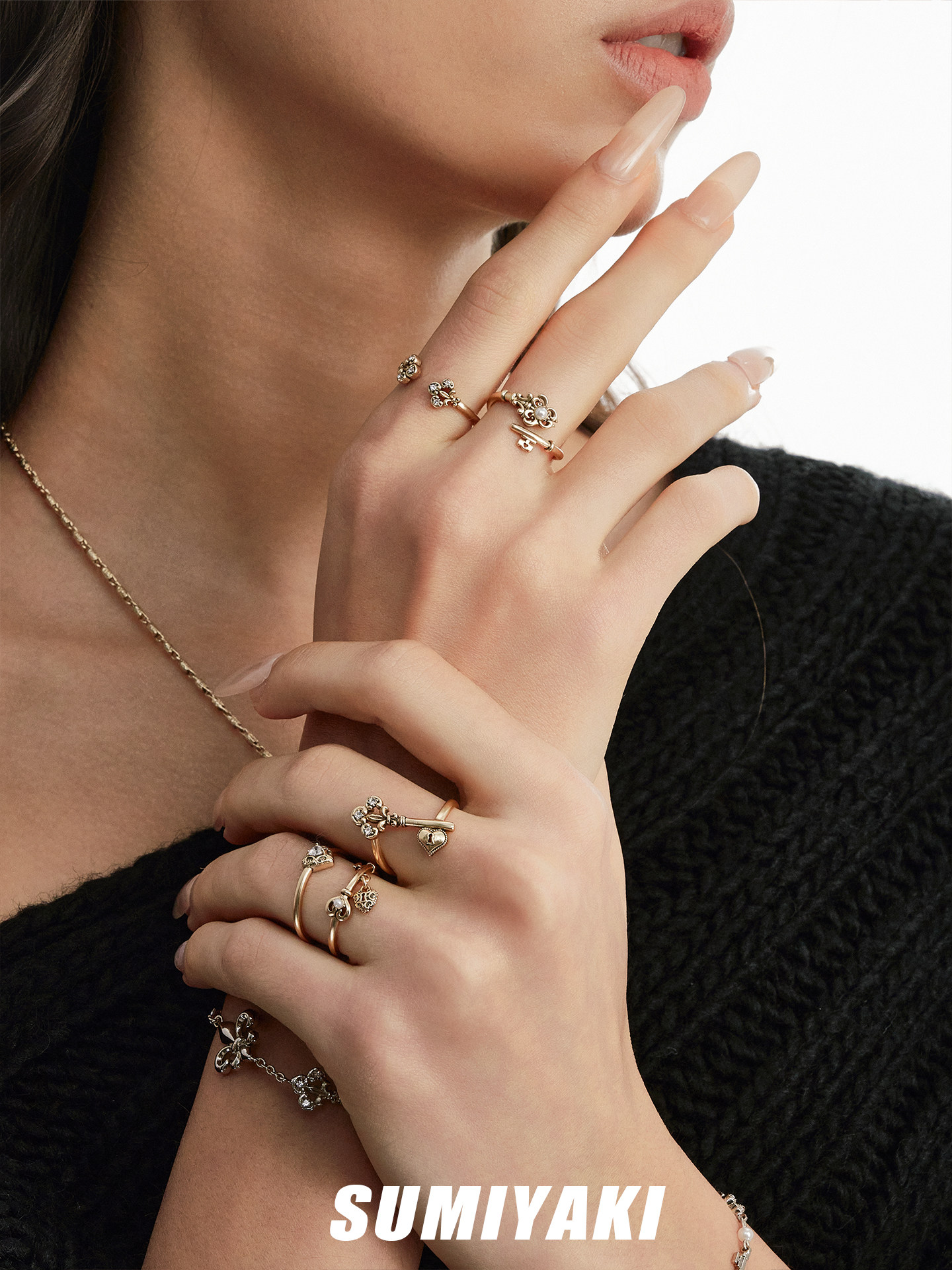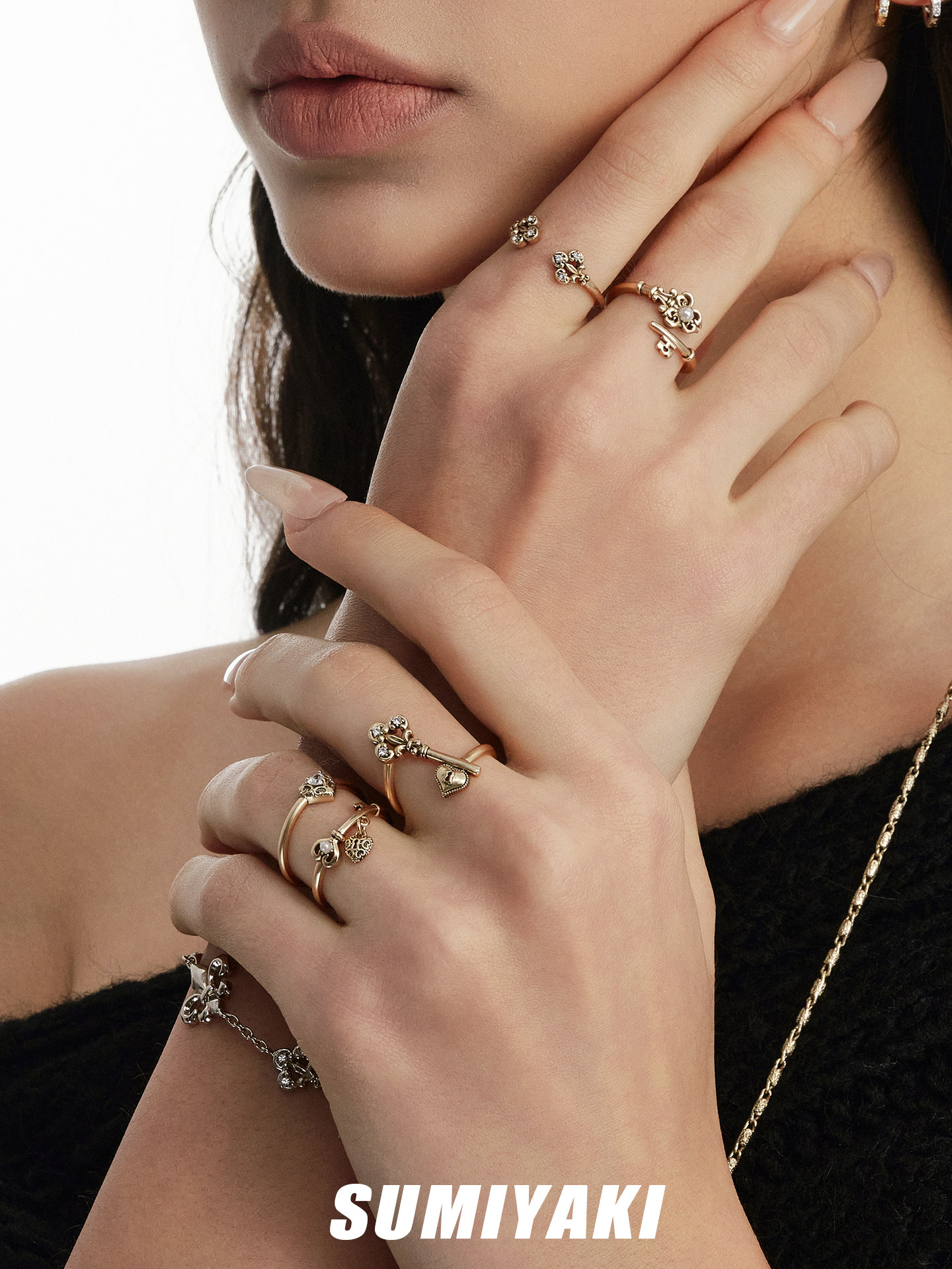 [on Sale at 00:00 on August 12] Sumiyaki Love Lock Series Key Light Luxury Vintage Ring Set for Women