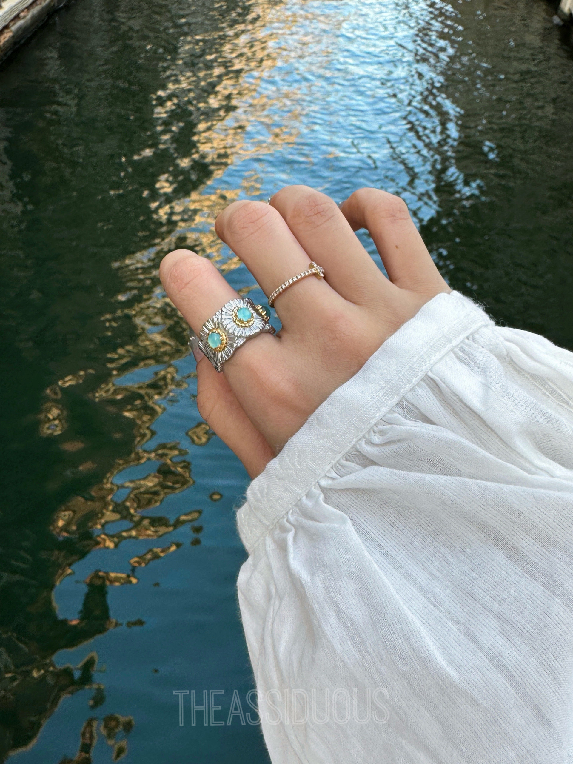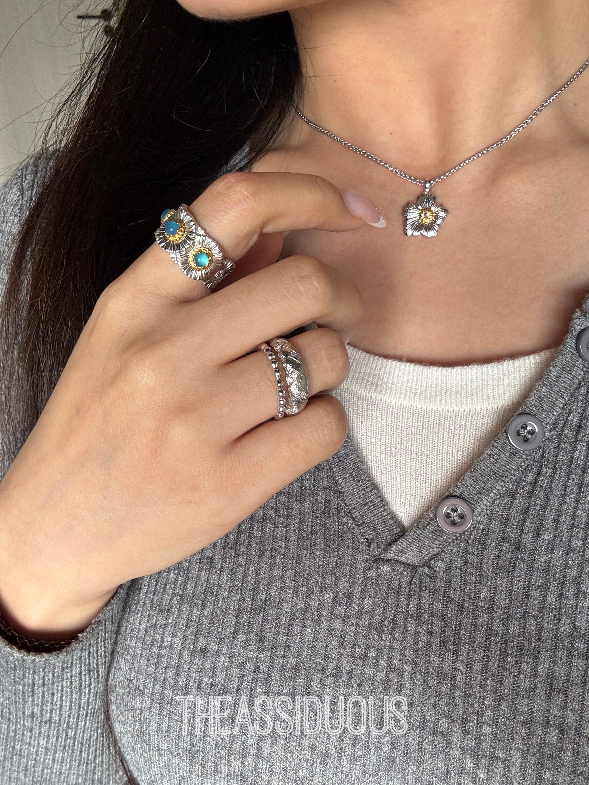 灵感来源自绽放的花朵,在金属上刻画出如花瓣纹理般的细腻线条,柔美又精致