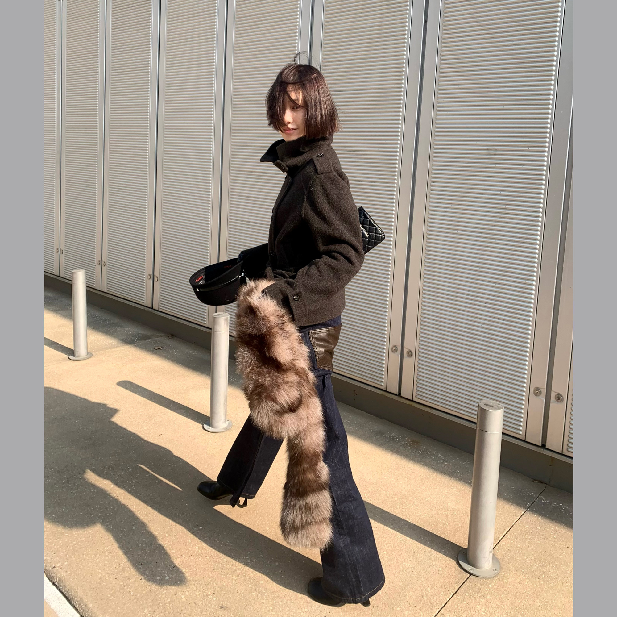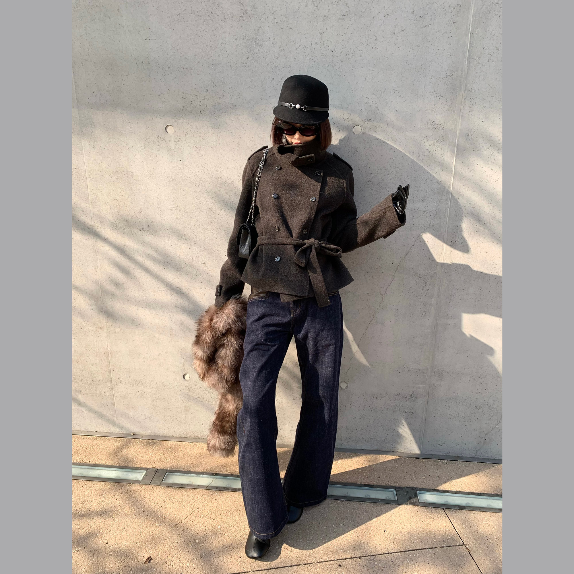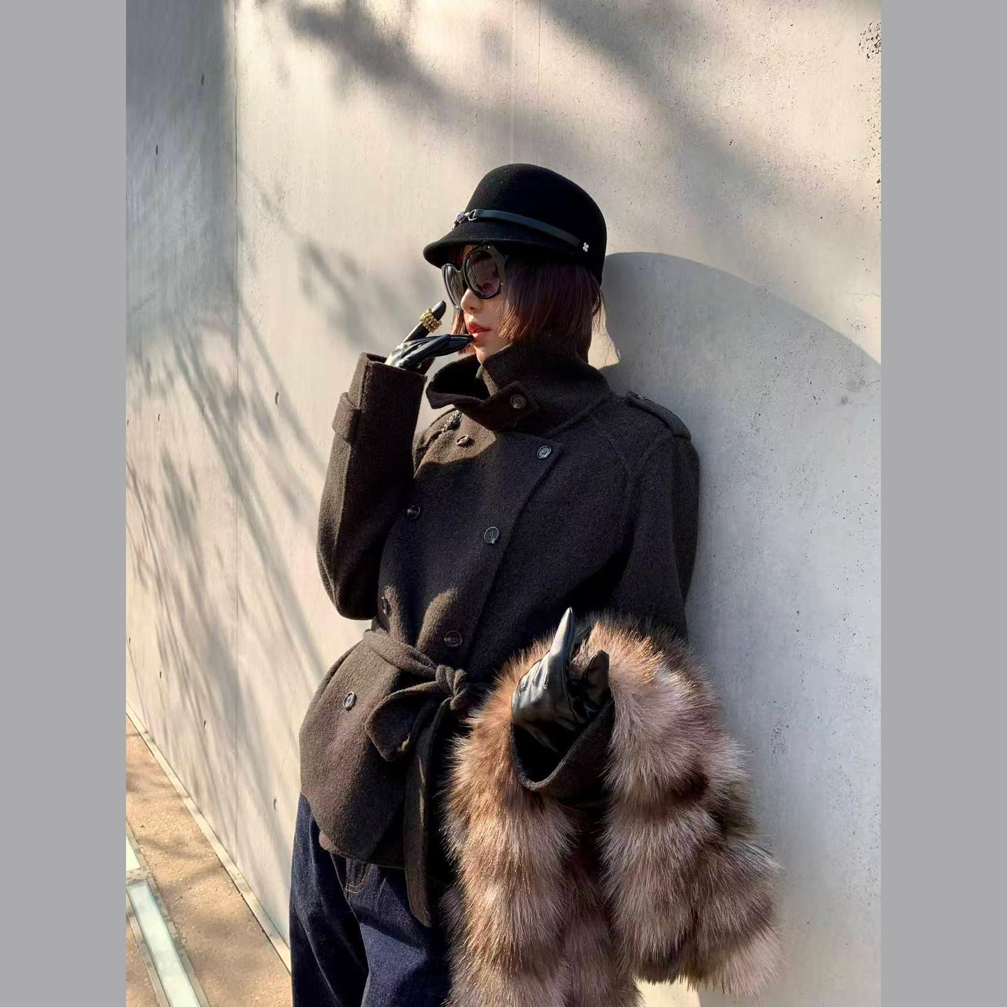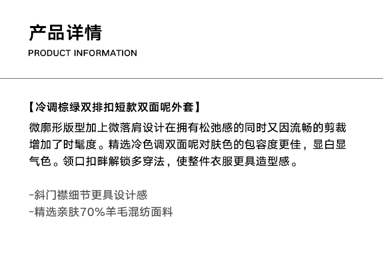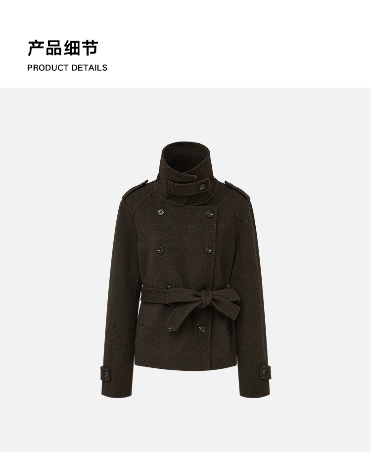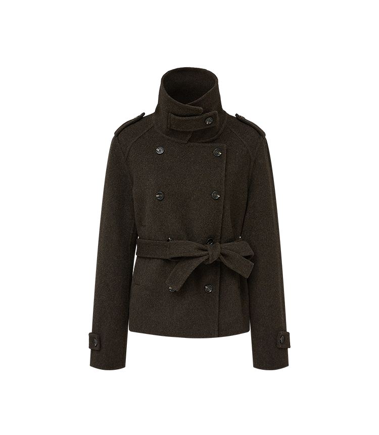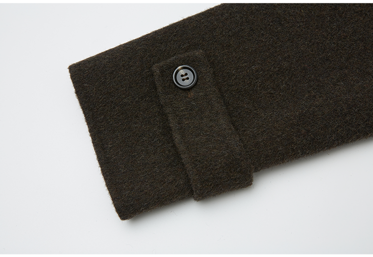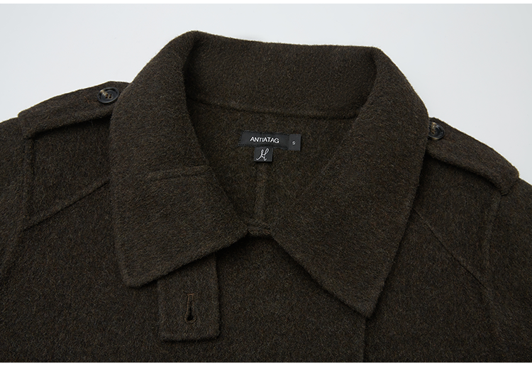 Antiatag Stand Collar Double-Breasted Cool-Toned Brown-Green Wool Blend Double-Sided Woolen Coat