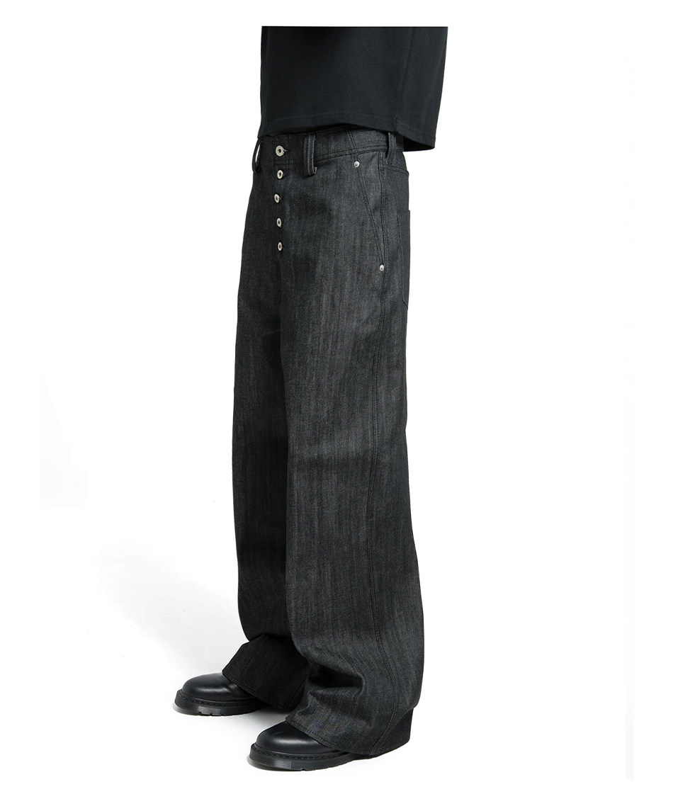 【Kanglong Alternative Version】Five-Button Raw Denim Black Curved Knife-Cut Pants, Loose Straight-Leg Jeans, 14oz