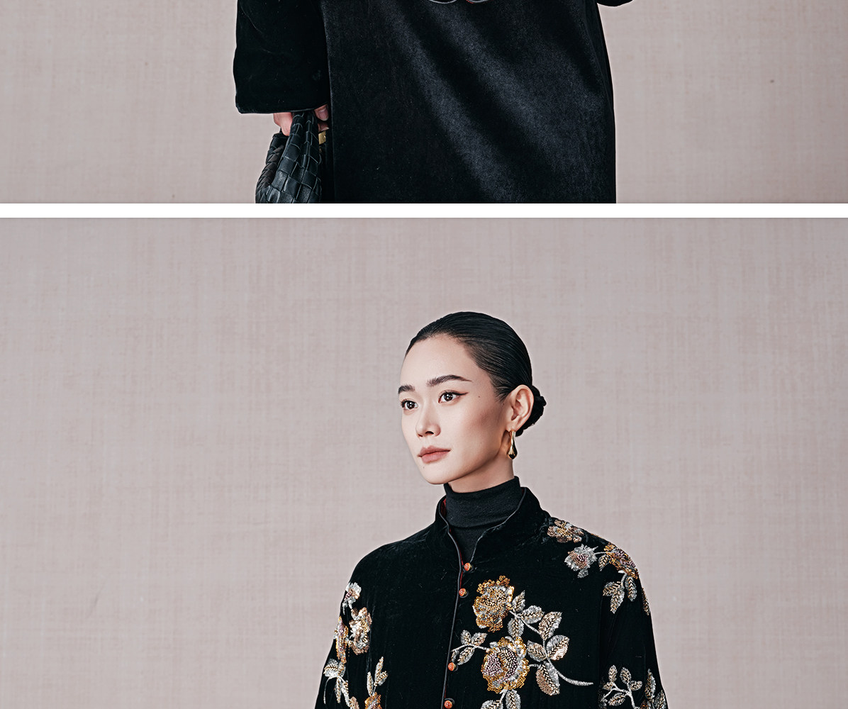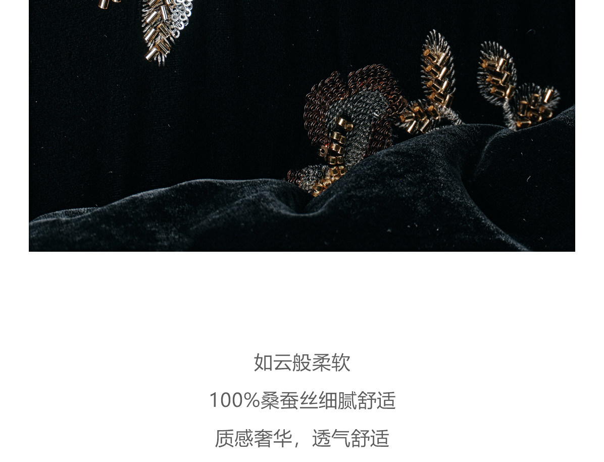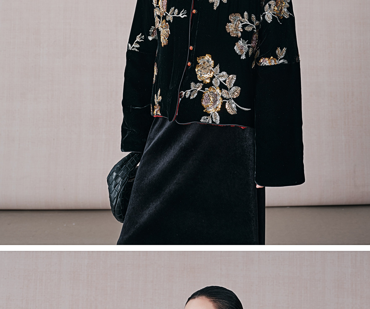 Annibycn Reversible Mulberry Silk Velvet New Chinese Style Cotton Coat for Women Winter National Style Beaded Embroidered Top