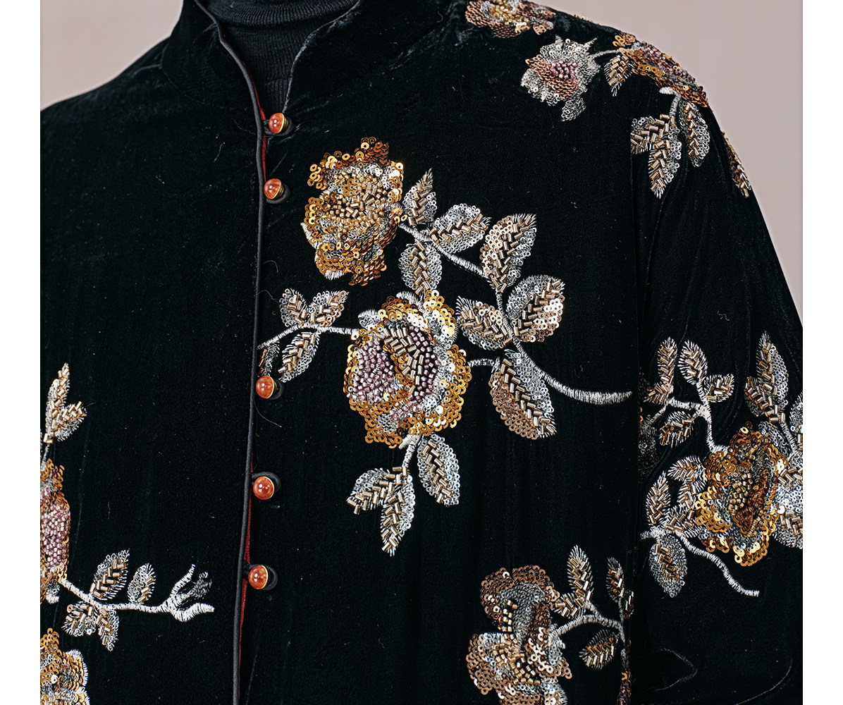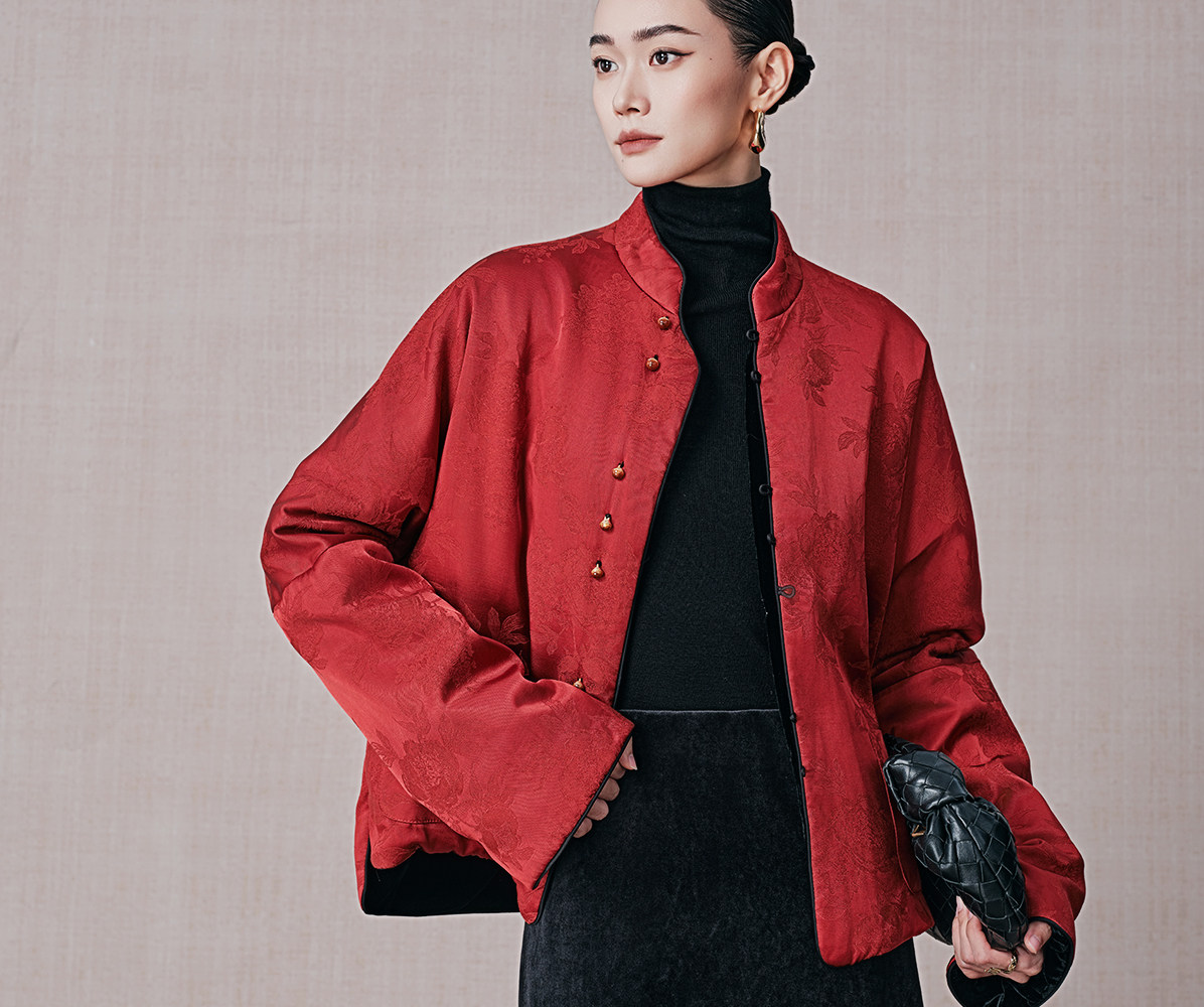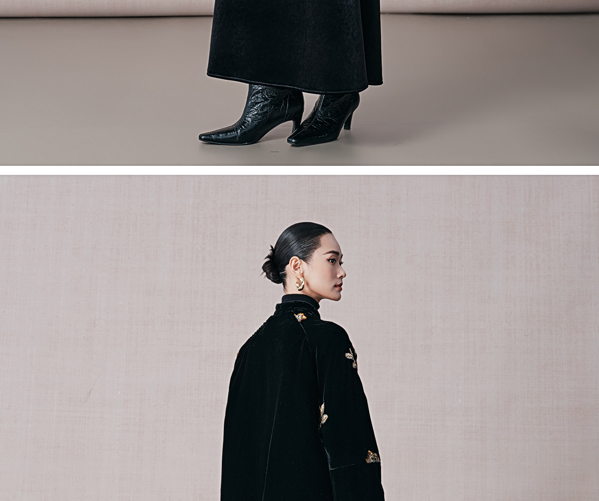Annibycn Reversible Mulberry Silk Velvet New Chinese Style Cotton Coat for Women Winter National Style Beaded Embroidered Top