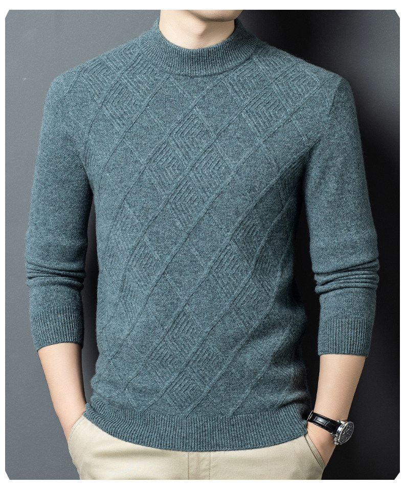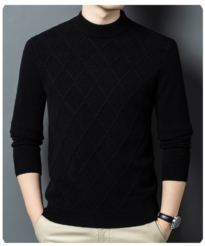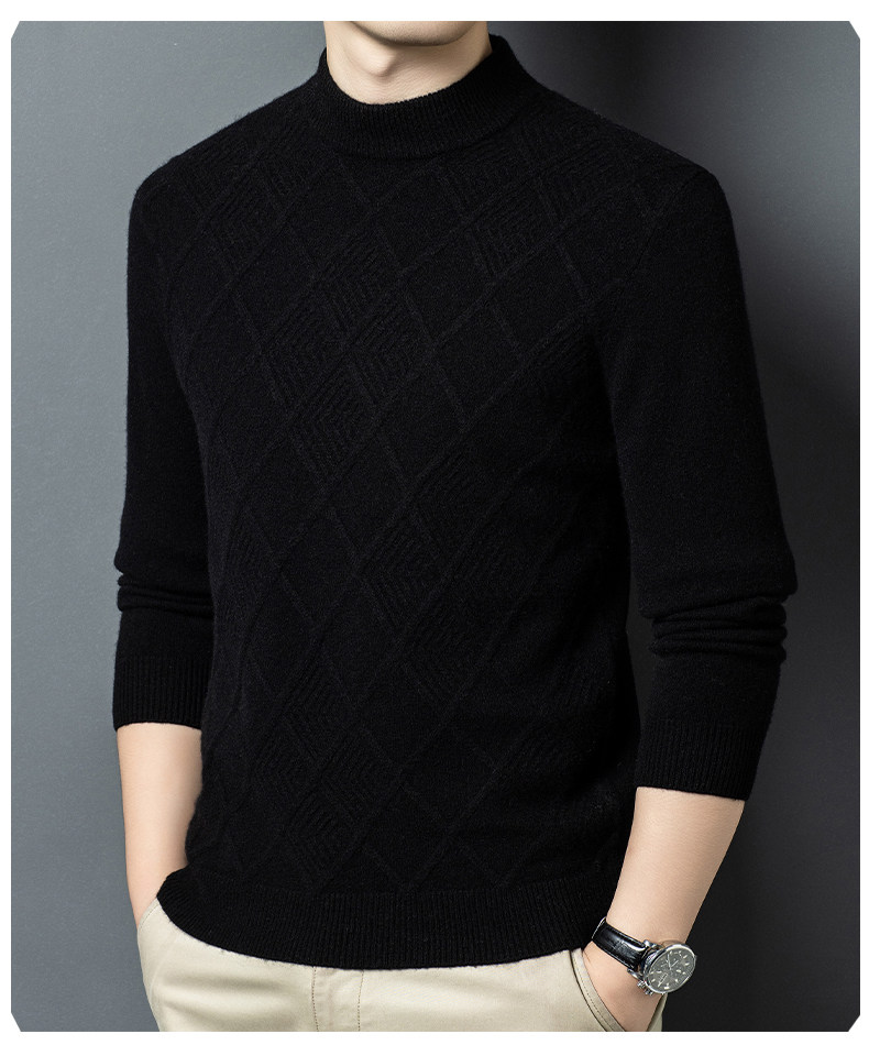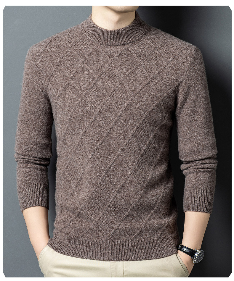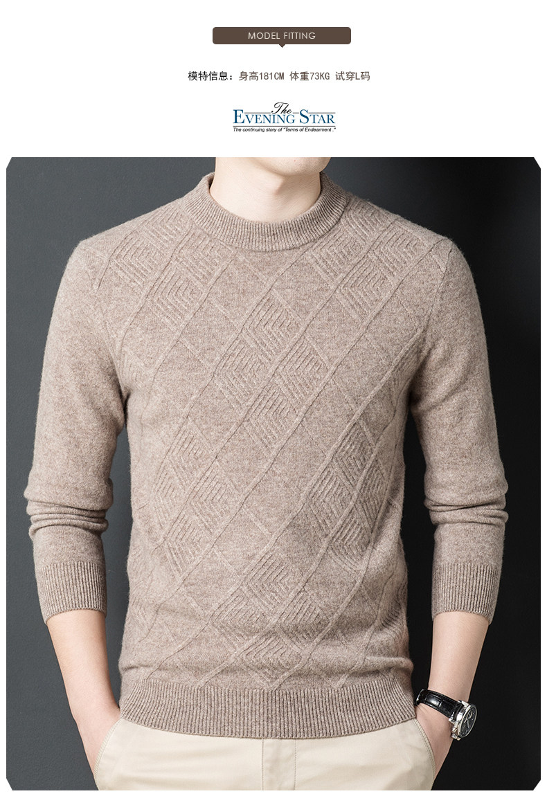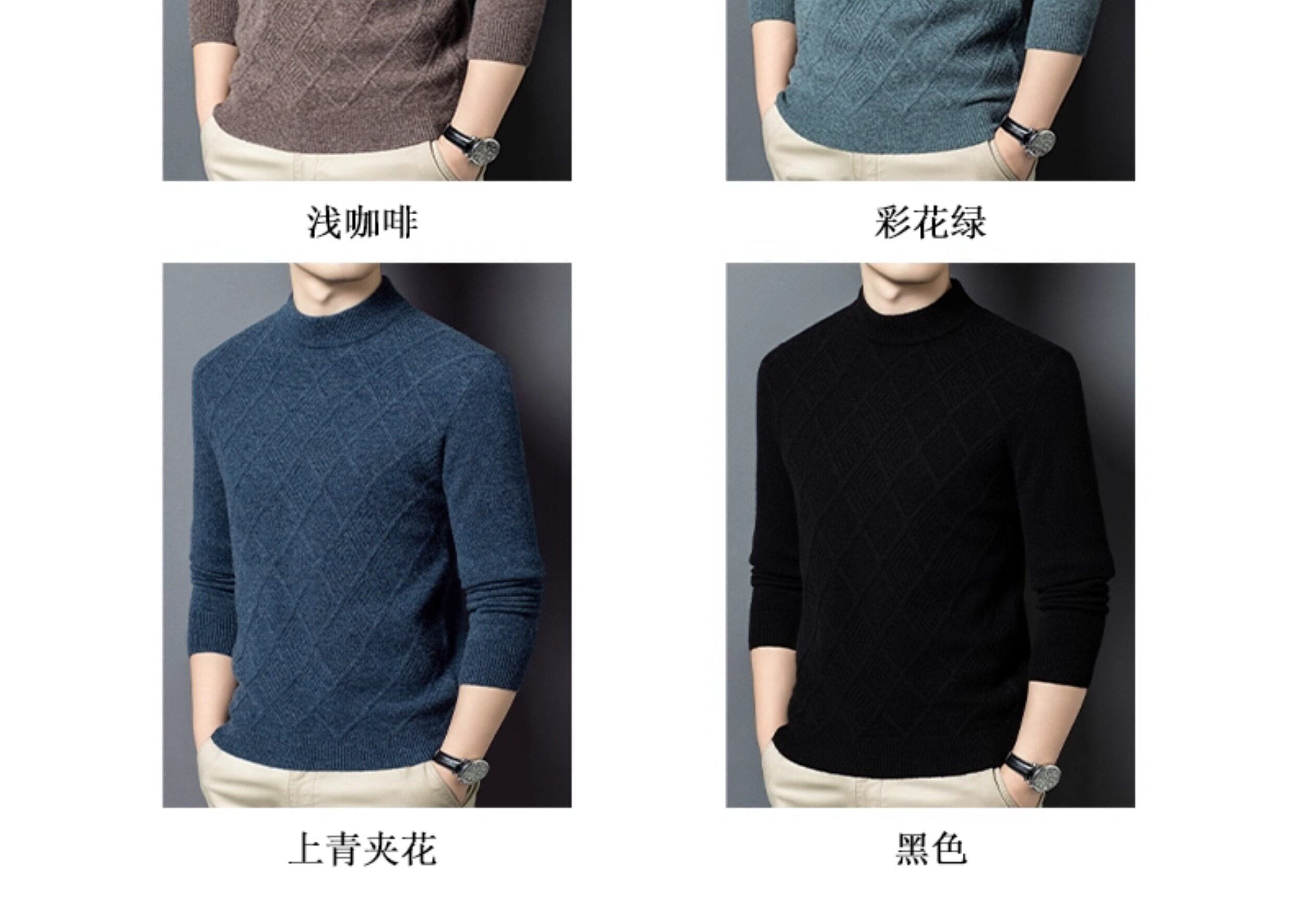 Hengyuanxiang 100% Cashmere Sweater for Men, Half Turtleneck, New Winter Thickened Style, Middle-Aged Dad's Knit Base Sweater
