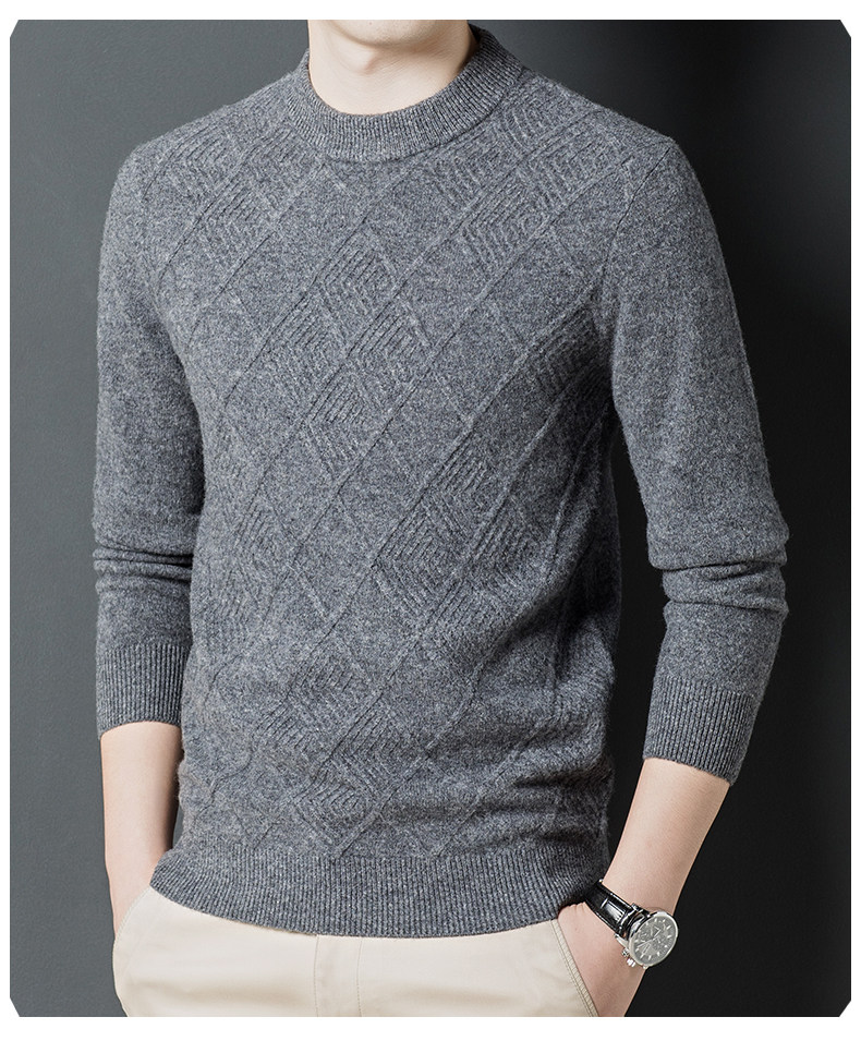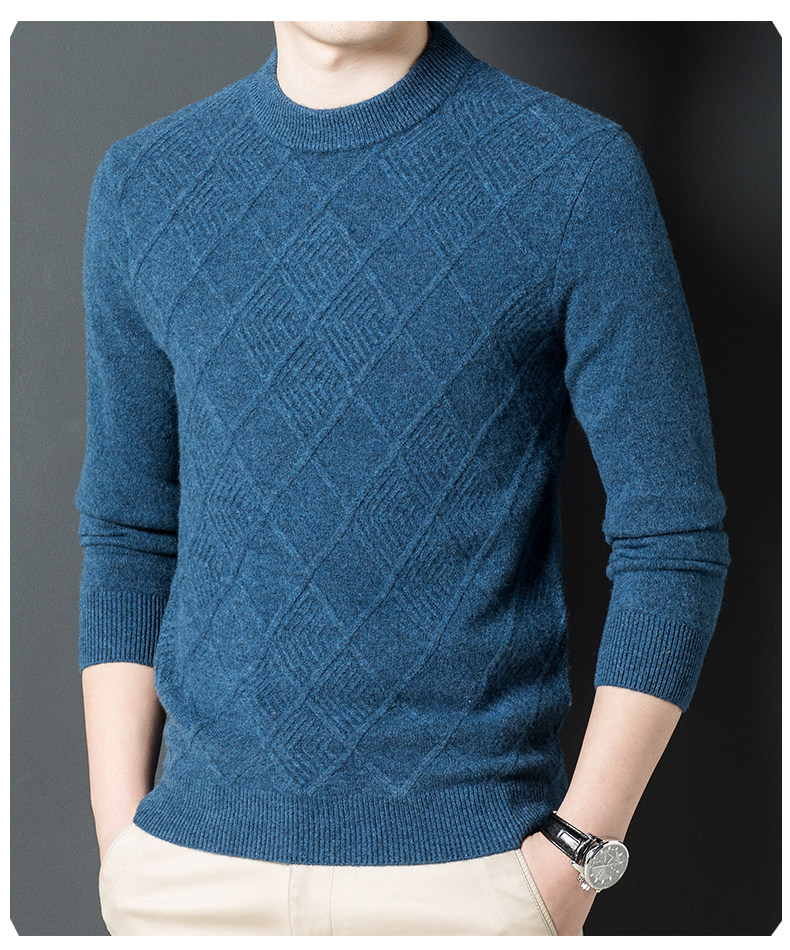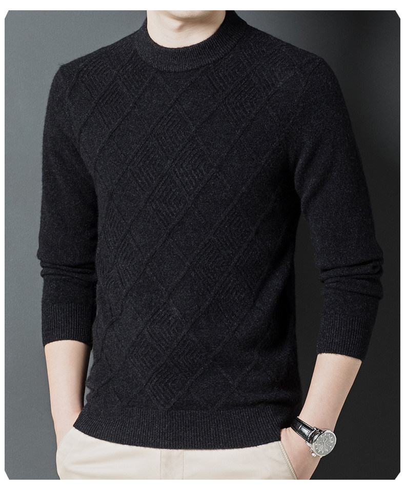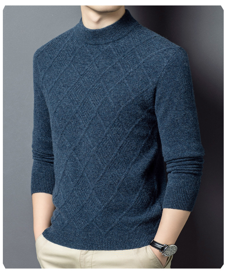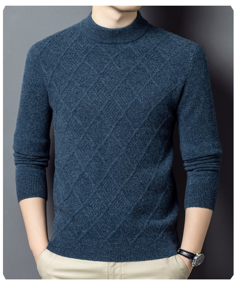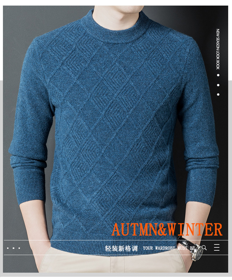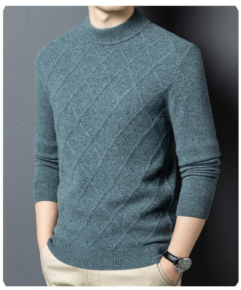 Hengyuanxiang 100% Cashmere Sweater for Men, Half Turtleneck, New Winter Thickened Style, Middle-Aged Dad's Knit Base Sweater