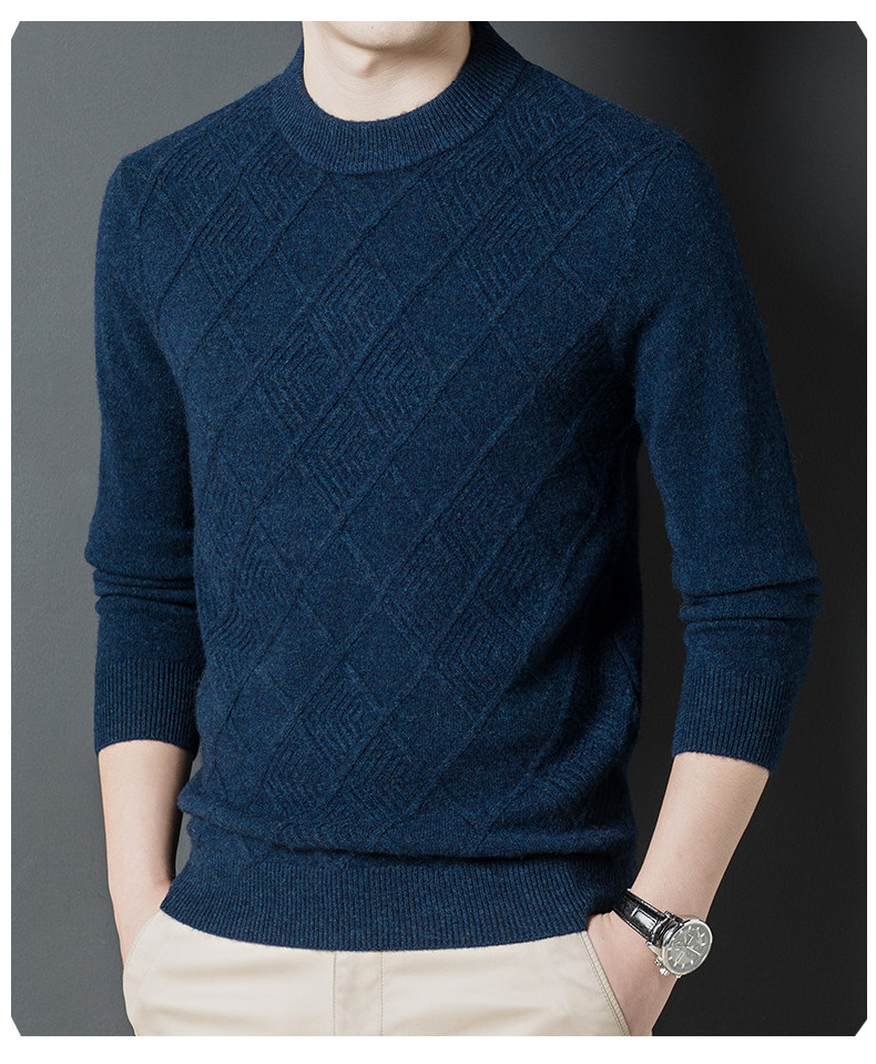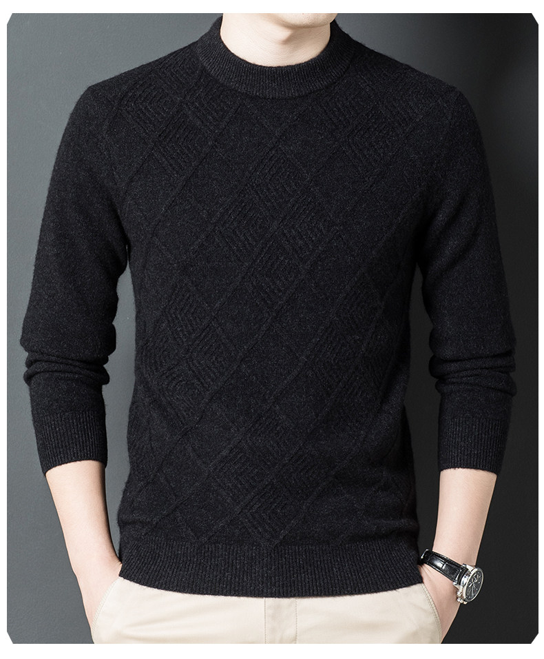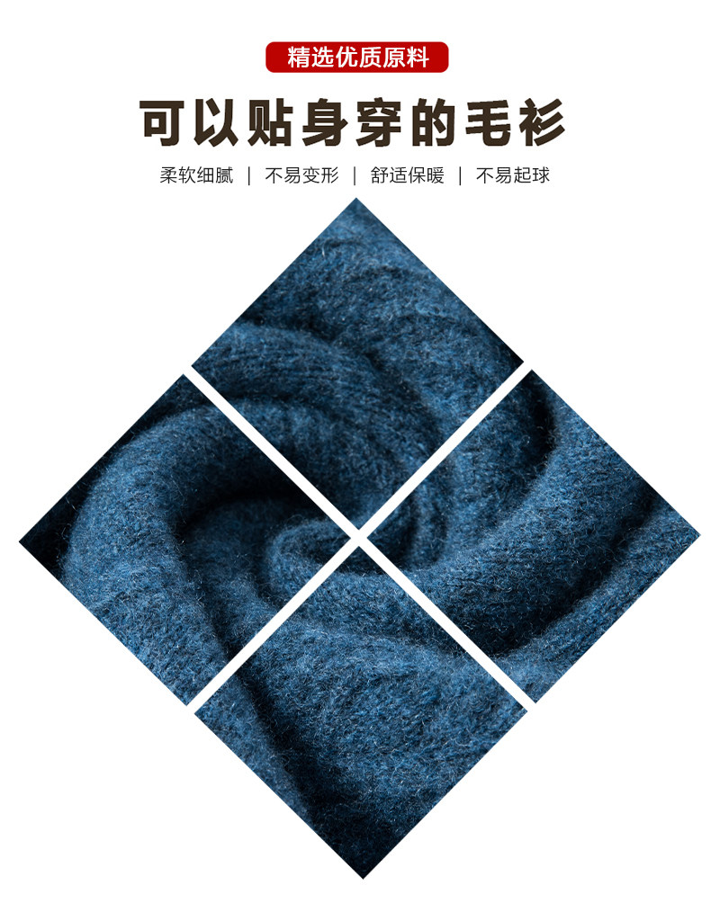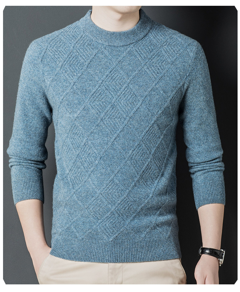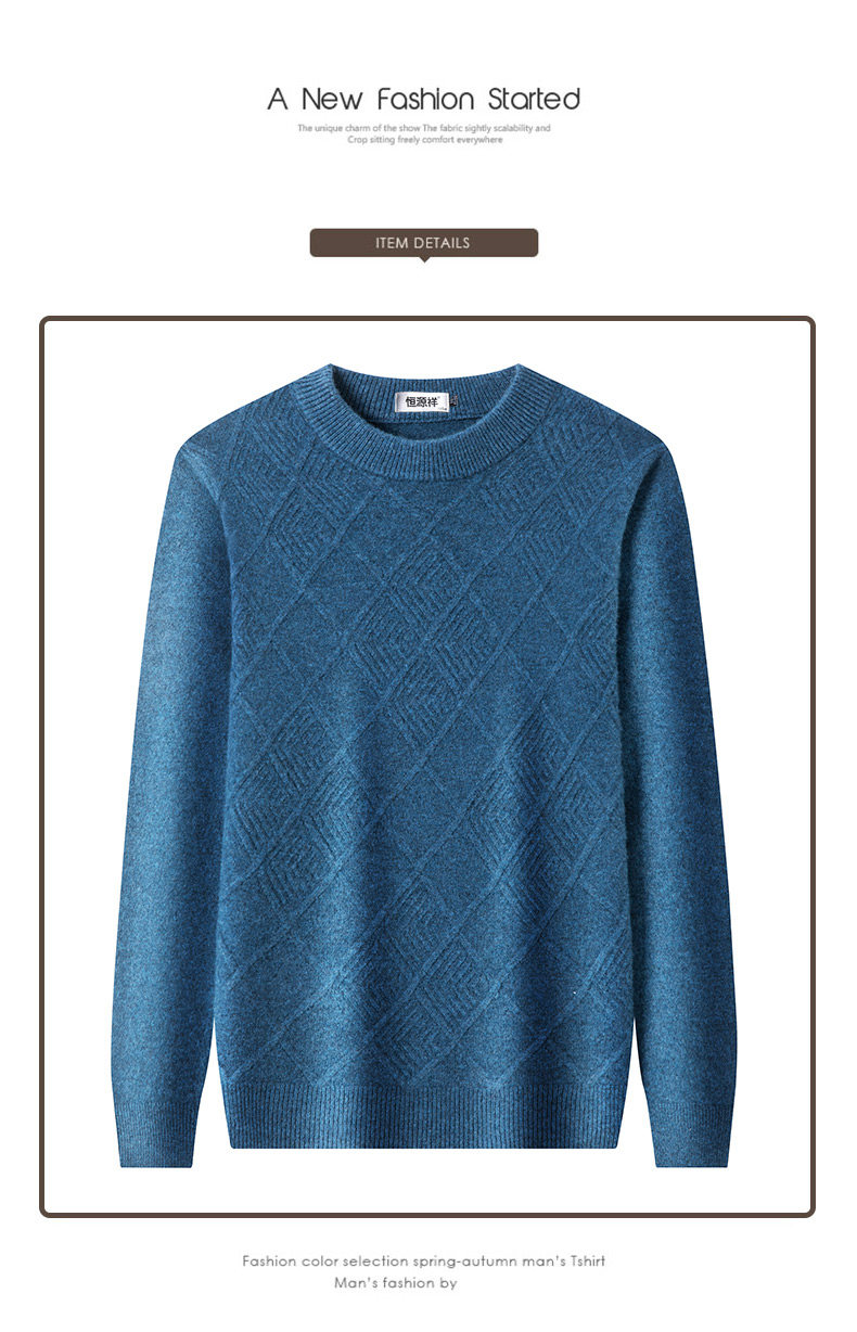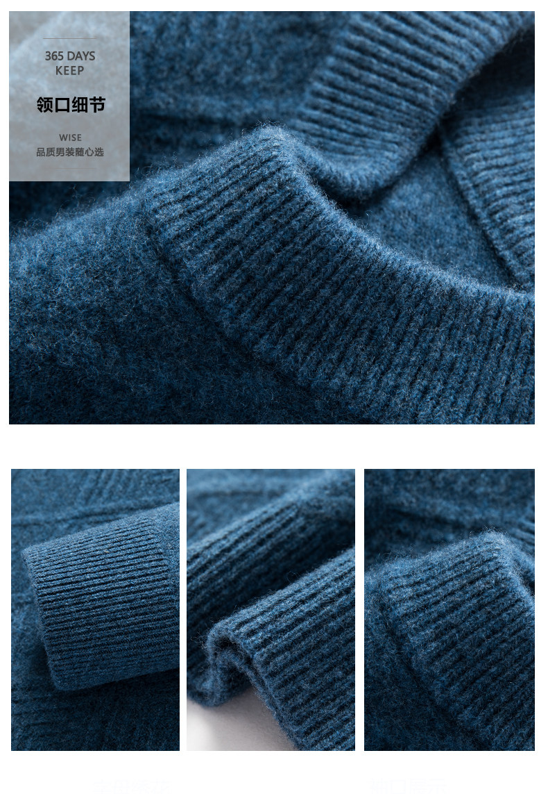 Hengyuanxiang 100% Cashmere Sweater for Men, Half Turtleneck, New Winter Thickened Style, Middle-Aged Dad's Knit Base Sweater