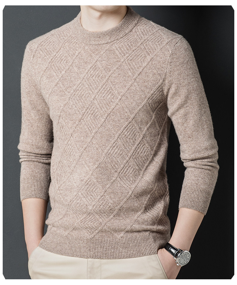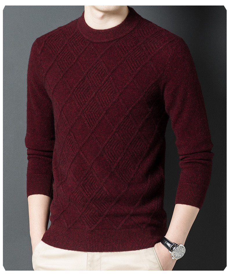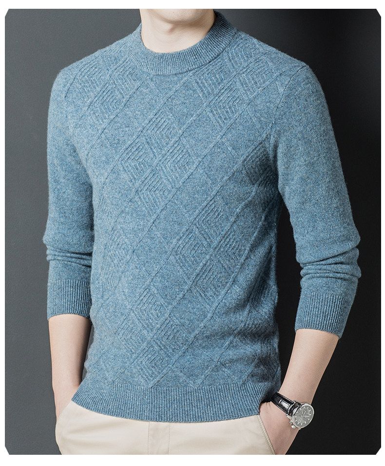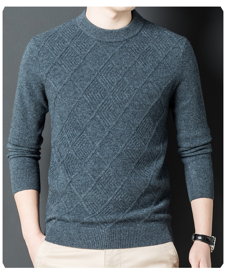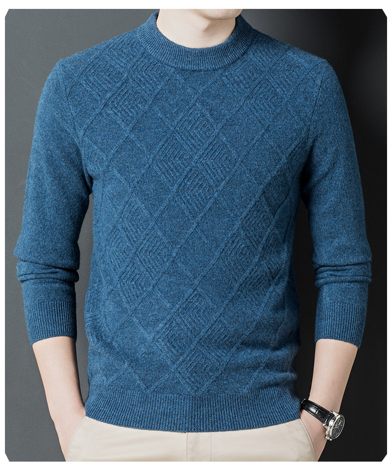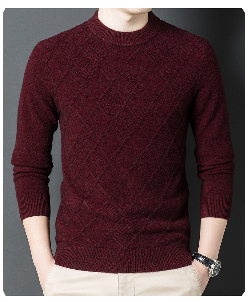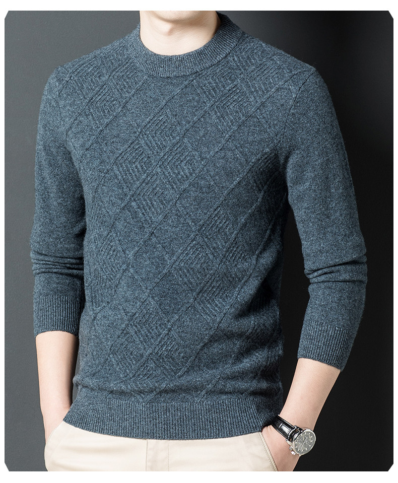 Hengyuanxiang 100% Cashmere Sweater for Men, Half Turtleneck, New Winter Thickened Style, Middle-Aged Dad's Knit Base Sweater