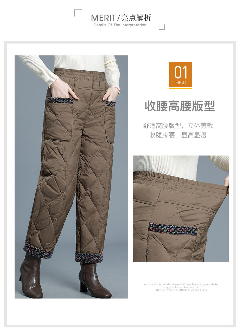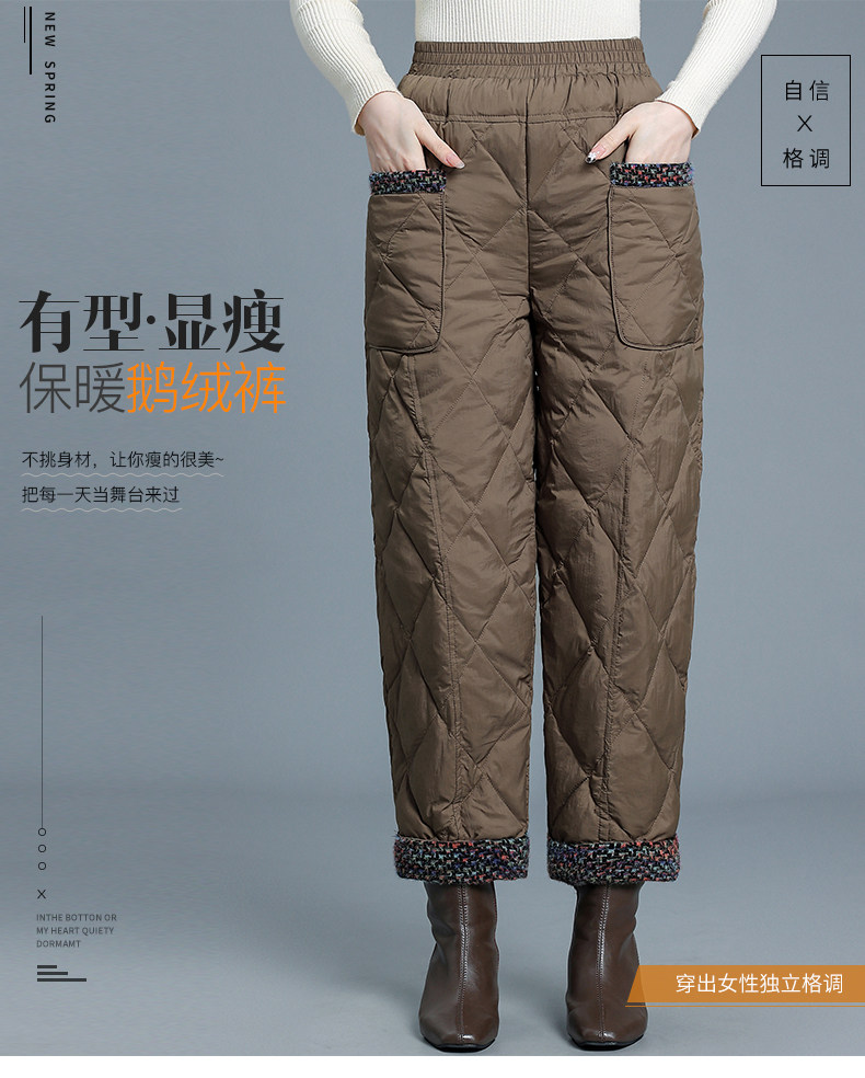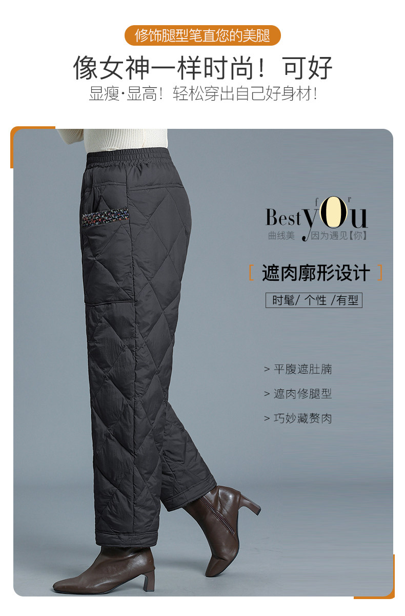 Hengyuanxiang Caishangma Women's Goose down Pants Winter Wear Lightweight Warm Middle-Aged and Elderly Outdoor Straight-Leg down Casual Trousers