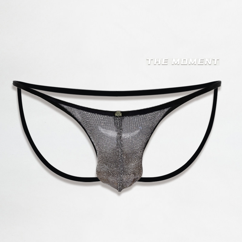 Half-beast inner "bright dark night" metal design sexy see-through thong shows a big temperament men's underwear