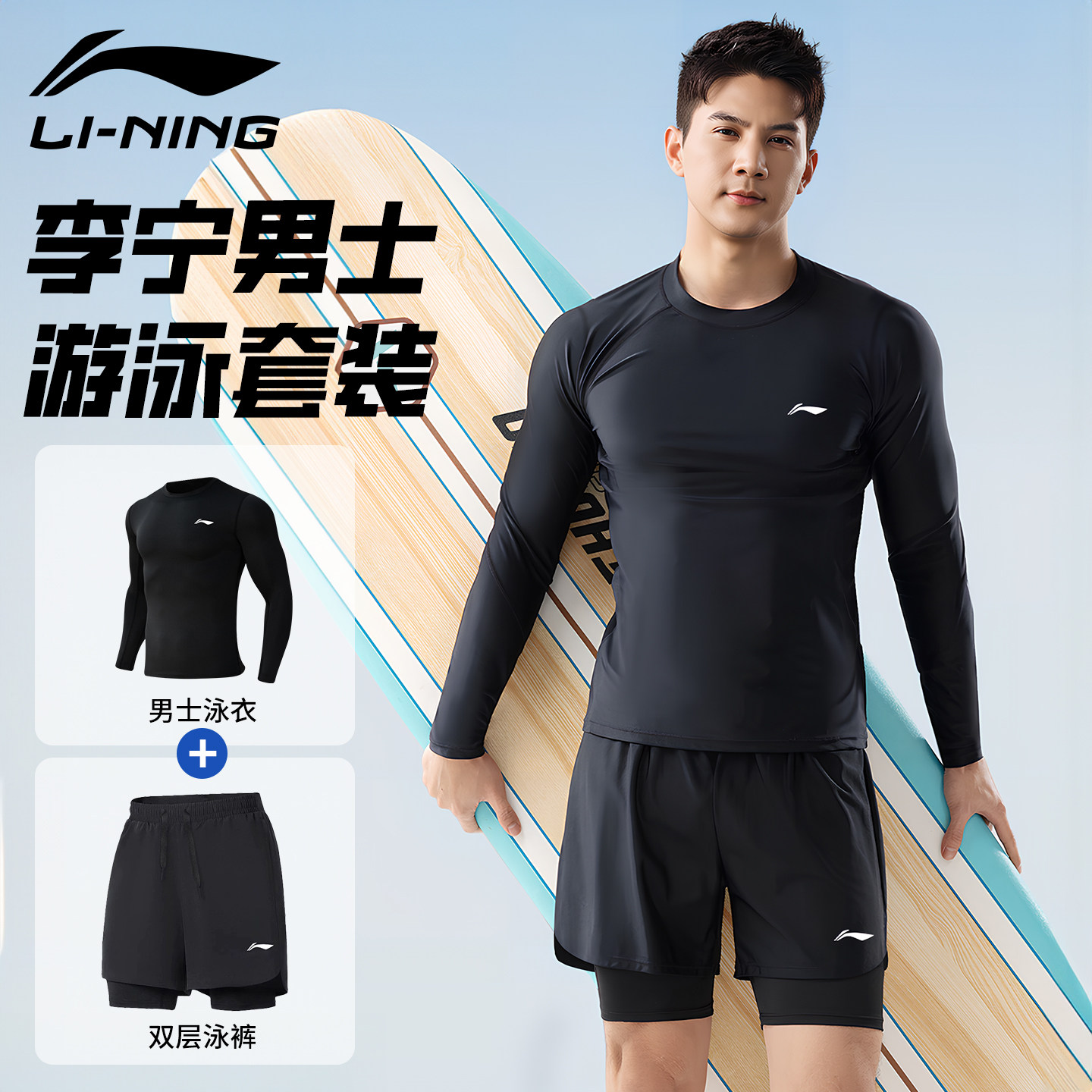 Li Ning Men's Swimsuit Swim Trunks Set Long Sleeve Swimsuit Professional Sunscreen Quick Dry Hot Spring Men's Beach Surfing Suit
