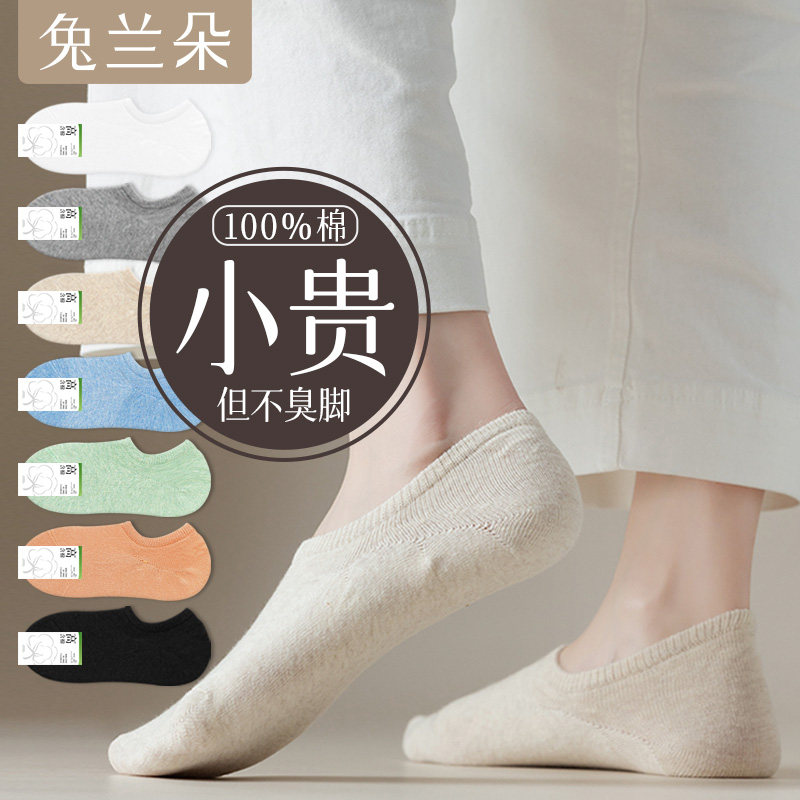 Boat socks women's pure cotton spring and summer thin socks cotton invisible socks shallow mouth non-slip and summer socks for women