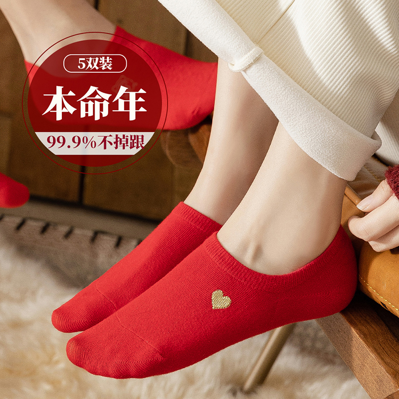 Natal year red socks boat socks for men and women couples solid color spring and summer cotton festive wedding New Year belongs to the snake horse big red socks
