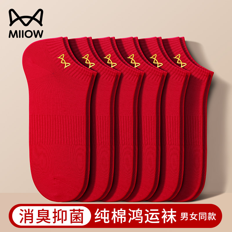 Cat man natal year socks men's socks pure cotton socks men's and women's big red wedding summer anti-odor and antibacterial boat socks