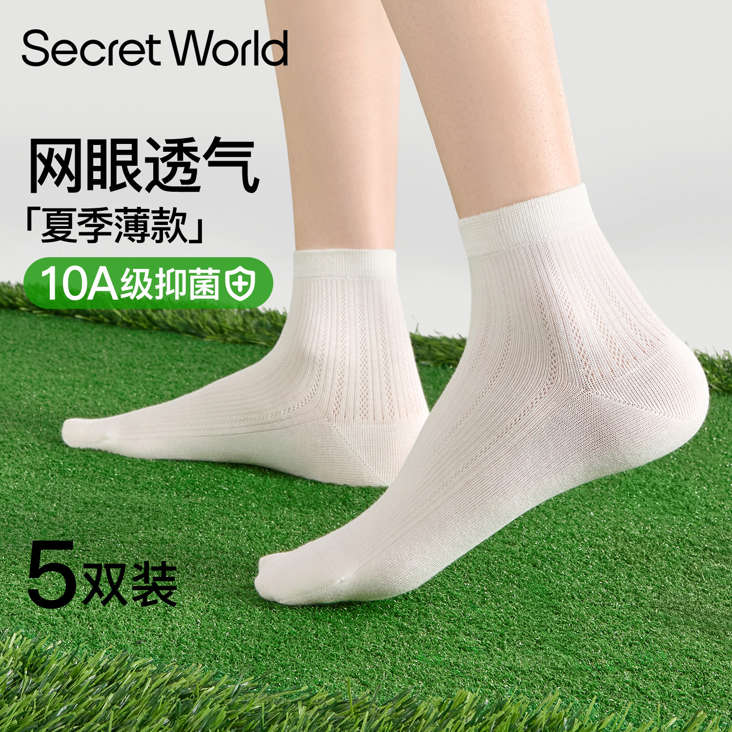 Socks women's spring and summer thin anti-odor cotton yarn antibacterial white socks mesh breathable short socks women