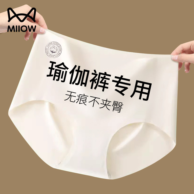 Cat Man Seamless Panties Women's Ice Silk Non-Hip Cotton Antibacterial Crotch Yoga 2025 New Girls' Mid-Rise Briefs