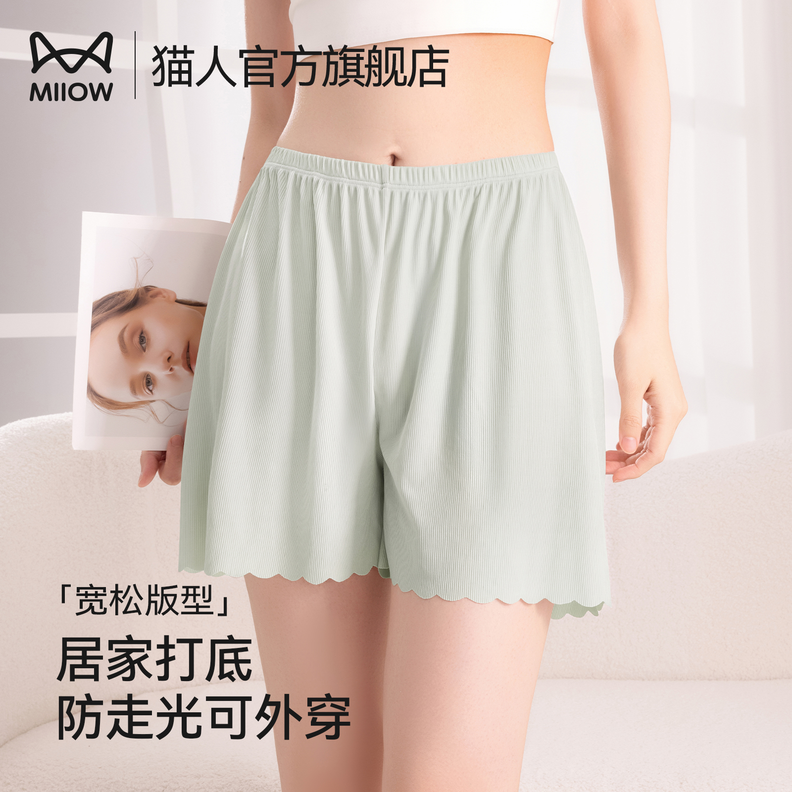 Cat man safety pants women's 2025 new loose non-curled edge and non-trace summer ice silk anti-light base home shorts